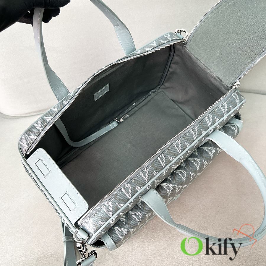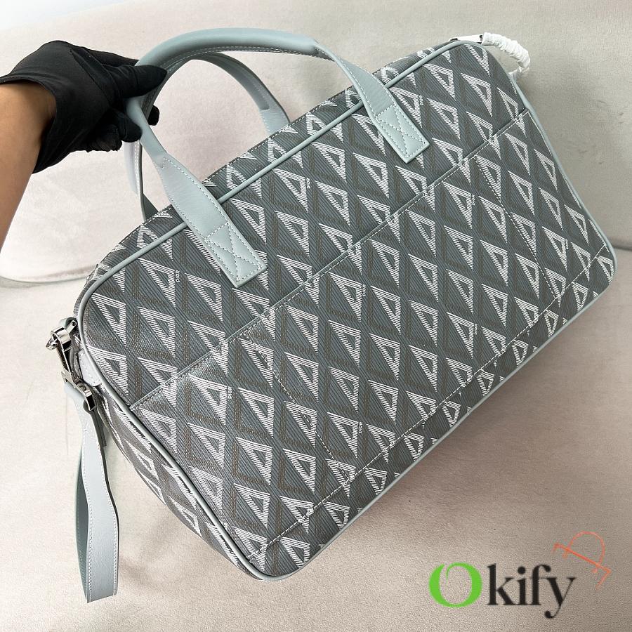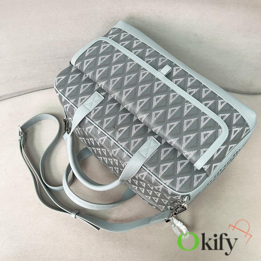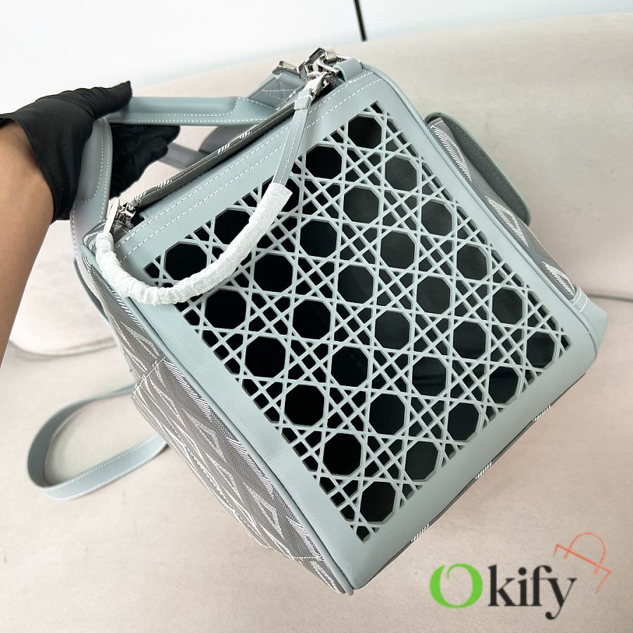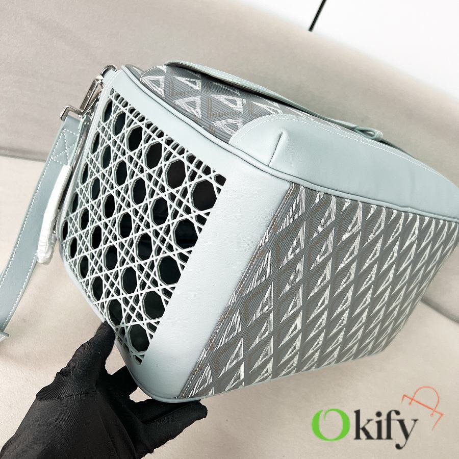 The gray canvas with CD diamond pattern has a very high-quality feel. The pet carrier design is super fashionable. The double zipper closure provides excellent security. The interior space is neat and spacious The bag's overall style combines a casual and fashionable feel. Can be carried by hand, on the shoulder, or crossbody. handsome and dashing A stylish, versatile, and everyday bag Especially suitable for traveling with pets