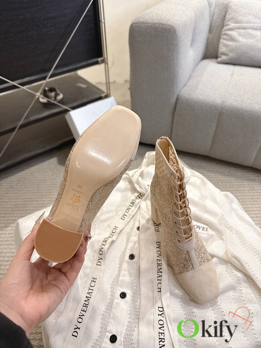 Upper: High-temperature water-soluble electro-embroidery technology fabric + sheepskin lining + Italian genuine leather outsole Foot pads: Imported sheepskin Heel height: 8cm