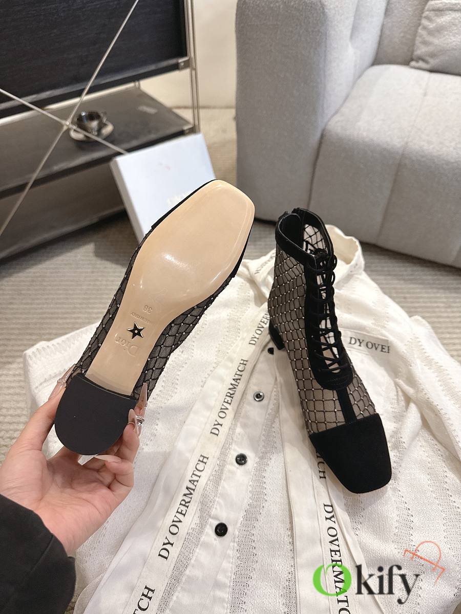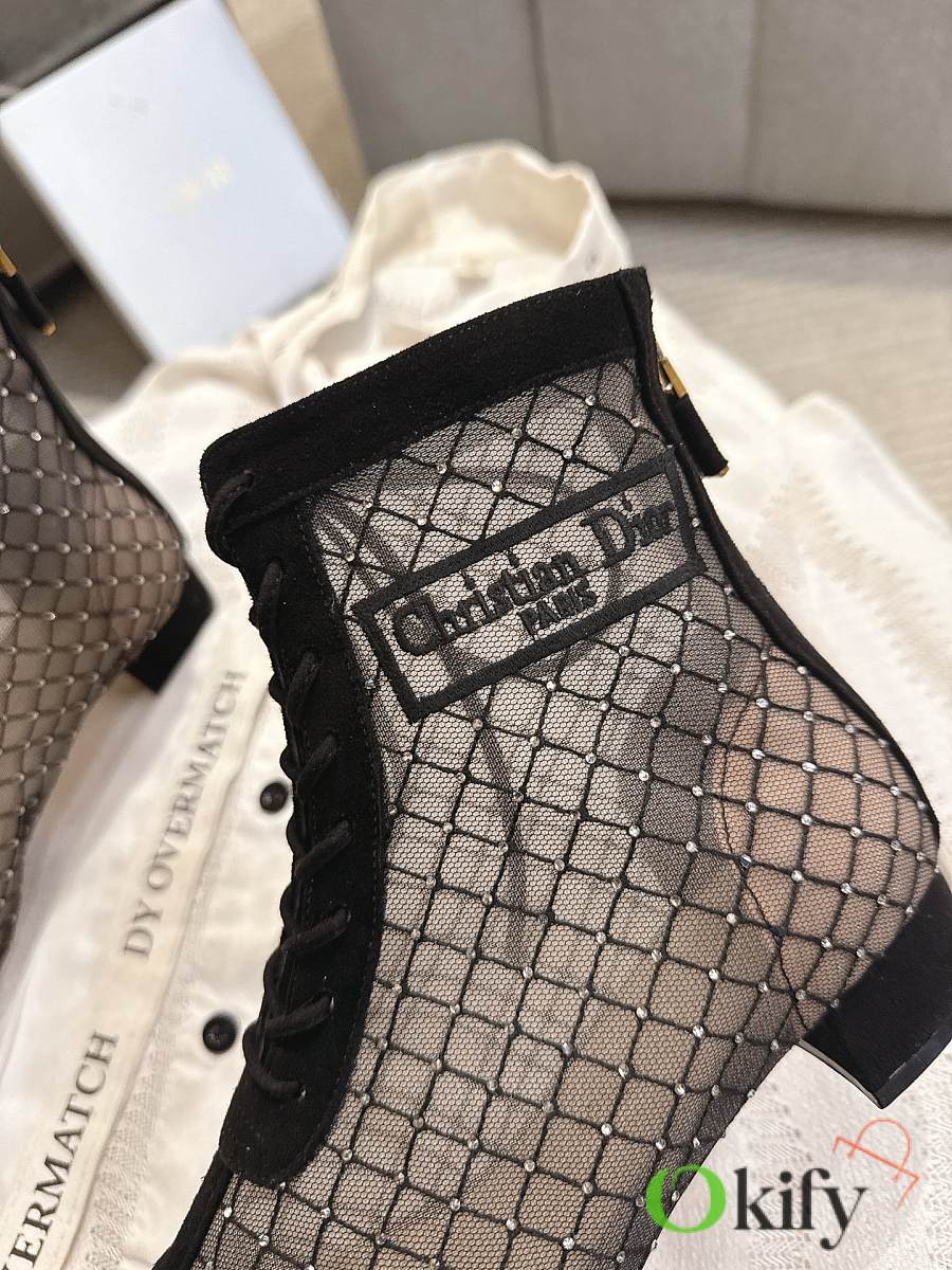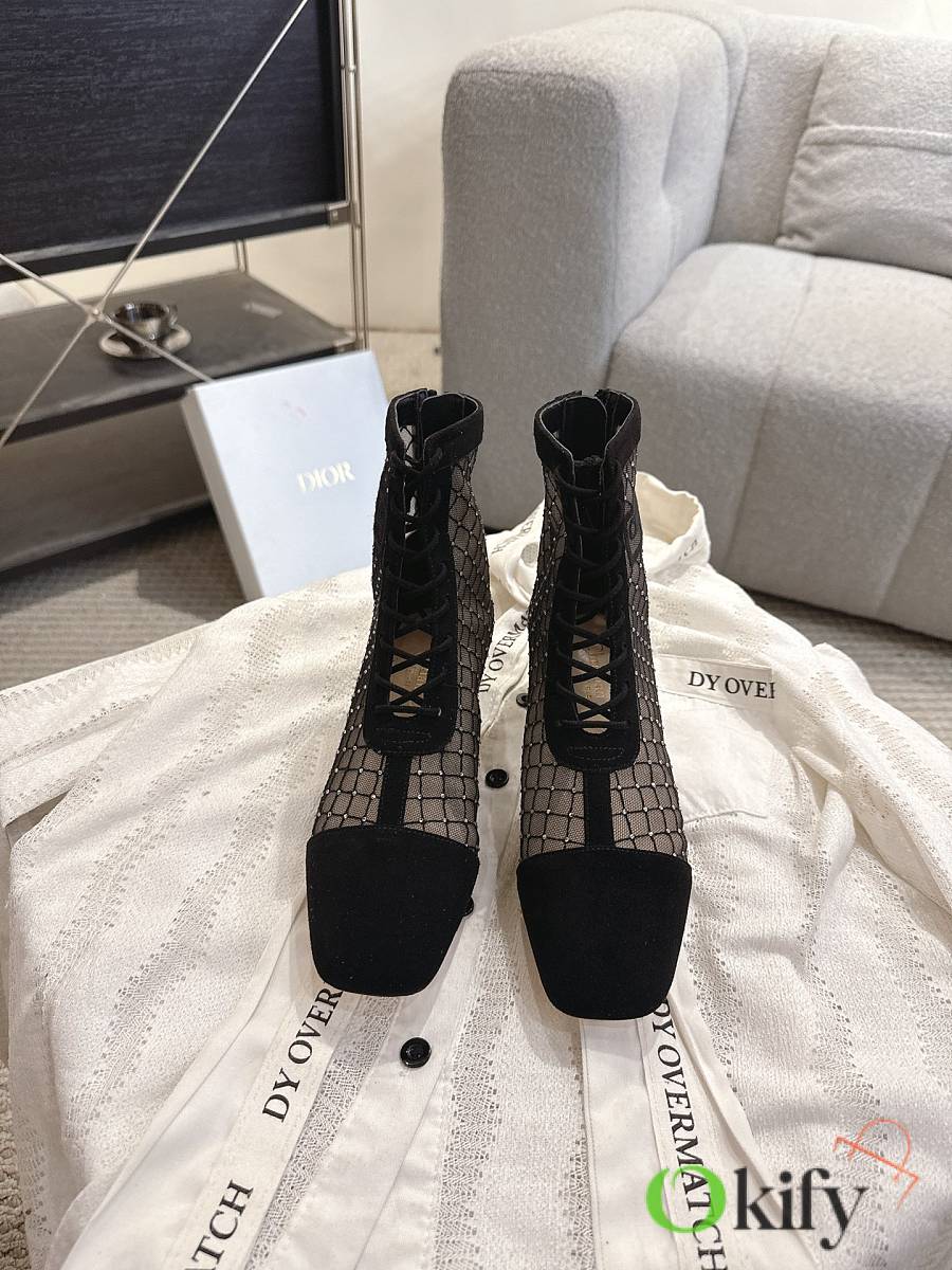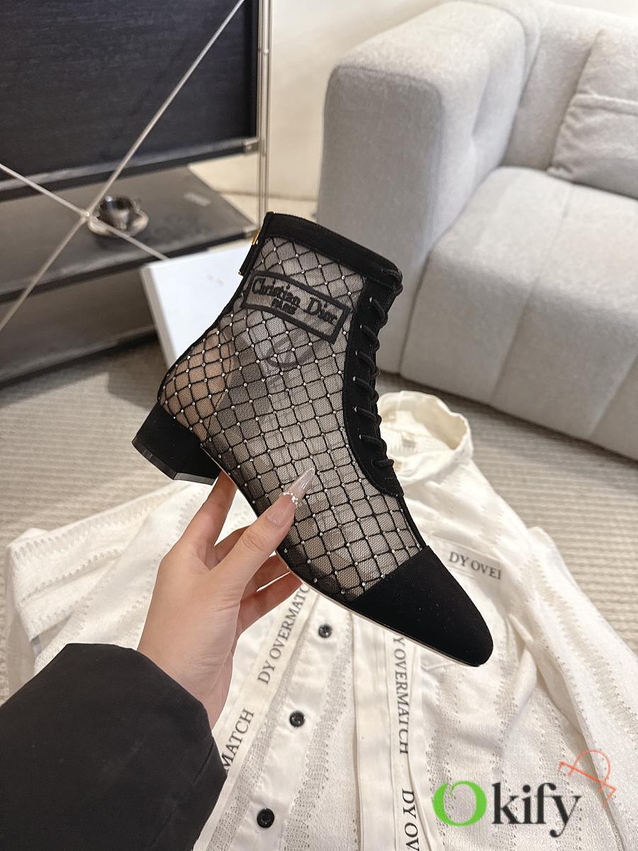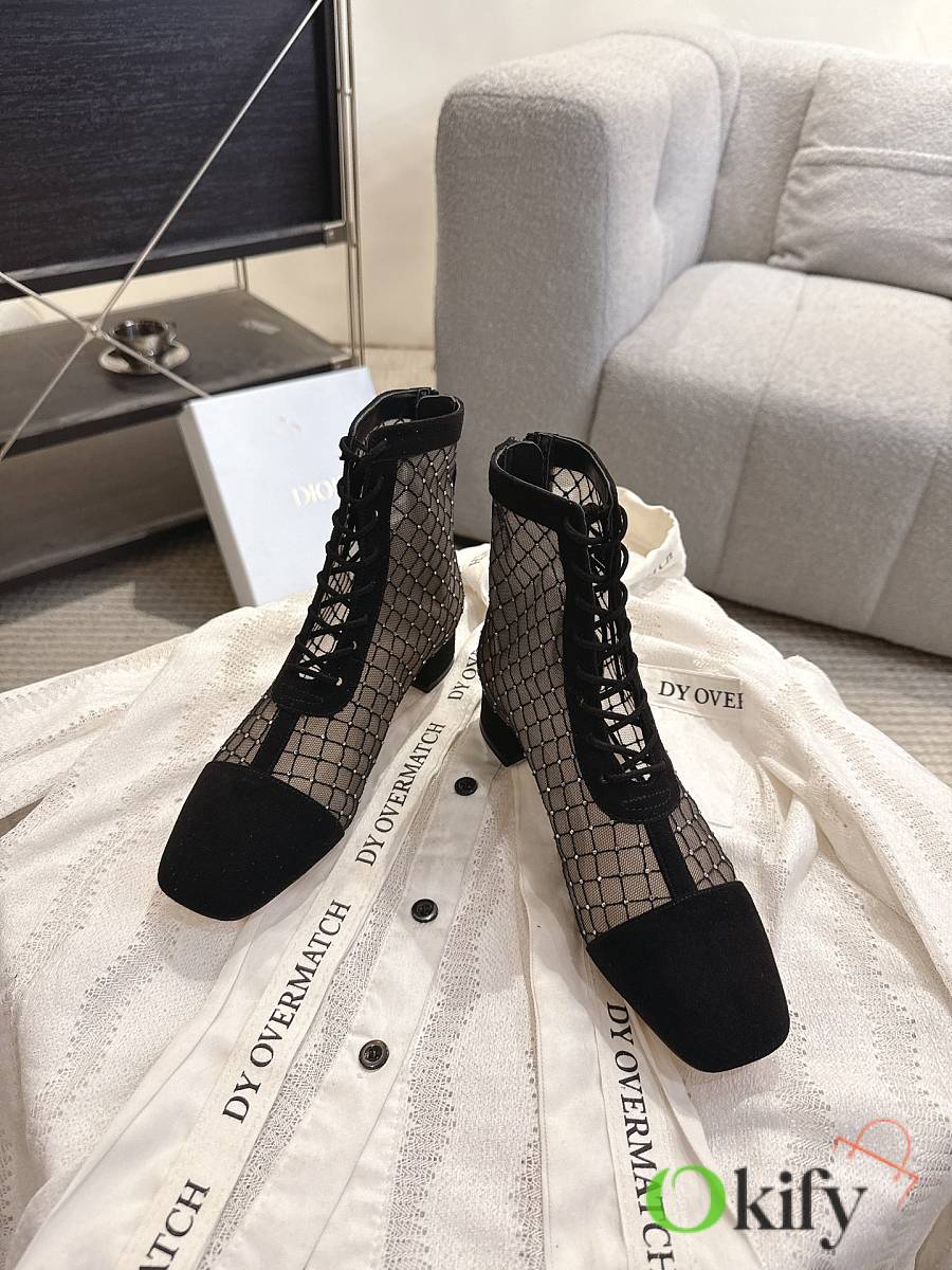 Okify Dior J'Adior Black Embroidered Mesh Boots 3.5cm 28289