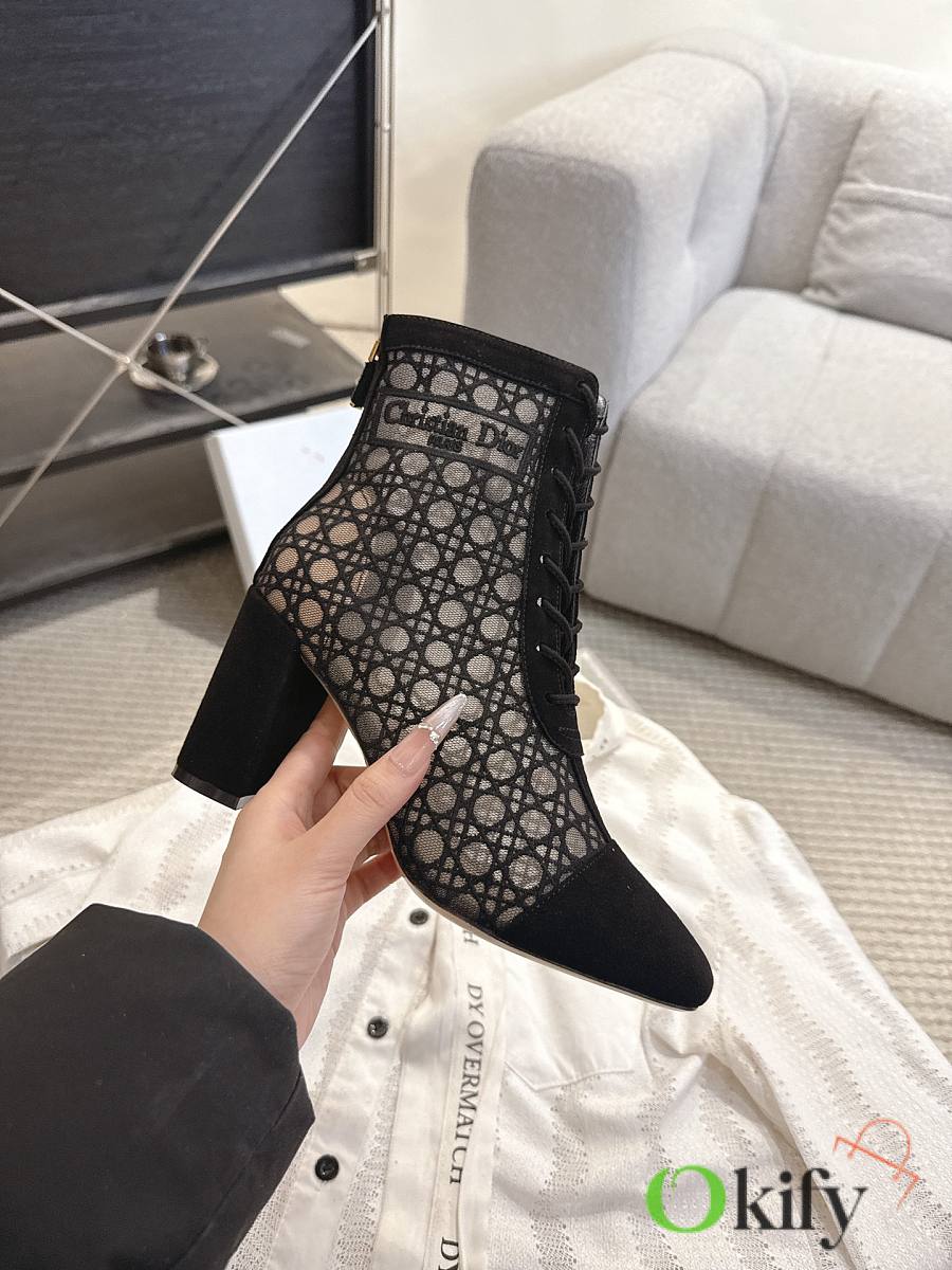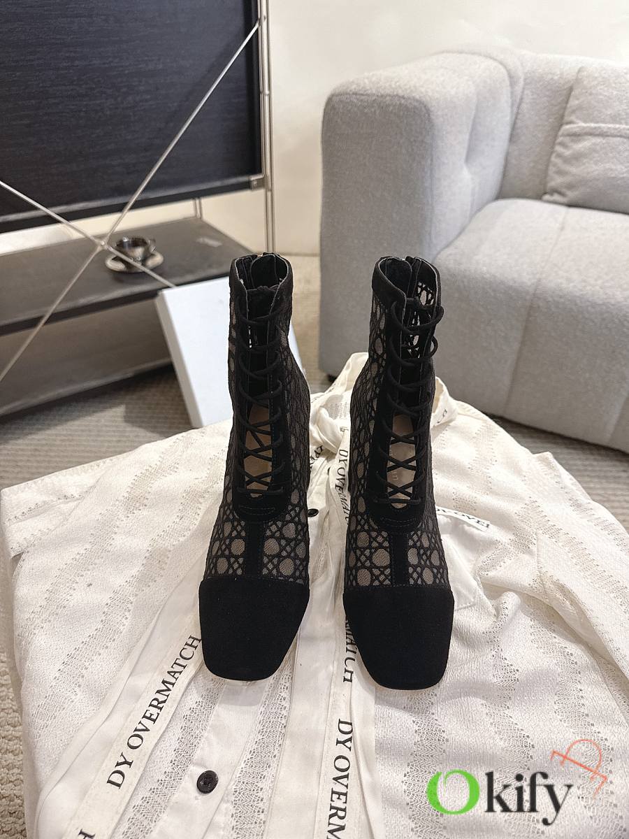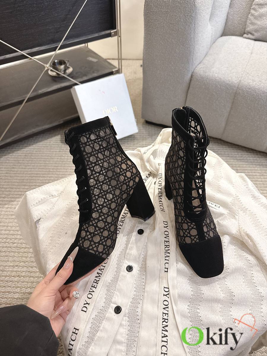 Okify Dior J'Adior Black Embroidered Mesh Boots 8cm 28275