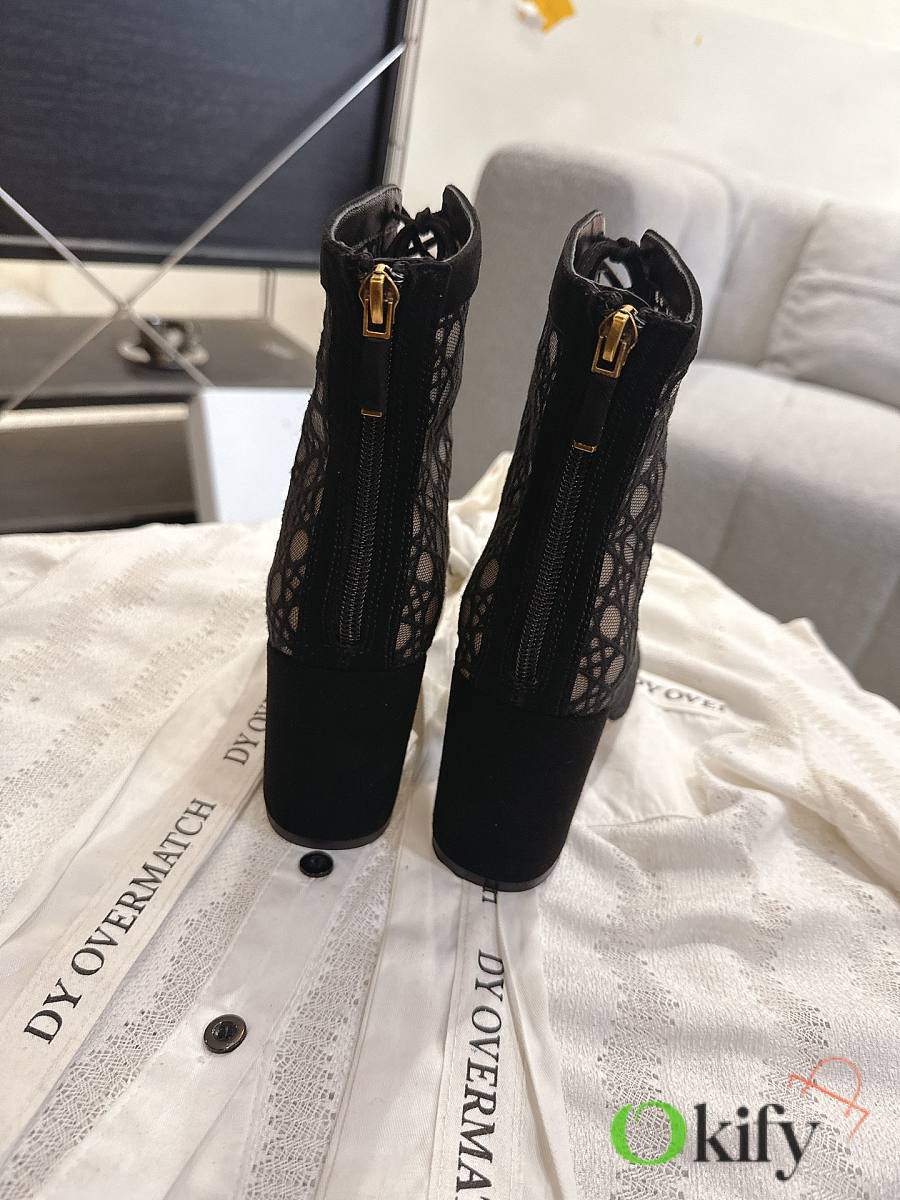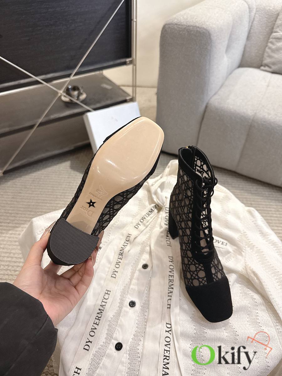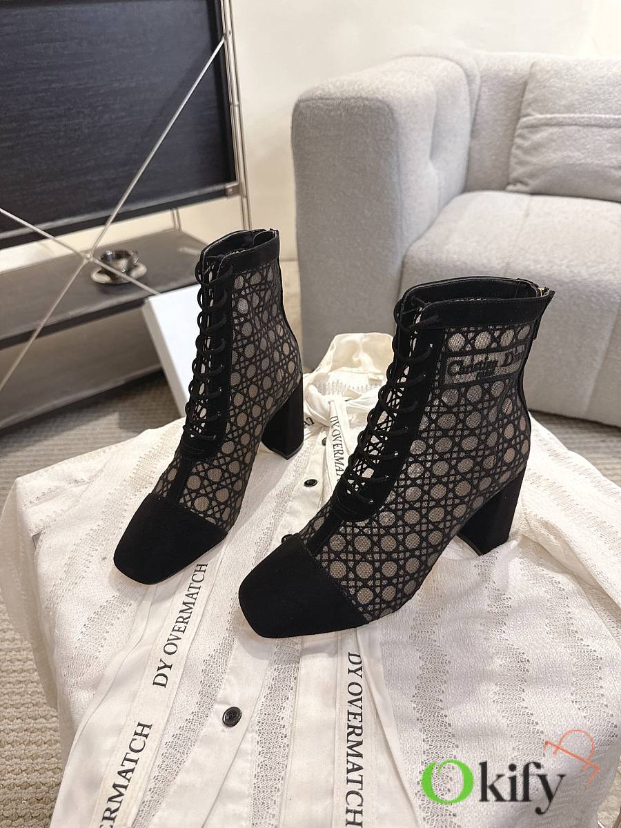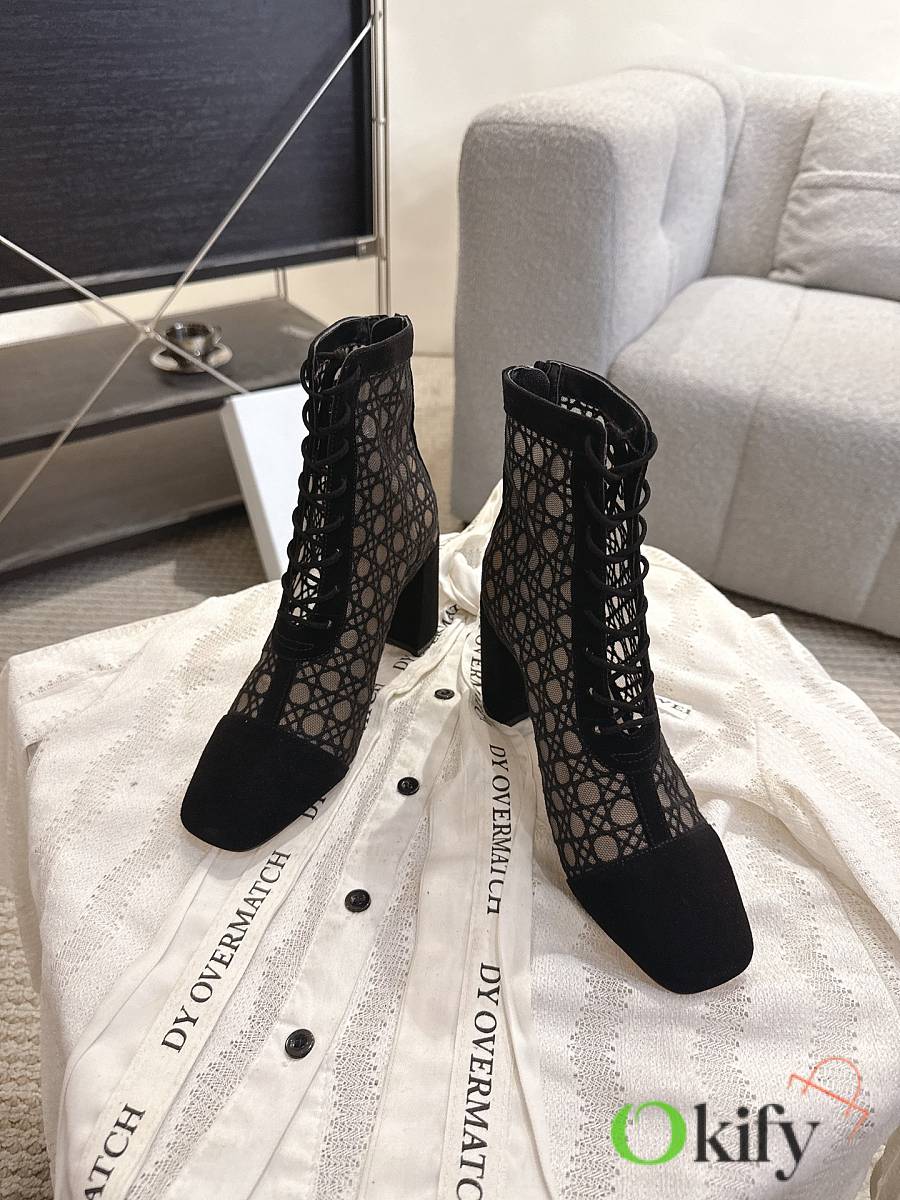 Okify Dior J'Adior Black Embroidered Mesh Boots 8cm 28275