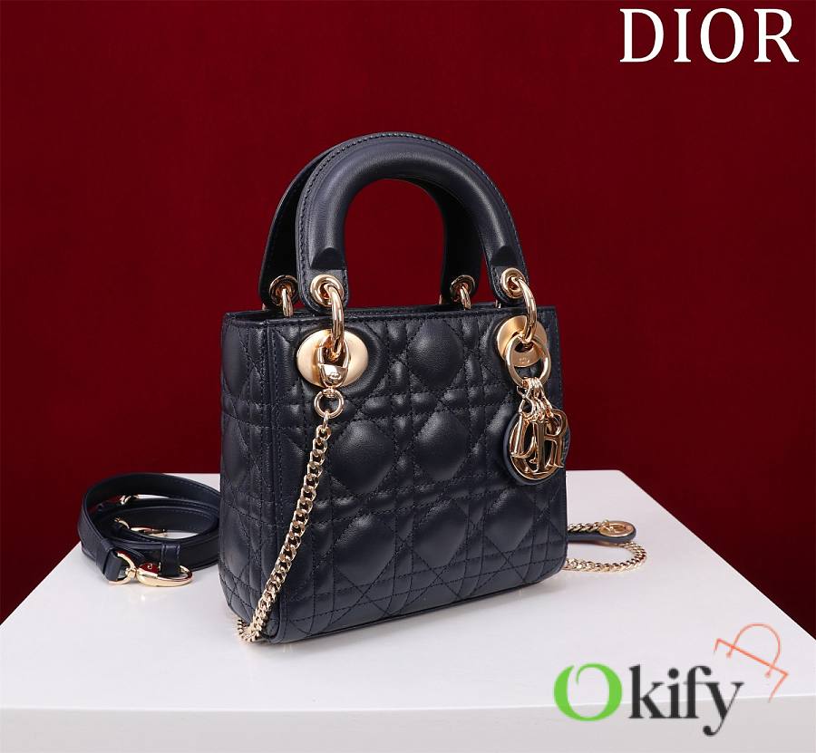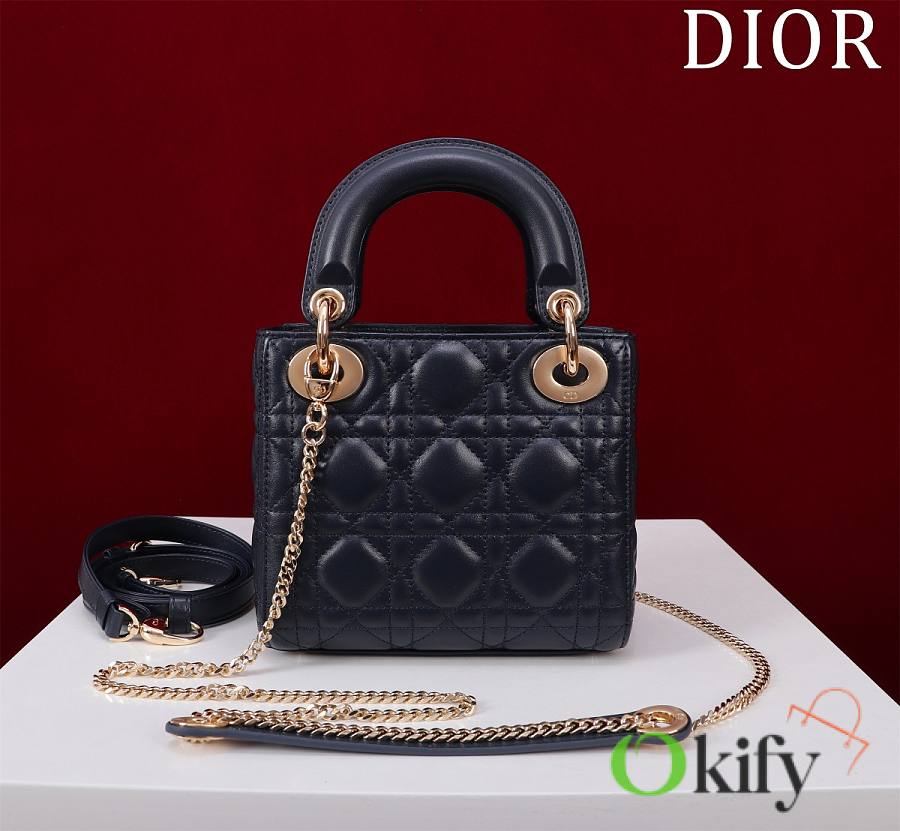 Okify Dior Lady Bag Black Lambskin Velvet 17x15x7cm