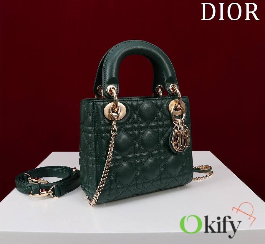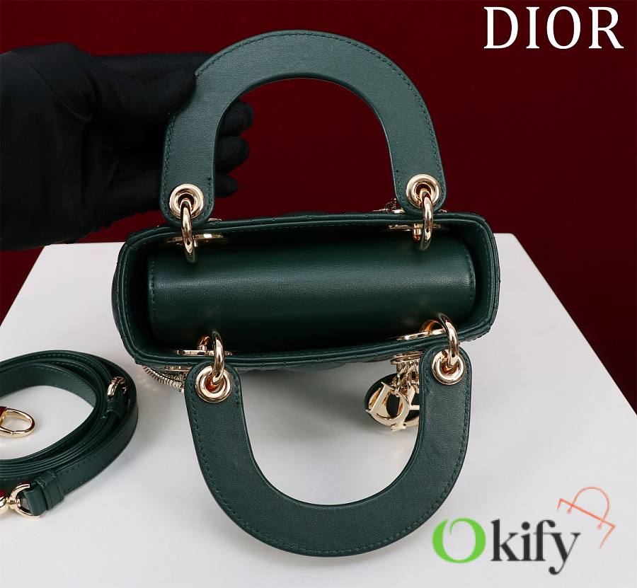 Okify Dior Lady Bag Dark Green Lambskin Velvet 17x15x7cm
