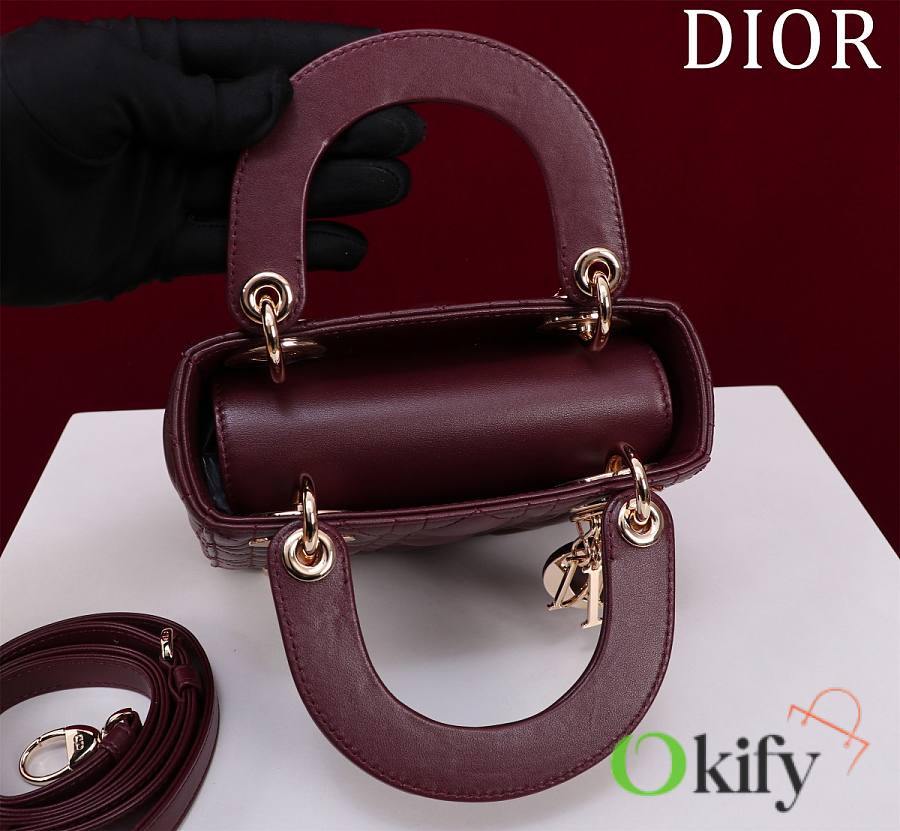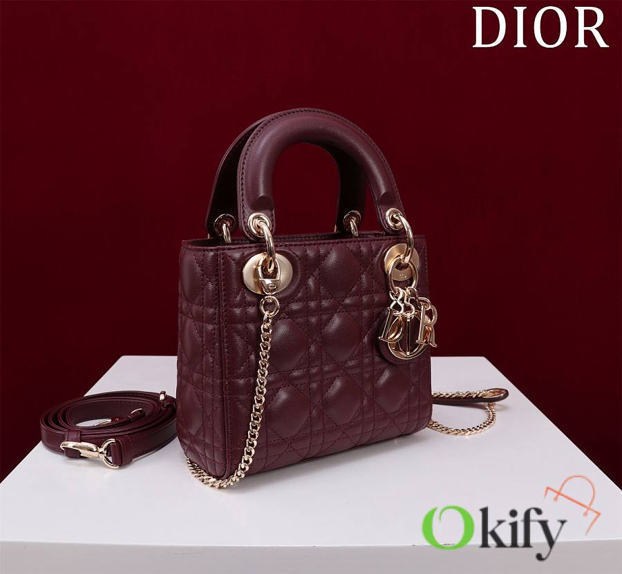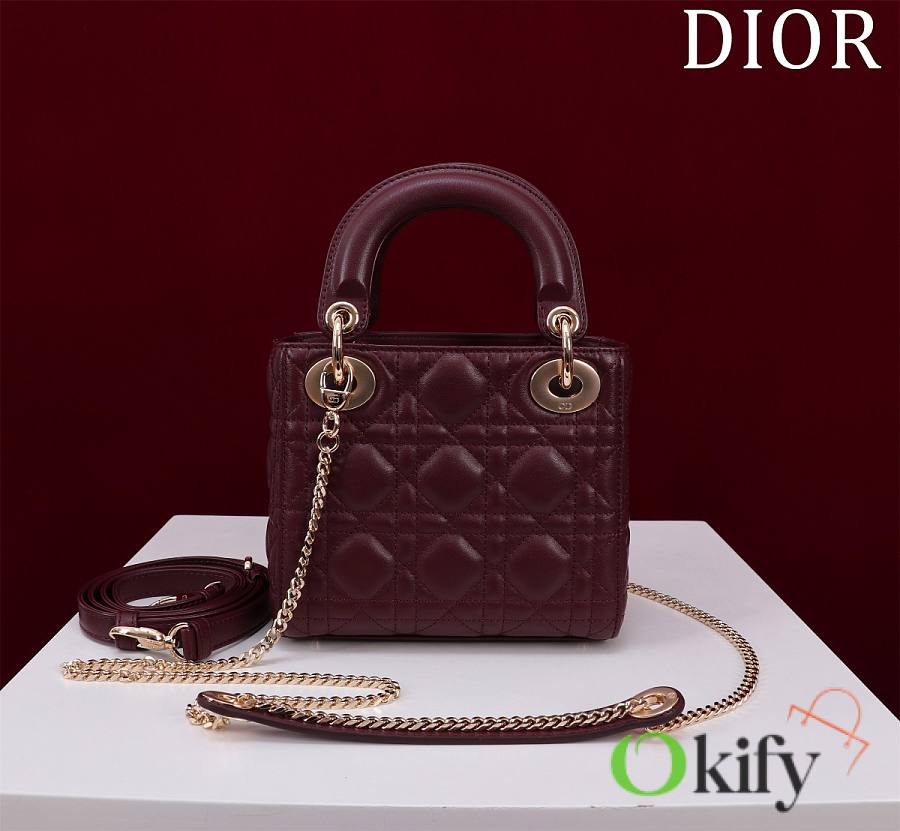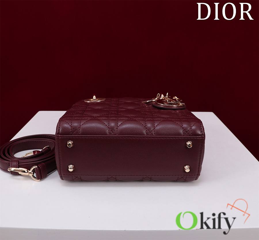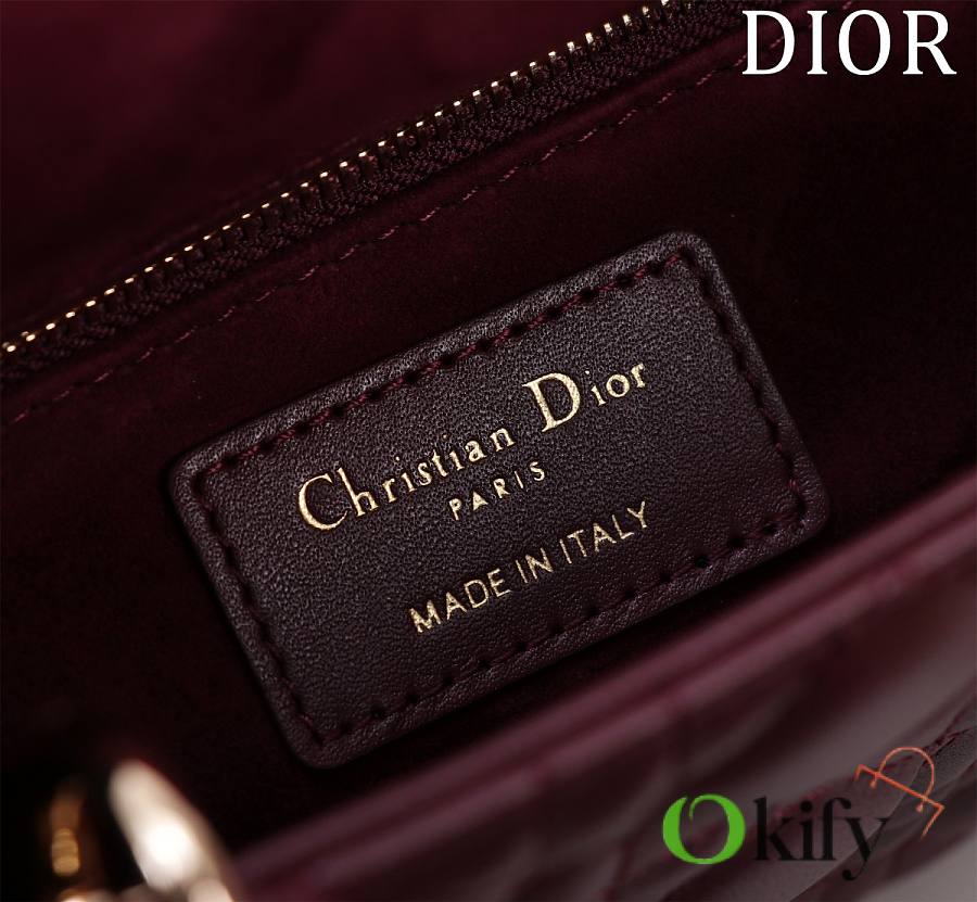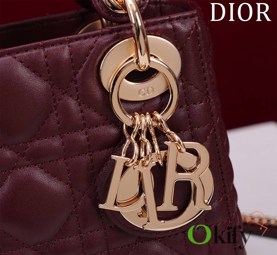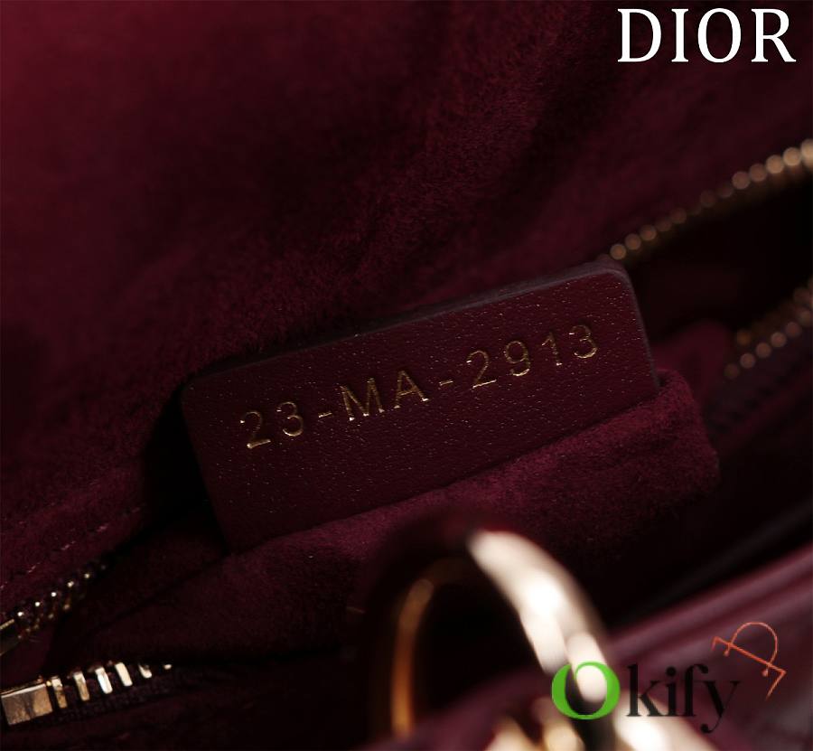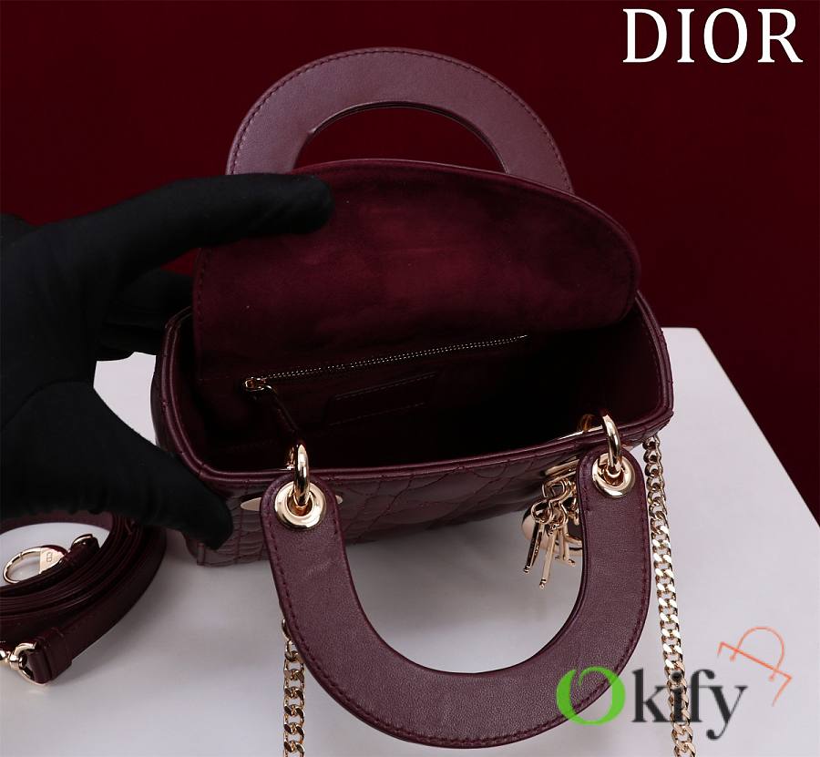 Okify Dior Lady Bag Dark Red Lambskin Velvet Gold Hardware 17x15x7cm