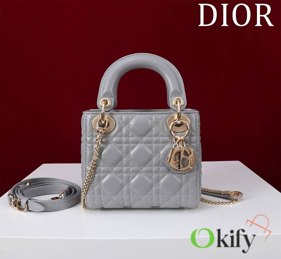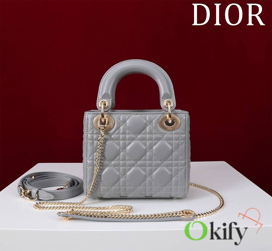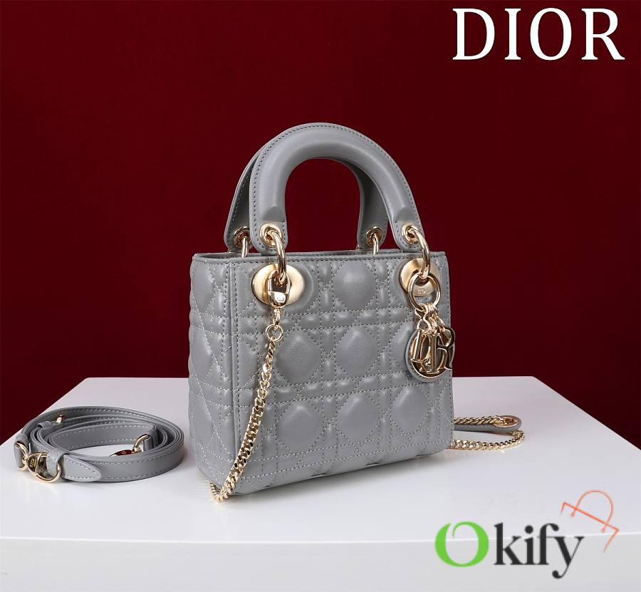 Okify Dior Lady Bag Gray Lambskin Velvet 17x15x7cm