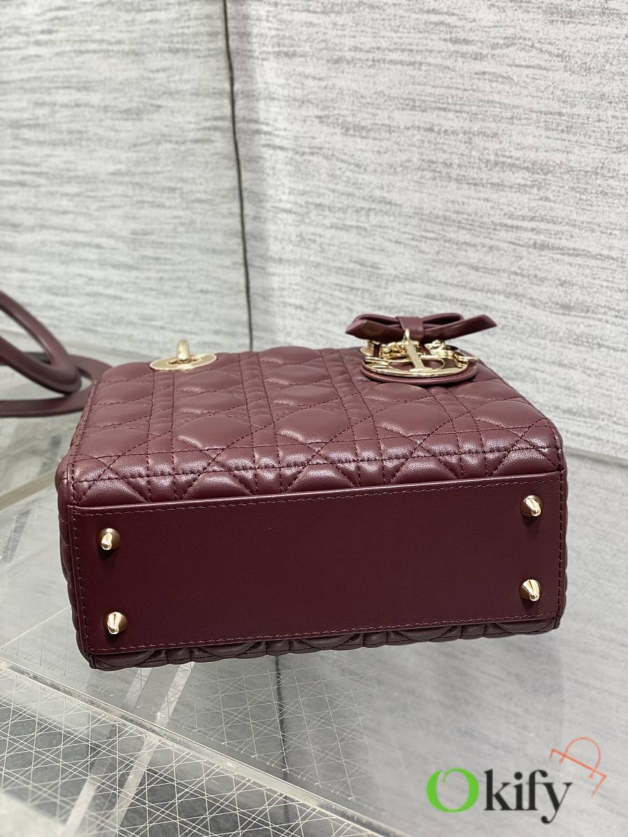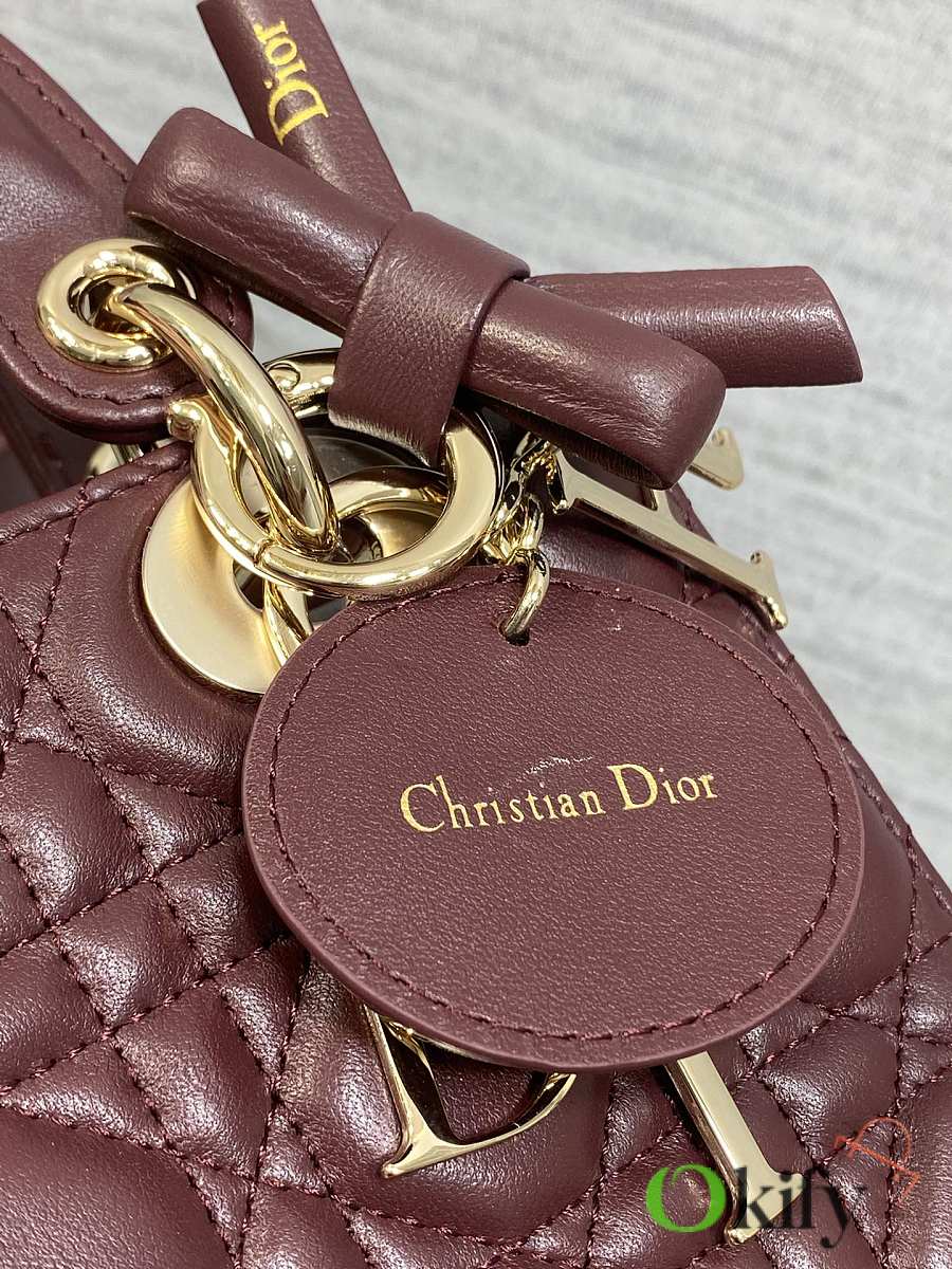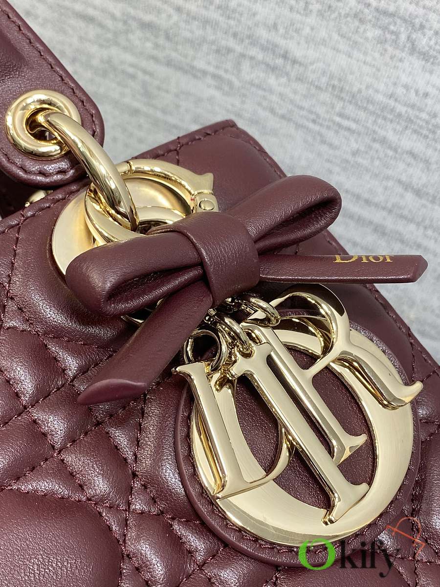 Okify Dior Lady Bag Red Burgundy Bow With Letter Strap 20x17x8cm
