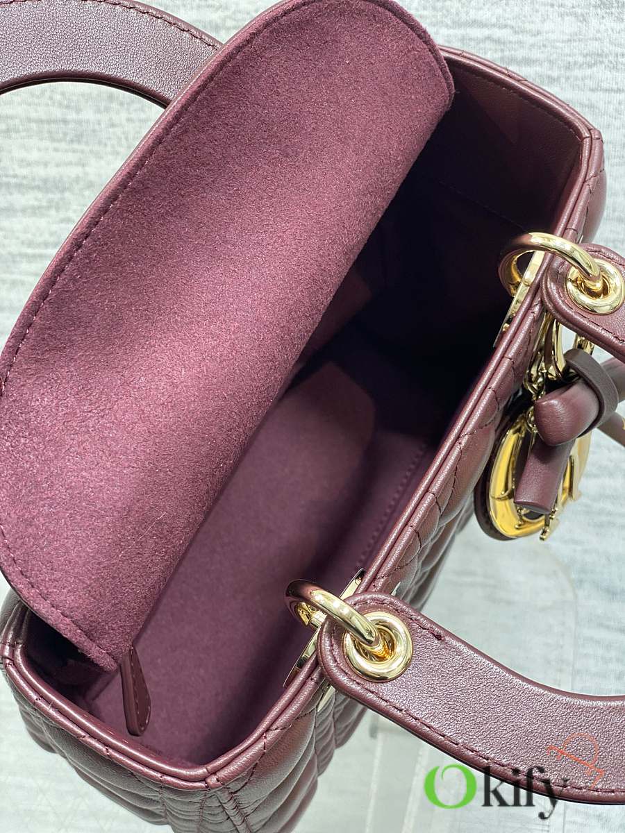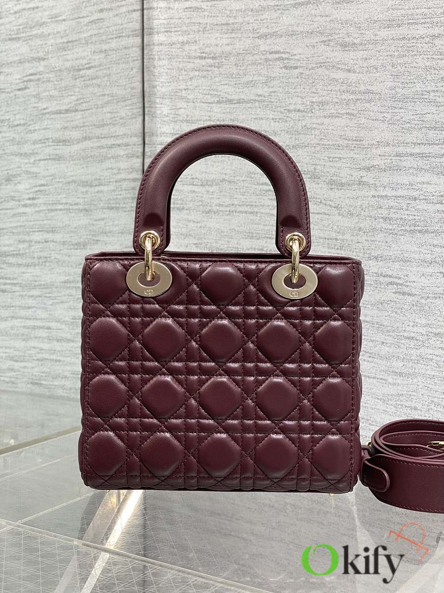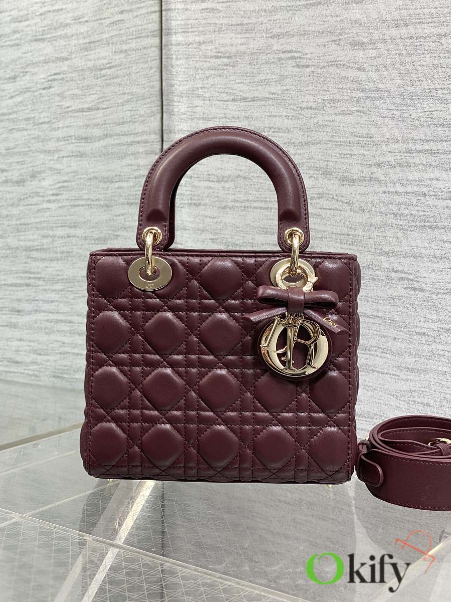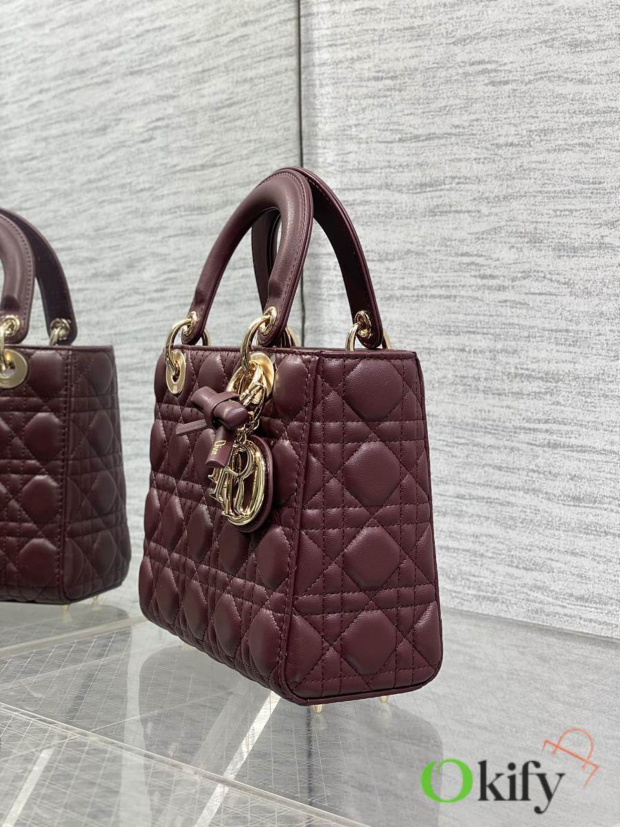 Okify Dior Lady Bag Red Burgundy Bow With Letter Strap 20x17x8cm