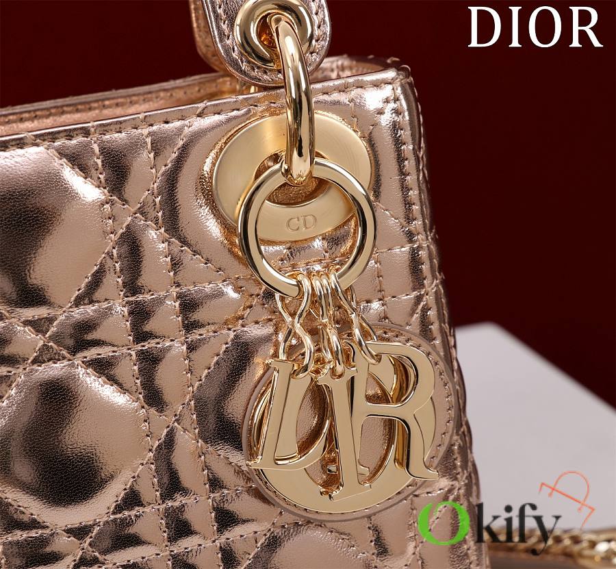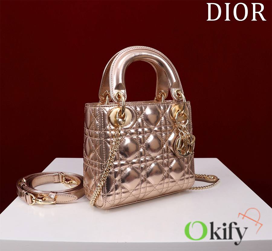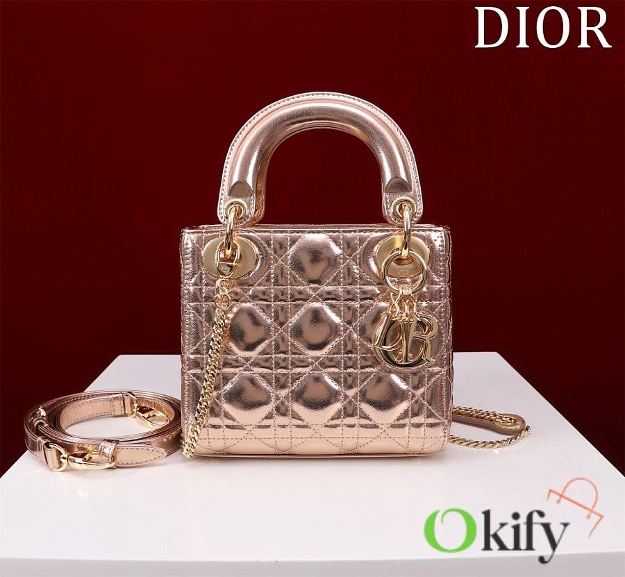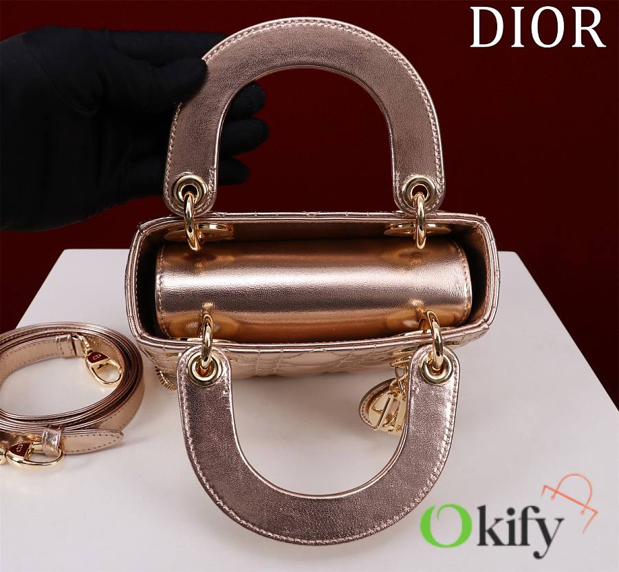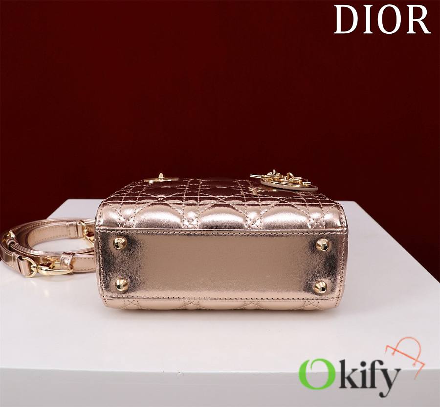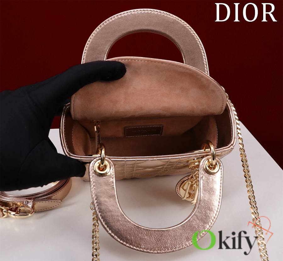Okify Dior Lady Bag Rose Gold Lambskin Velvet 17x15x7cm