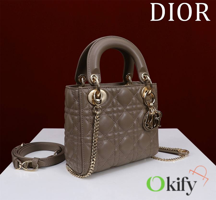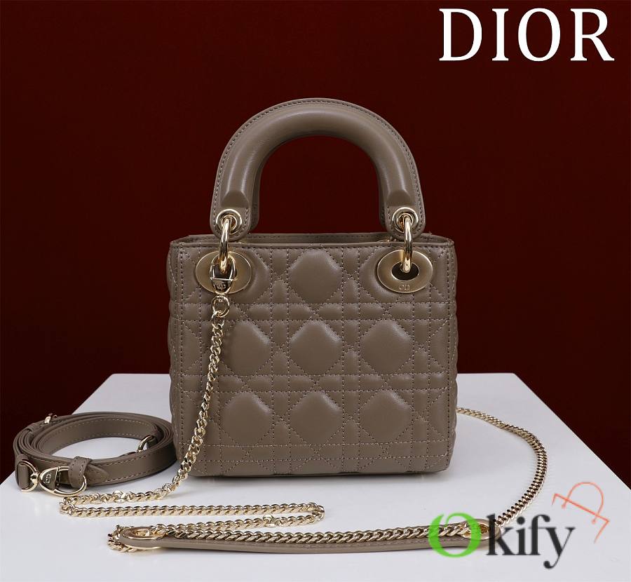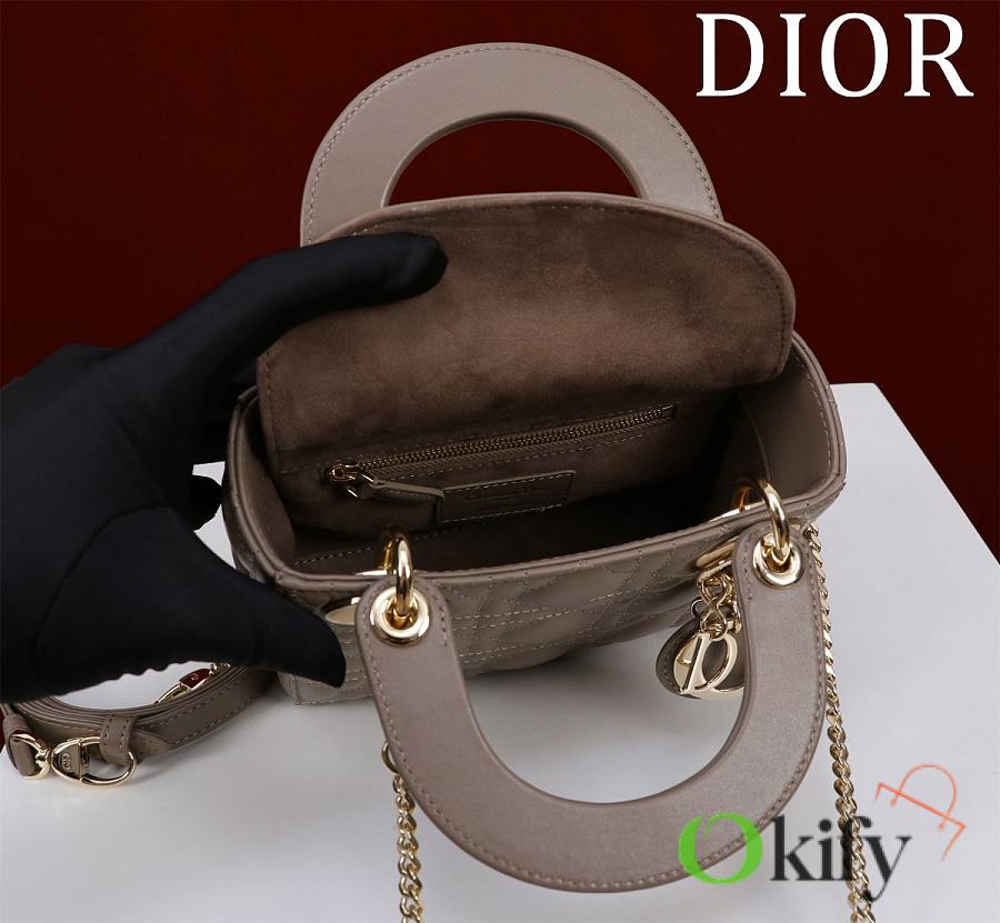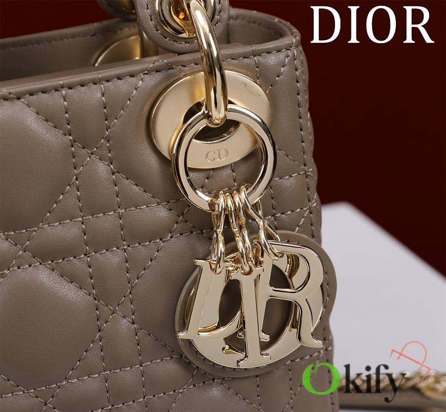 Okify Dior Lady Bag Taupe Lambskin Velvet 17x15x7cm
