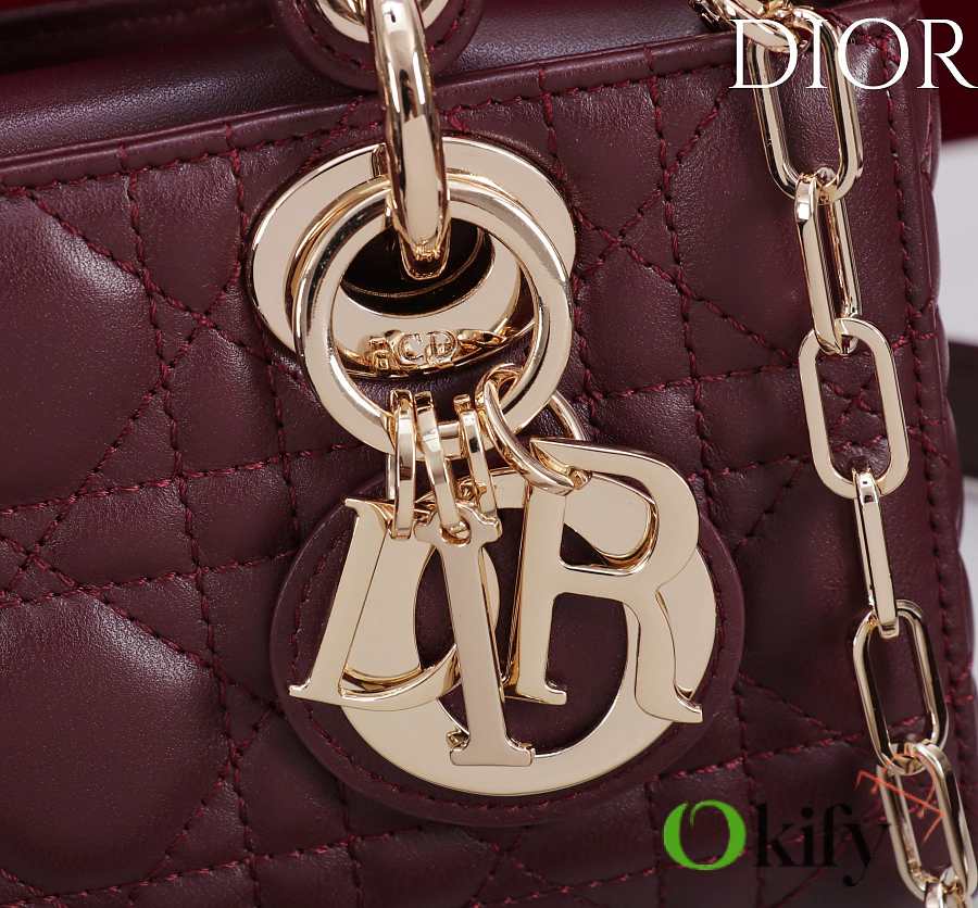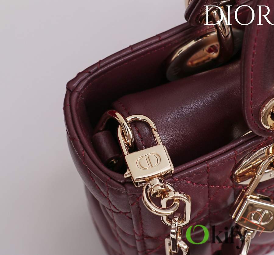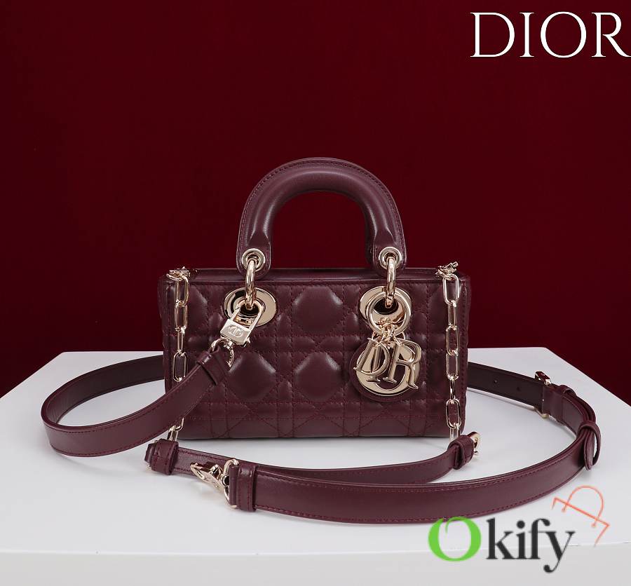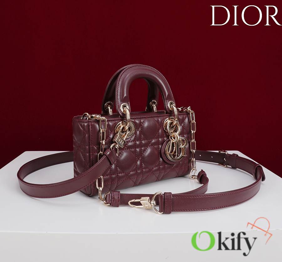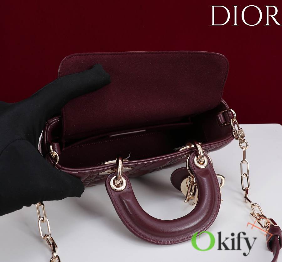 Okify Dior Lady D-joy Bag In Dark Red 19x10.5x5.5cm