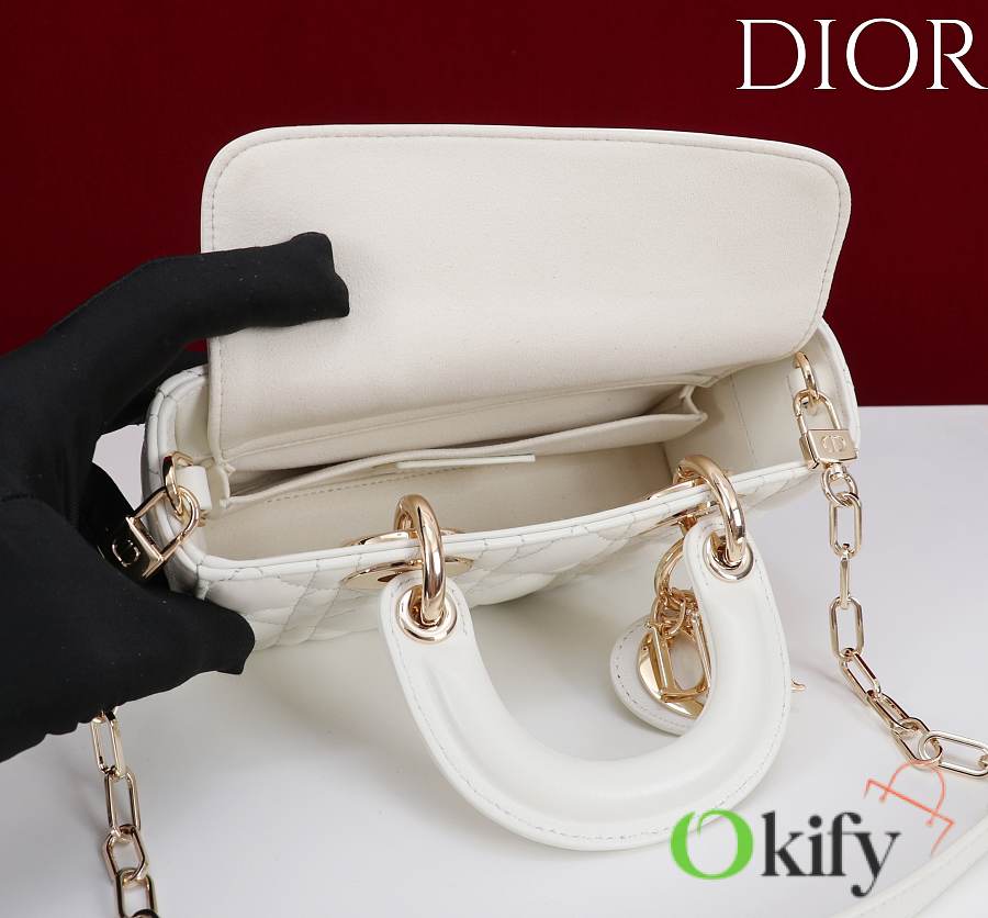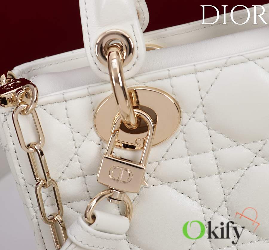 Sheepskin horizontal version 19cm The new Lady D-Joy handbag embodies Dior's profound vision of elegance and beauty. This elegant and timeless design is meticulously crafted from imported lambskin leather embroidered with the brand's classic rattan-grid pattern. The light gold-finished metal D·I·O·R charm elevates the style and adds a touch of agility to the exquisite silhouette. With a detachable chain shoulder and an adjustable and detachable leather shoulder strap, it can be carried by hand, on the shoulder, or across the body, making it the ideal everyday choice for the woman of color. Detachable chain shoulder strap Detachable, adjustable leather shoulder strap Dust bag included