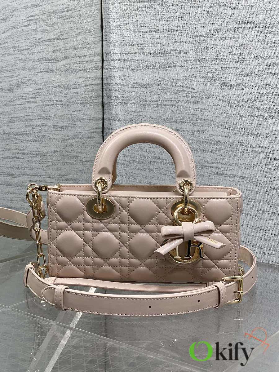 The D-joy small series features the latest bow hardware, and the new size is even more compact and exquisite. It's poised to be a huge hit! The bag comes with two shoulder straps for multiple carrying options. It looks beautiful and stylish when worn, and the classic diamond quilted design, paired with soft lambskin, is elegant and fashionable.