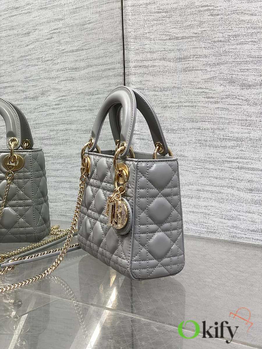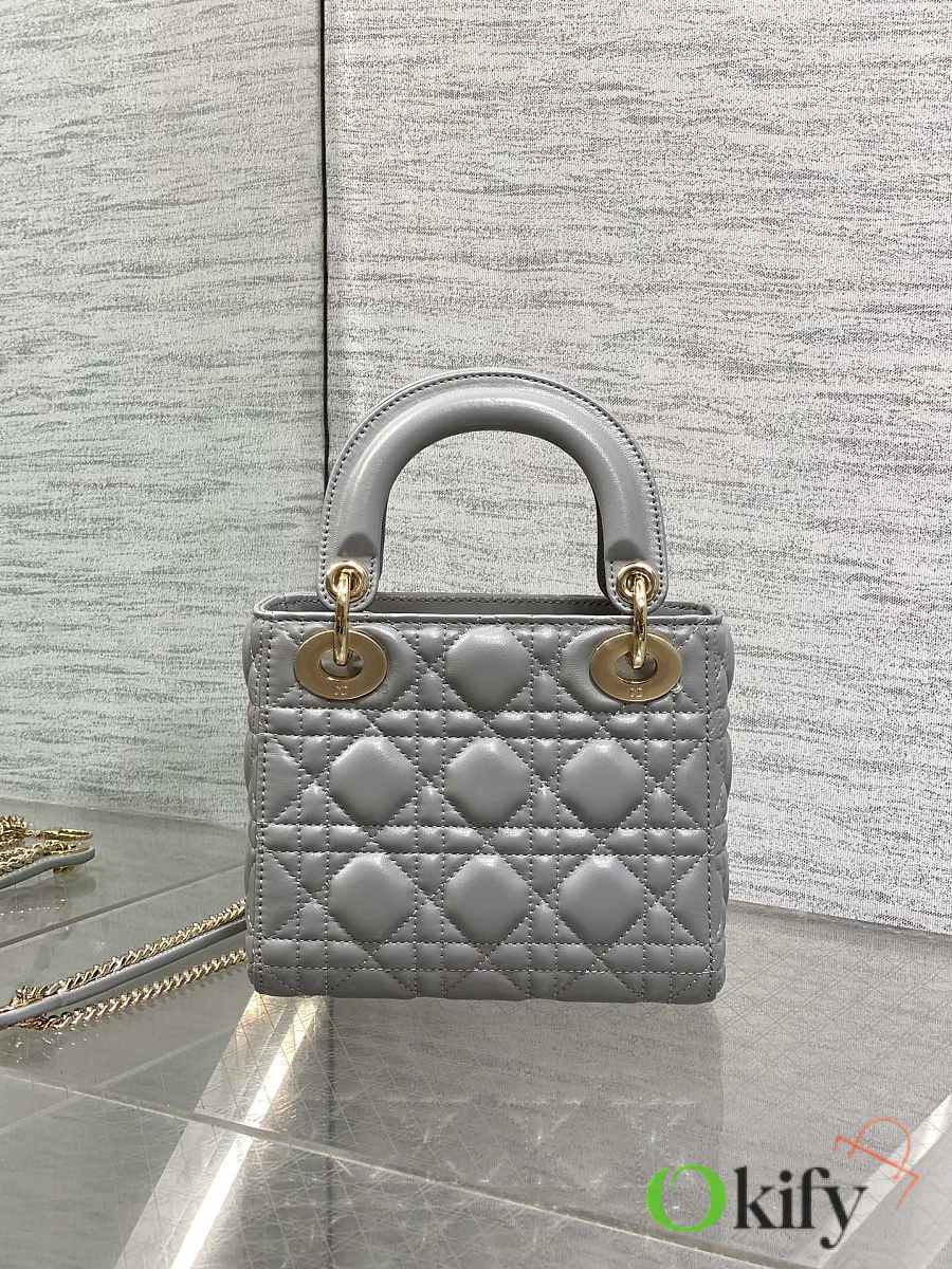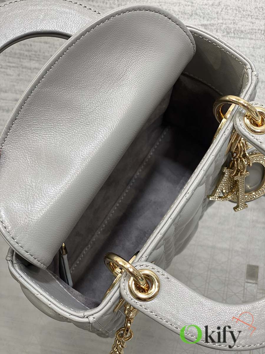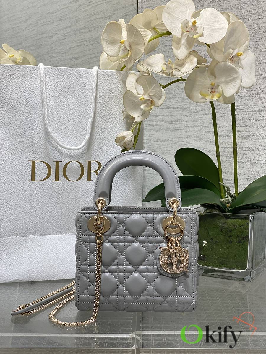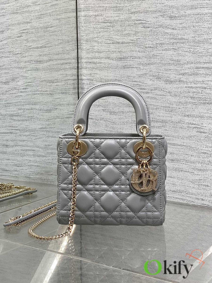 Okify Dior Lady Mini Bag Gray With Diamond Logo 17x15x7cm