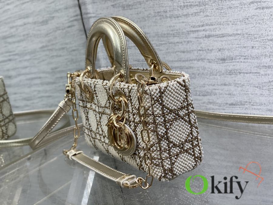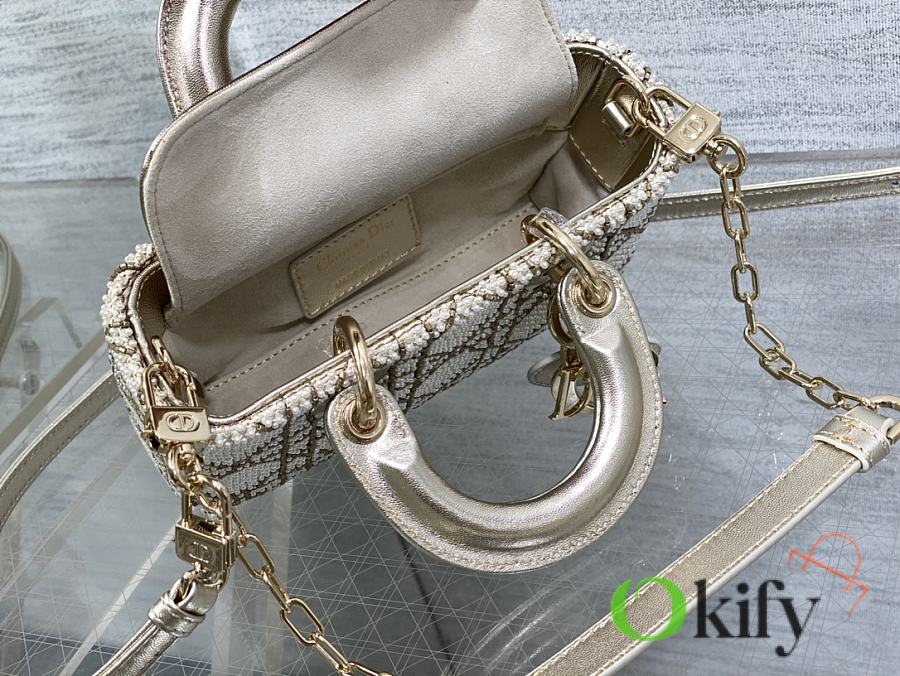Lady's latest limited edition white handmade beaded horizontal bag series is so small, it can't hold much but a cute little bag . Every thread and every bead on the leather is hand-embroidered. It's small enough to hold only lipstick, car keys, and can also double as a cardholder