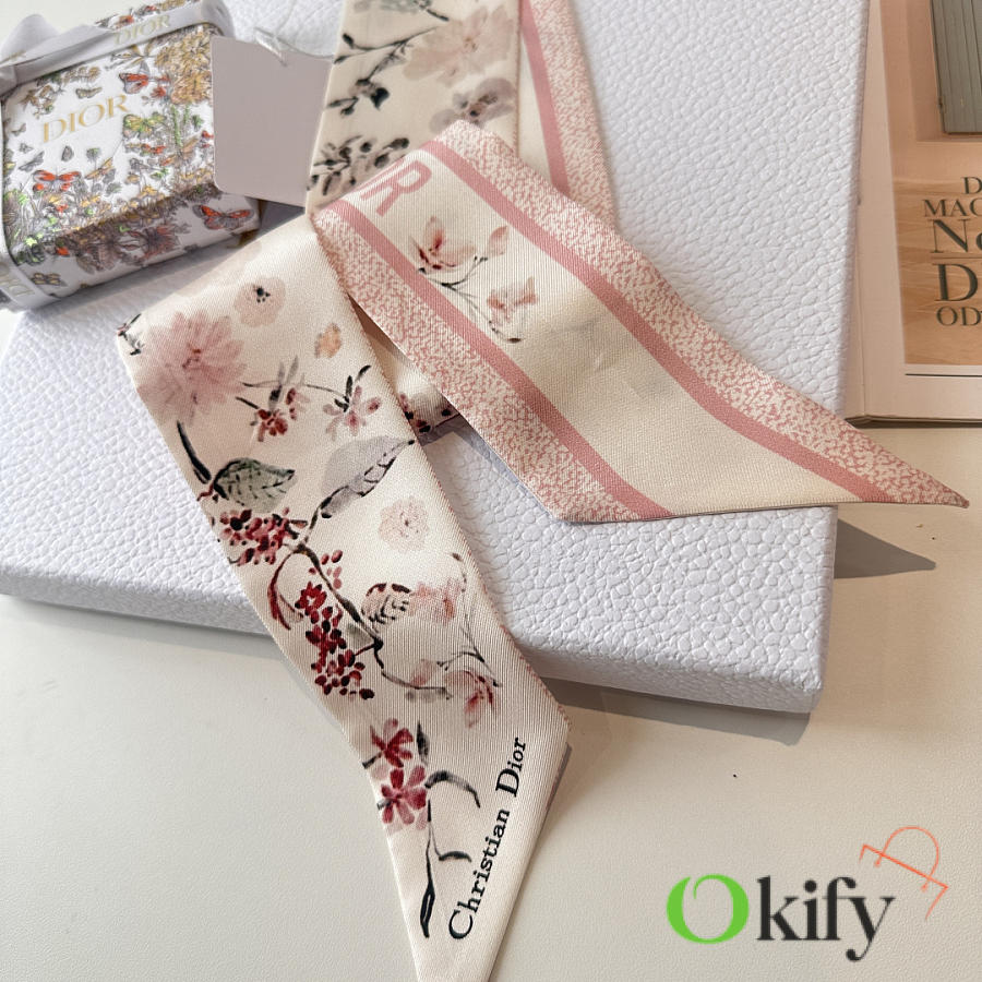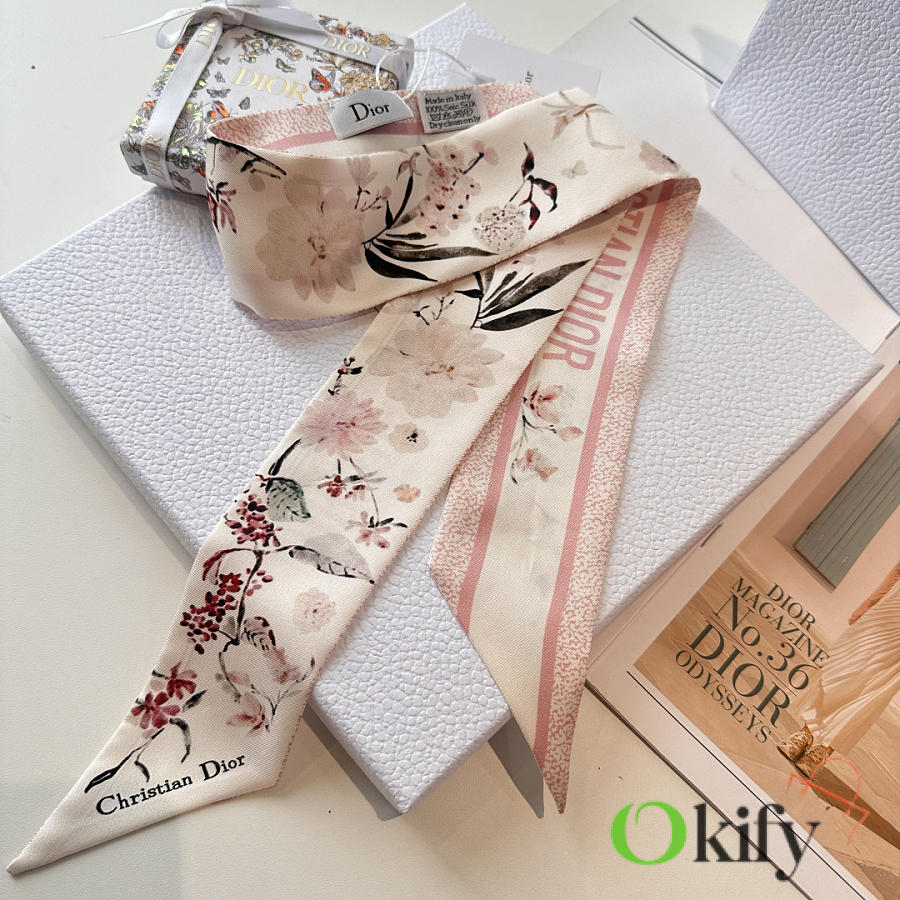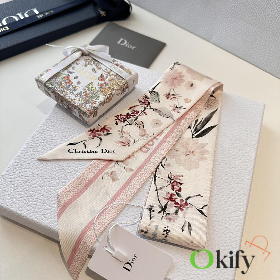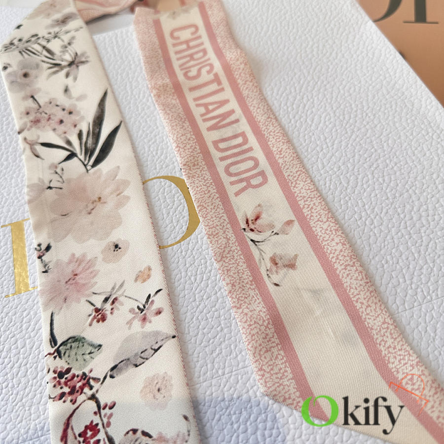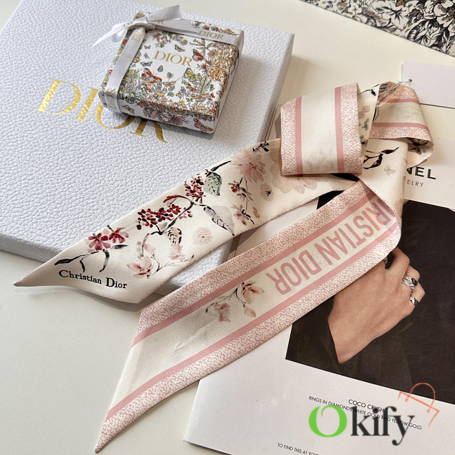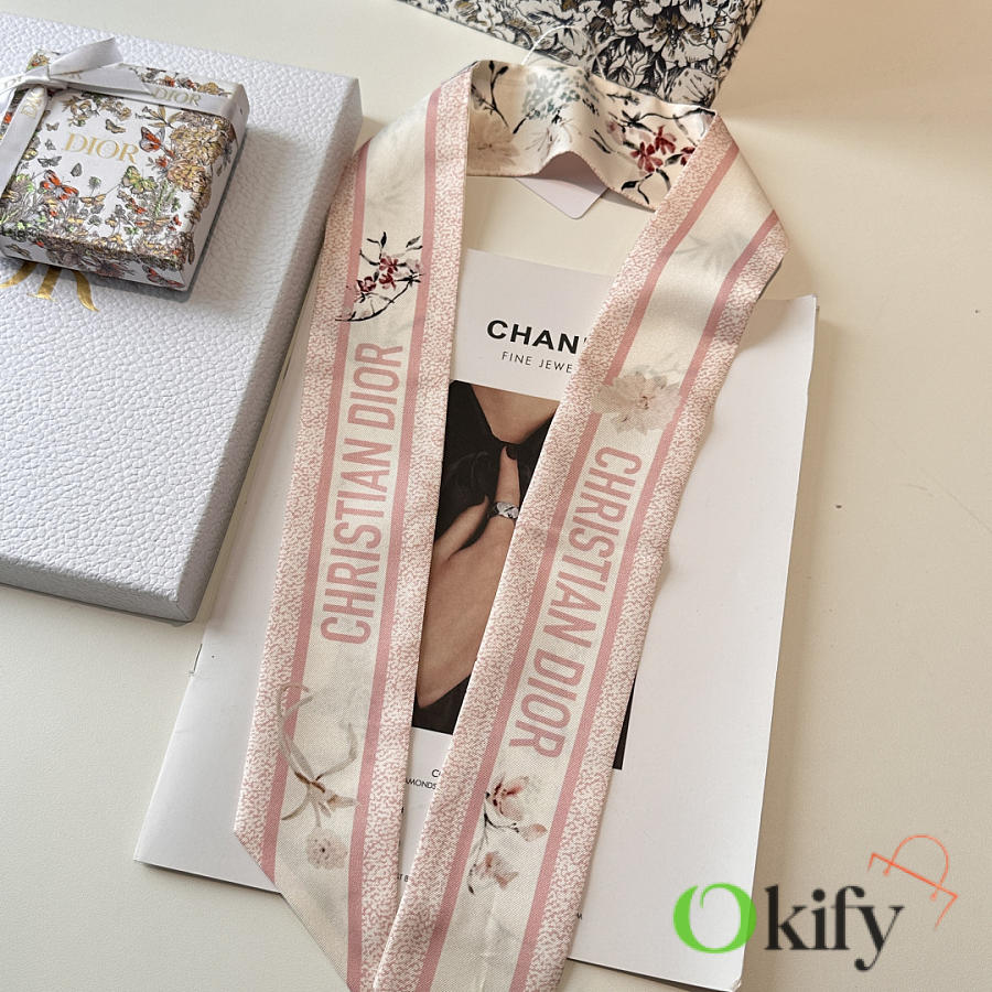 Okify Dior Mitzah Pink Silk Twilly Scarf