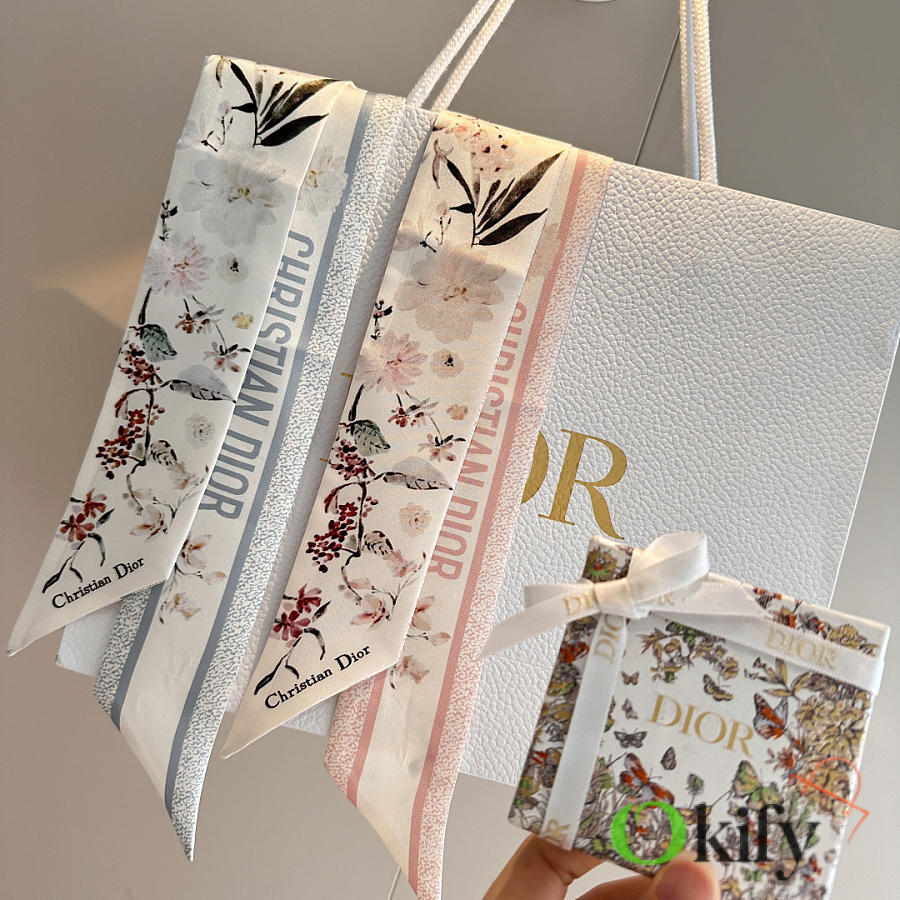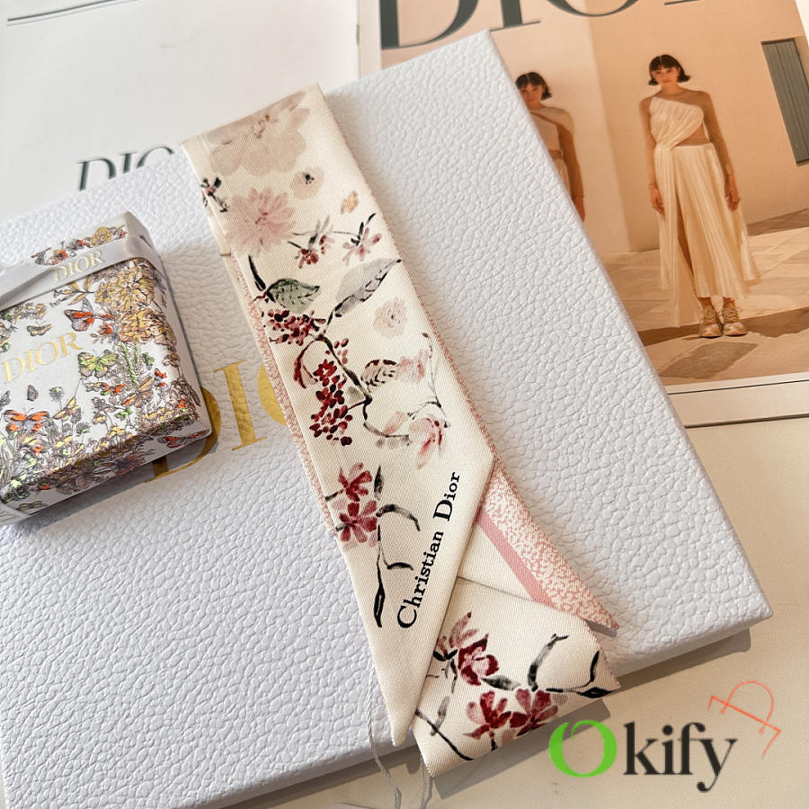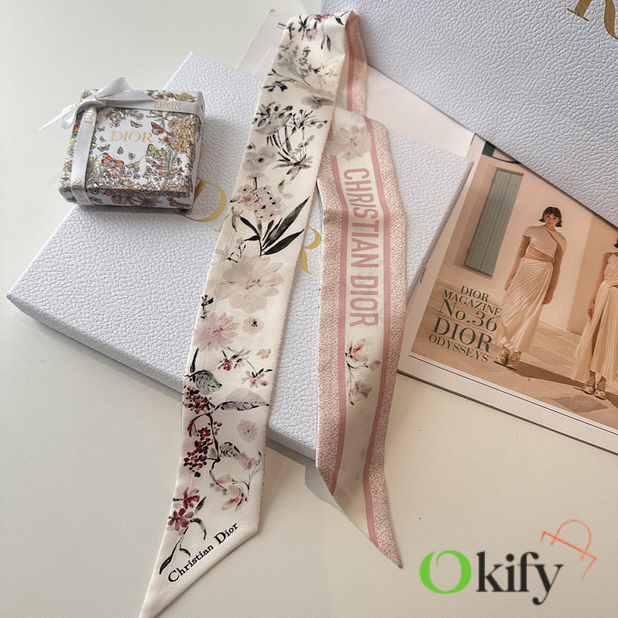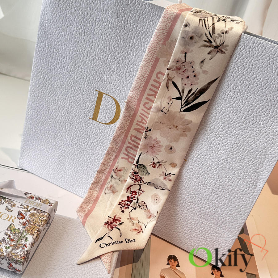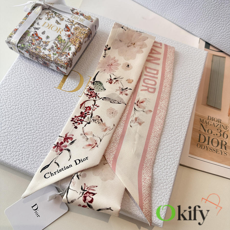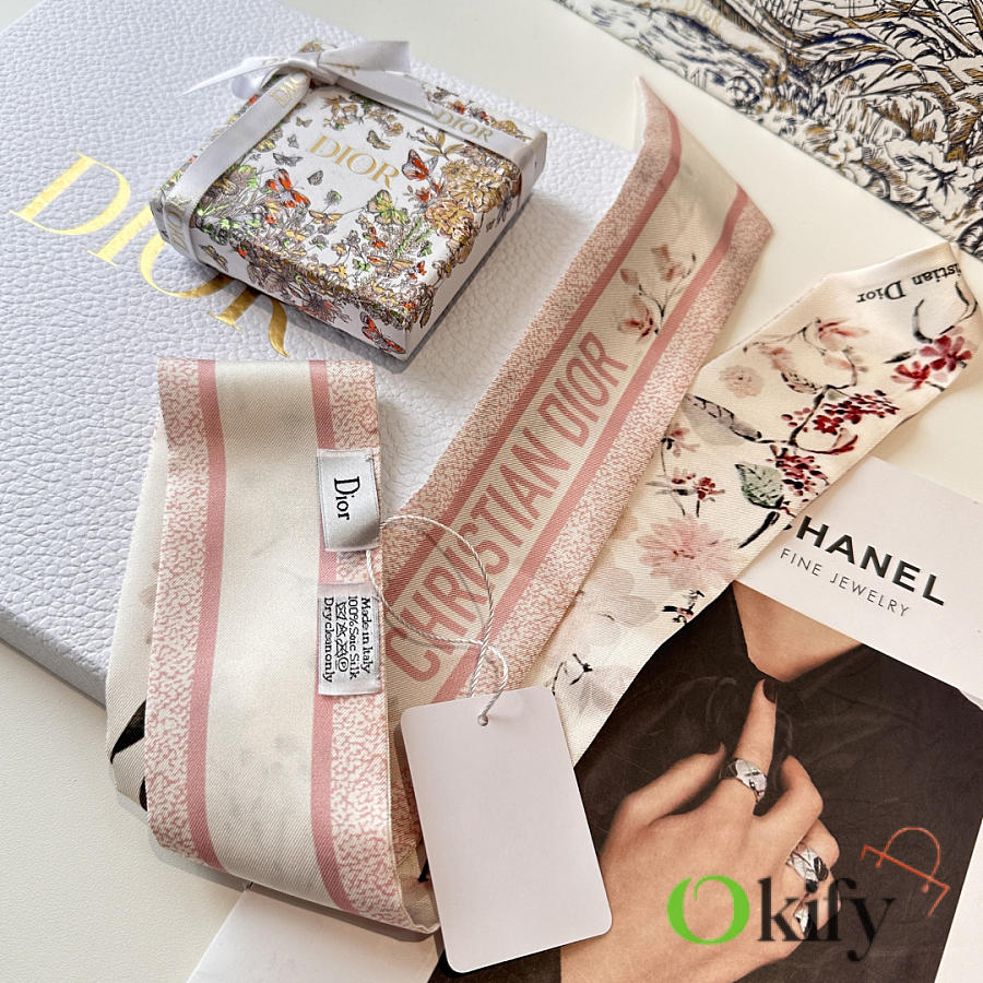 Okify Dior Mitzah Pink Silk Twilly Scarf