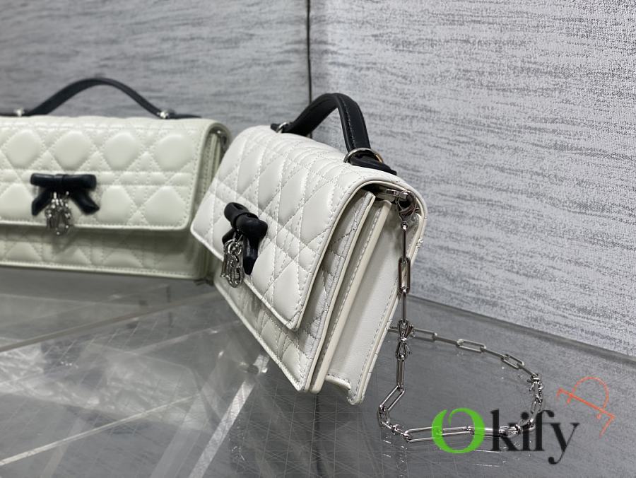 This is the latest bow-tie pearl chain from the brick cabinet. Featuring the iconic cannage pattern, classic letter charm strap, and a unique handle design, paired with soft lambskin, it's elegant and stylish. The highlight is the exquisite pearl chain, making the entire bag even more refined. The interior has multiple compartments and card slots, making it both beautiful and highly practical.