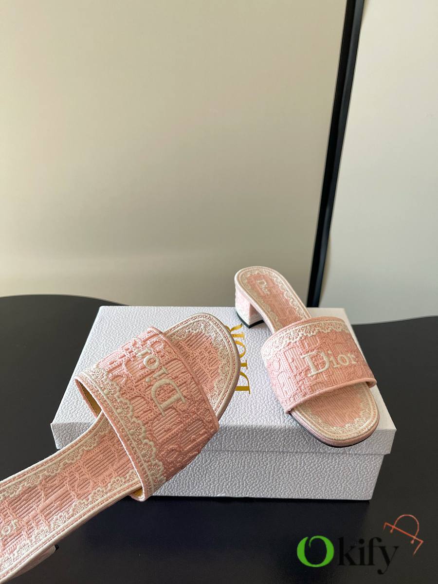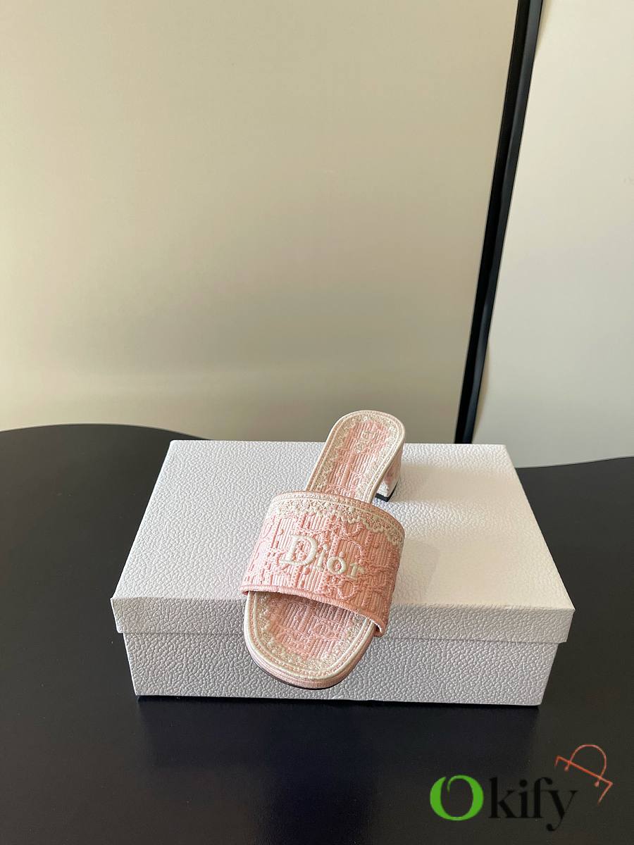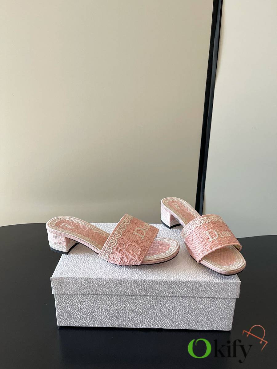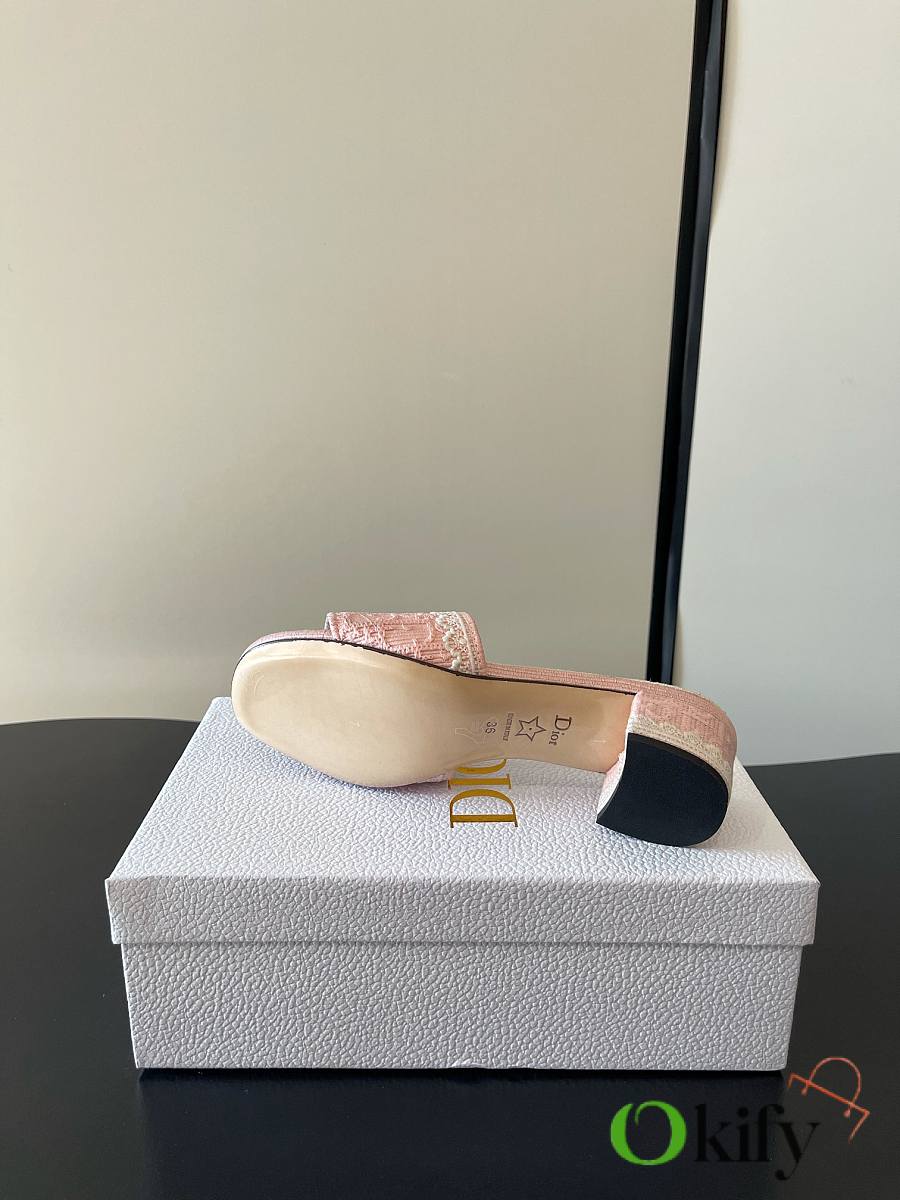 Dior's latest Spring/Summer collection of mid-heel mules is exquisite and elegant. The 5D design on the upper features the highly recognizable Dior logo, making it suitable for both everyday wear and vacations. The Oblique embossing is a classic Dior element, paired with lace embroidery for a touch of French romance! The lightweight sole ensures comfort even after long periods of wear, making these practical and stylish must-have items for spring and summer. Fabric: 5D lace with electro-embroidery. Sole: Italian genuine leather sole Size: 35-41 (40 and 41 are made to order)