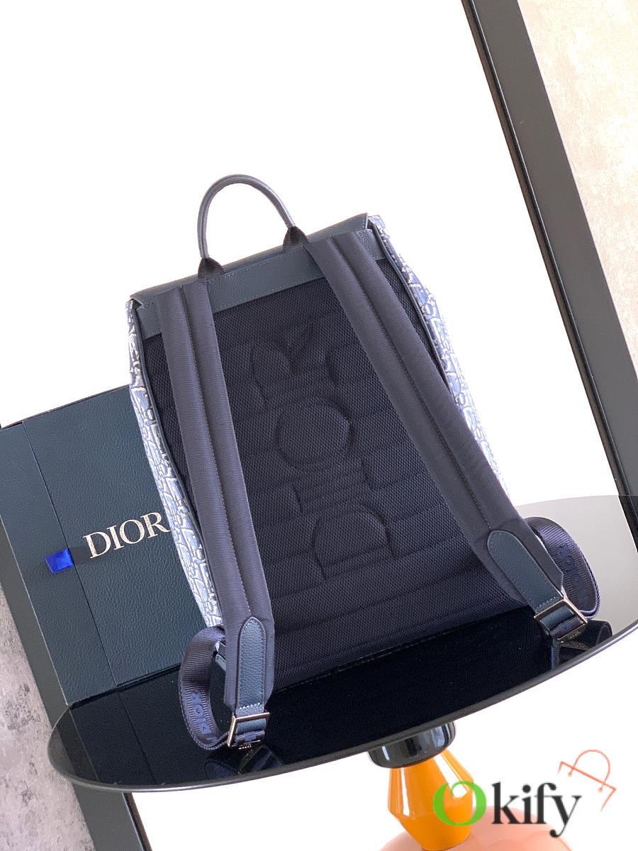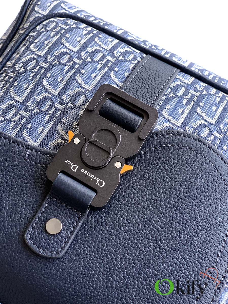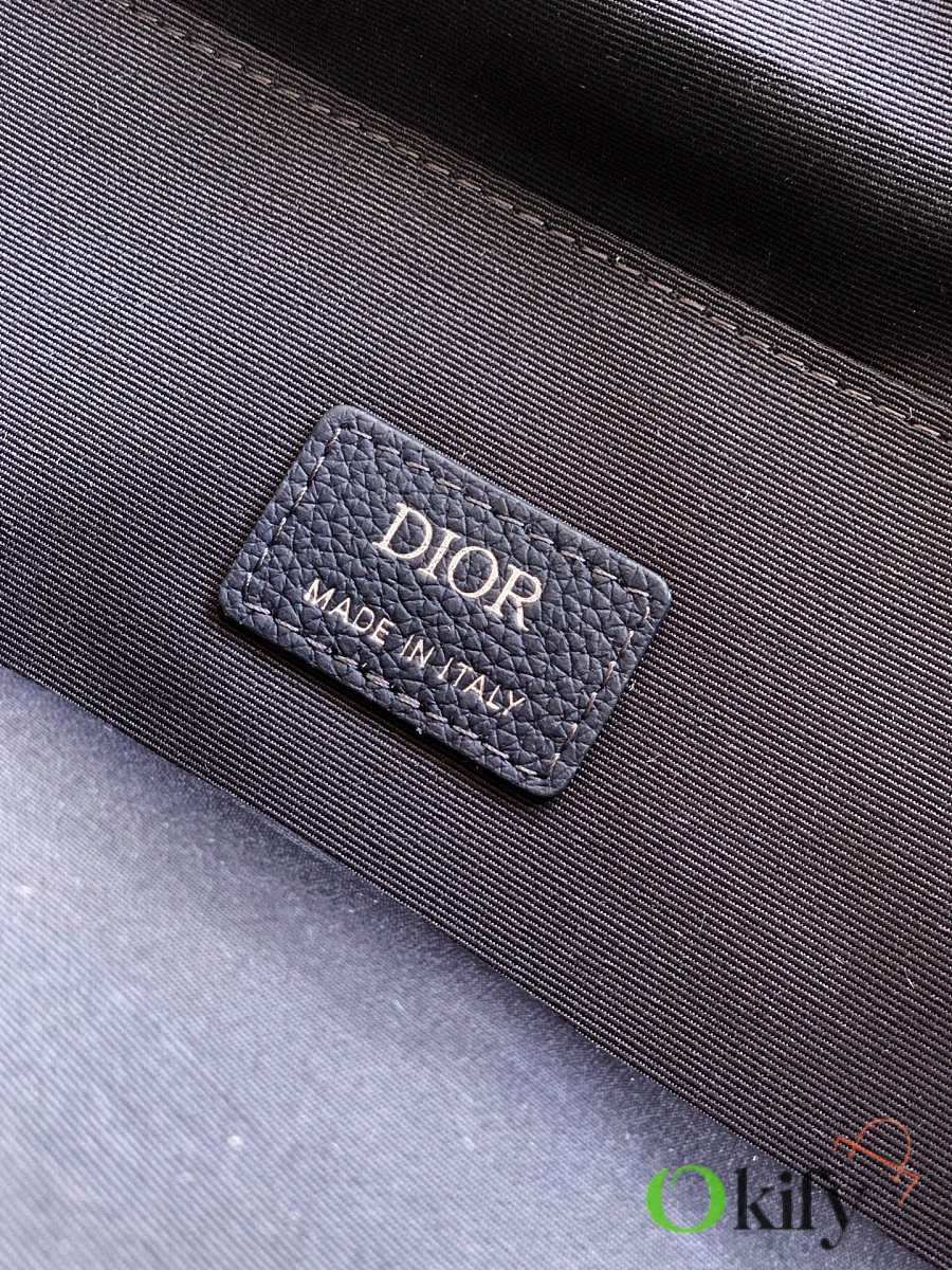 This saddle-style flap backpack features a stylish, original design that highlights the saddle silhouette. Crafted from materials including blue Oblique printed fabric, it's adorned with tonal grained calfskin leather details and the Dior logo on the front. Spacious and well-designed, it includes a compartment for everyday essentials, while the front flap pocket with an aluminum buckle provides easy access to a wallet, keys, earphones, or phone. Practical and versatile, it's the perfect finishing touch to any outfit. Main body: technical fabric, cotton, cowhide leather Lining: Technical fabric, cotton, cowhide leather The main compartment features a flip-top and drawstring. Internal flat computer compartment Front flap pocket with CD logo buckle Top leather handle Adjustable padded shoulder straps The back is made of padded mesh fabric and decorated with the Dior logo. The front is decorated with a Dior logo made of copper-plated metal. The interior is decorated with the Dior embossed logo. Includes dust bag