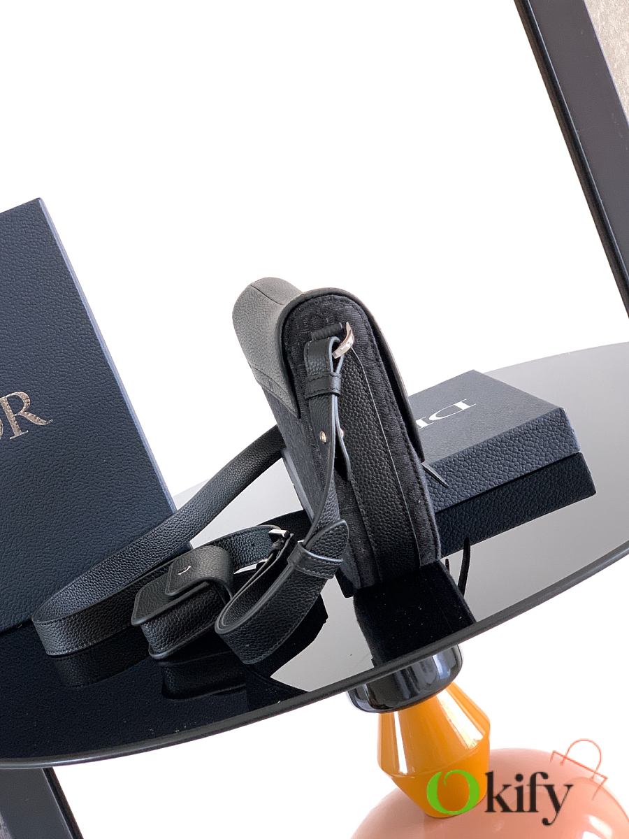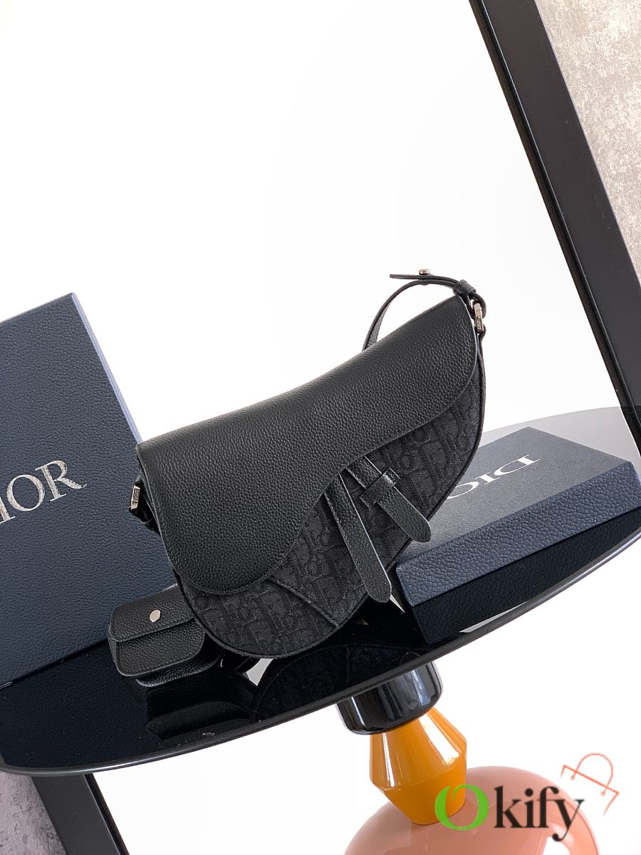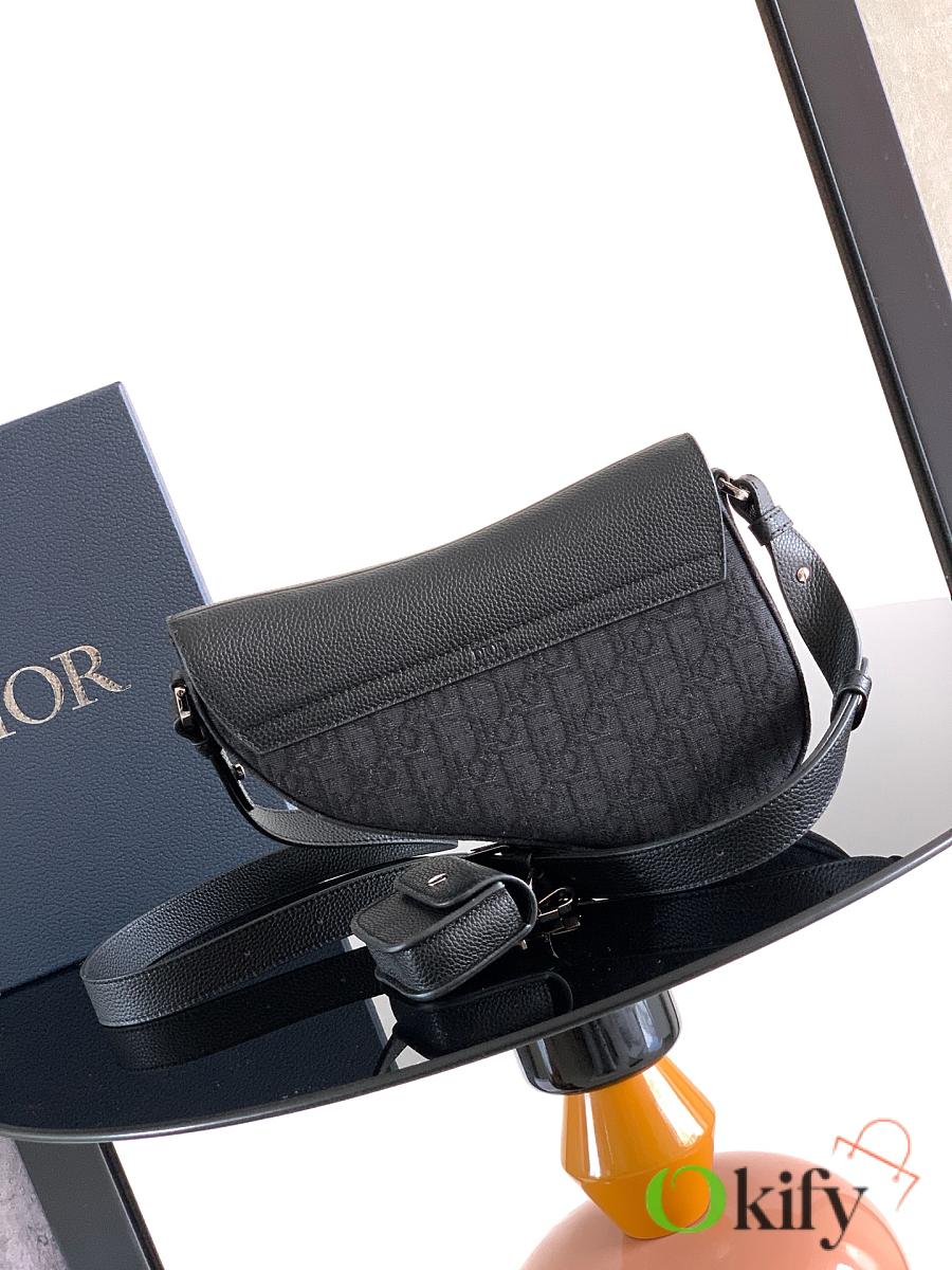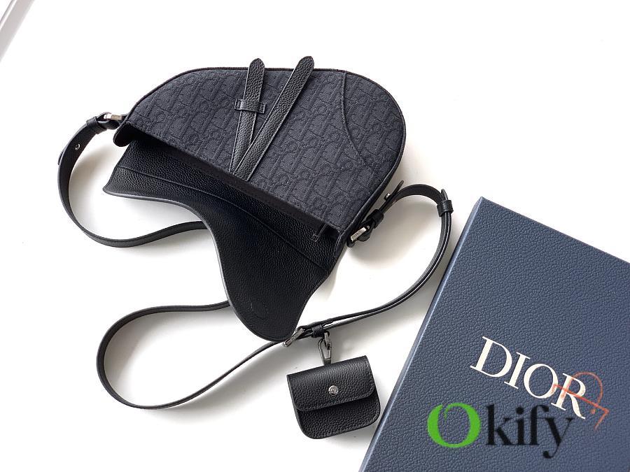 This Dior Saddle Bag is a new addition to the Winter 2025 menswear collection, reinterpreting Dior's classic design with a stylish silhouette. Crafted from materials including black Oblique printed fabric, it features a classic silhouette with a magnetic flap in toned calfskin leather, elevating its elegance. The spacious interior includes a zip pocket for added practicality. The adjustable, detachable shoulder strap with a D-ring allows for the attachment of various accessories, and it can be comfortably worn crossbody or carried by hand. Fabric: woven fabric, cowhide leather Lining: Fabric, cowhide leather Main compartment with magnetic flip cover Internal zippered pocket The adjustable, detachable leather shoulder strap with D-rings allows for the hanging of various accessories. The rear is decorated with the Dior embossed logo. The interior is decorated with the Dior embossed logo. Full box