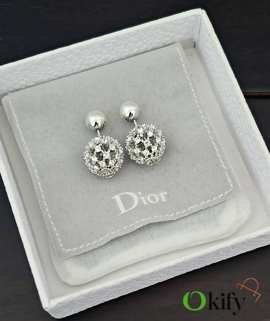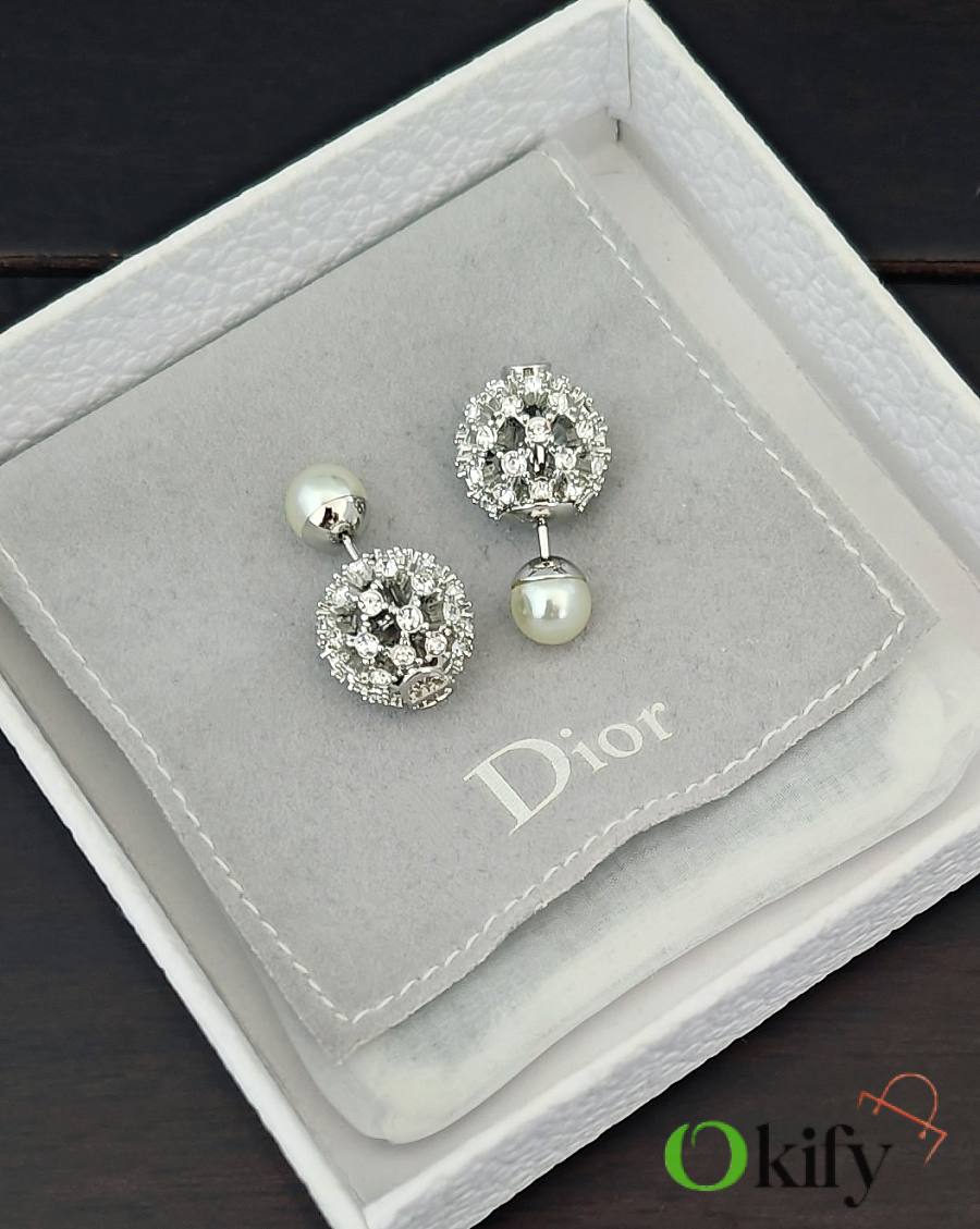 Okify Dior Silver Hollowed-out Large And Small Beads With Diamond Earrings