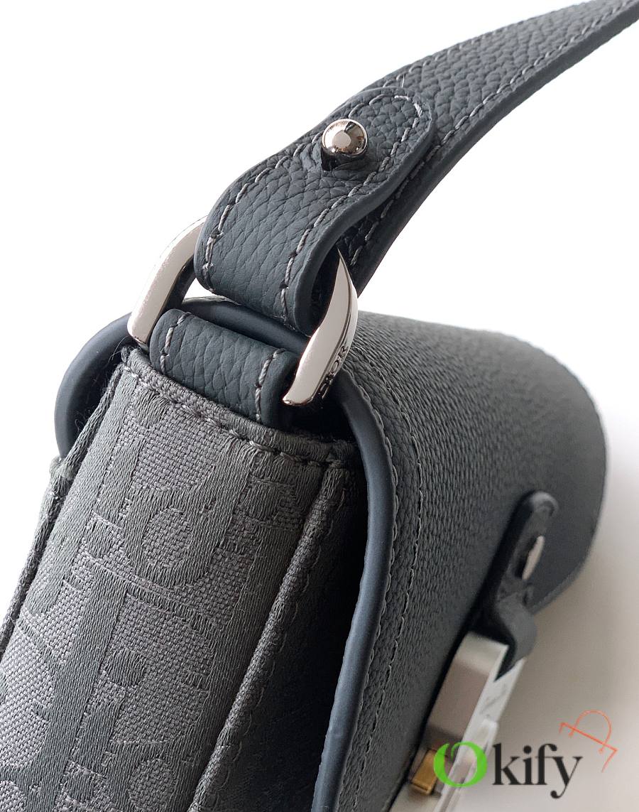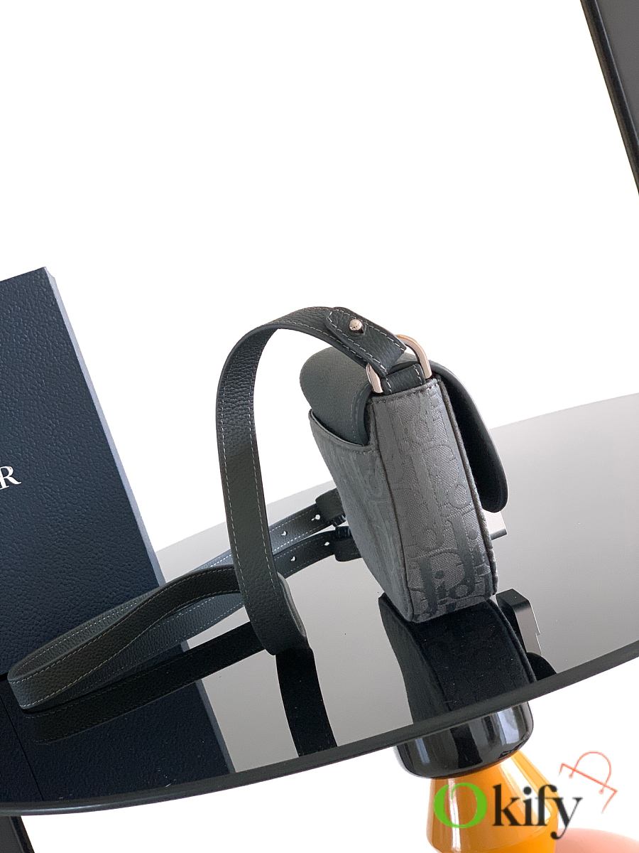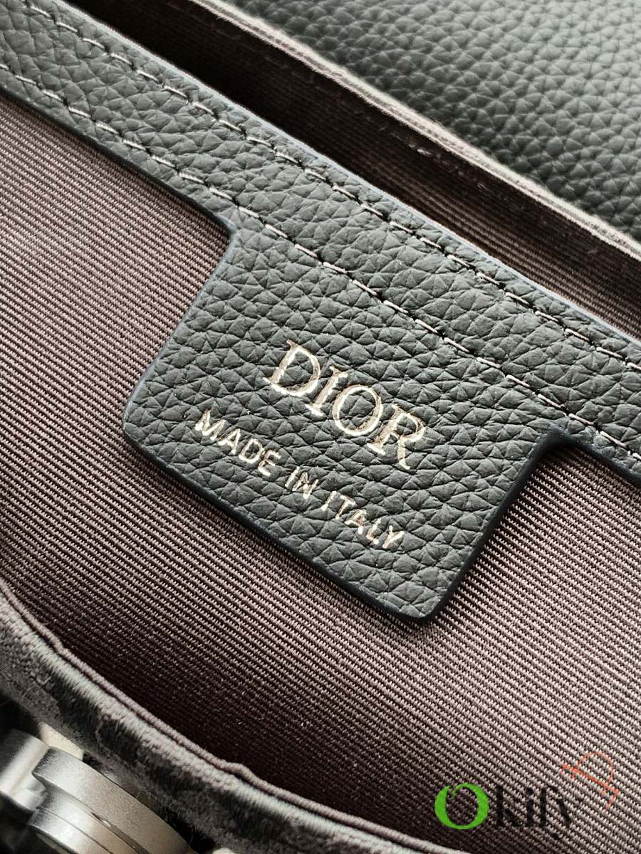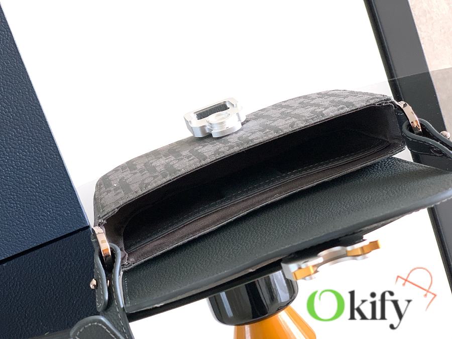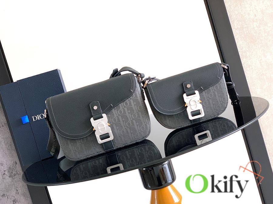 This saddle clutch with a shoulder strap is a new addition to the Spring 2023 menswear collection. Its stylish design exudes refined elegance, elevating the classic saddle line. Crafted from jacquard fabric with metallic stitching and an Oblique print, it features a dark grey calfskin saddle flap and is adorned with a Christian Dior logo aluminum buckle. It comes with a detachable, adjustable leather shoulder strap, allowing it to be carried by hand, over the shoulder, or crossbody. Metallic Oblique Print Dark grey grained cow leather The inside is decorated with the Dior logo. The flip-top closure features an aluminum clasp adorned with the Christian Dior logo and the initials CD. Detachable, adjustable leather shoulder strap