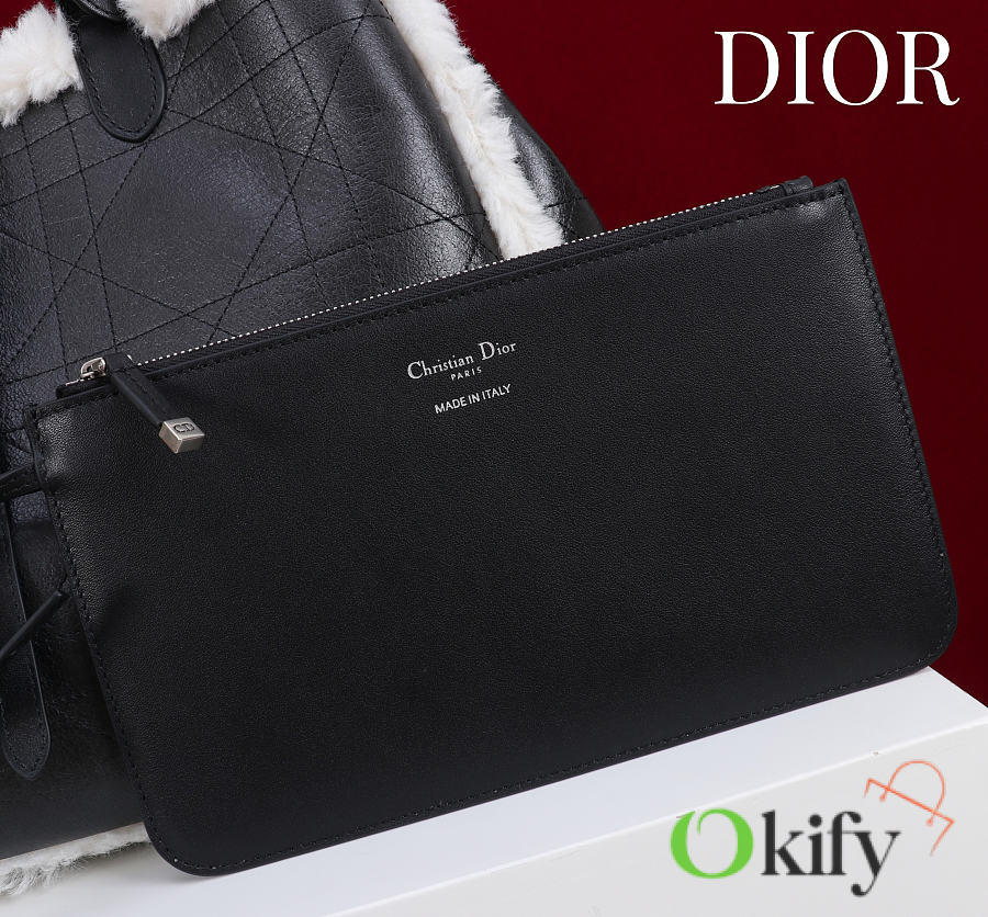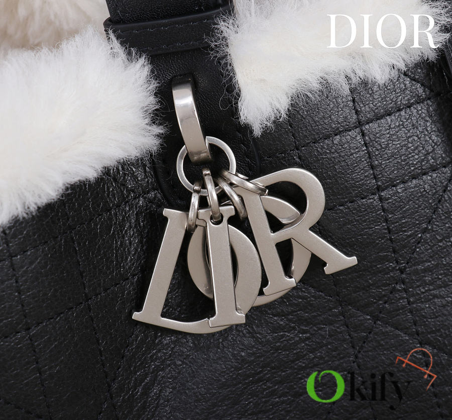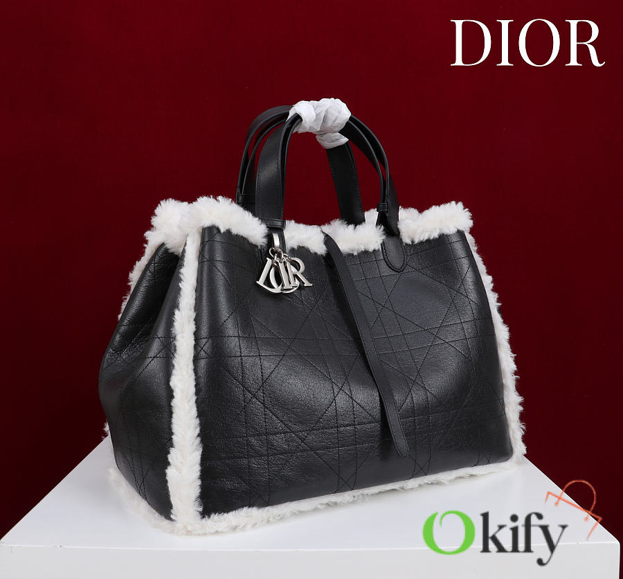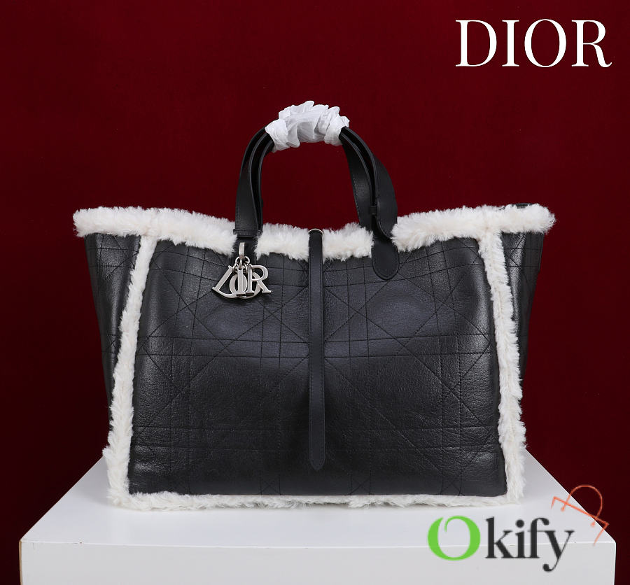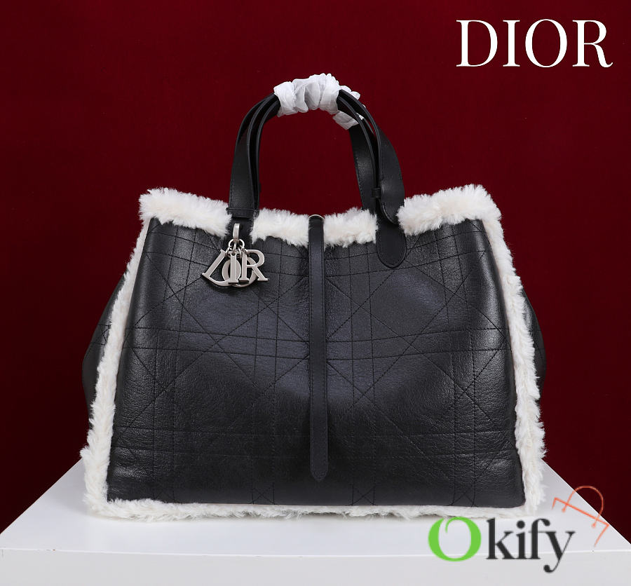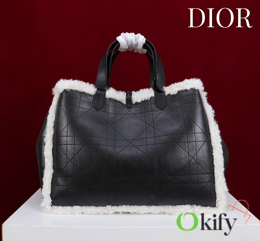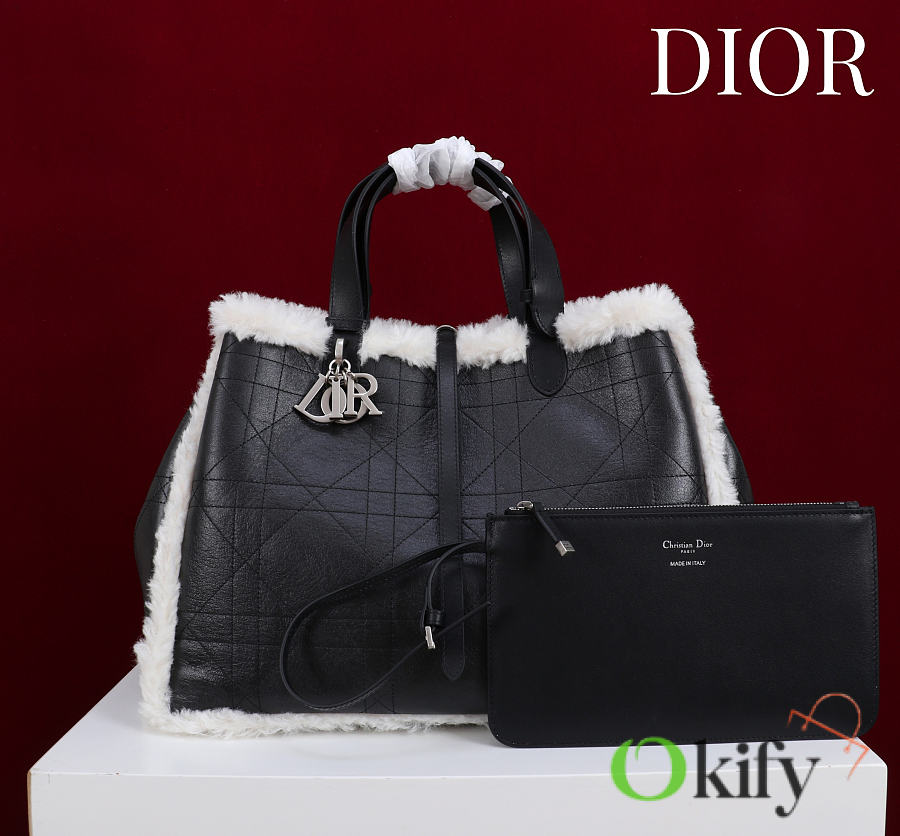Okify Dior Toujours Large Flat Macrocannage Bag In Black Calfskin With Fur 37x27x21cm