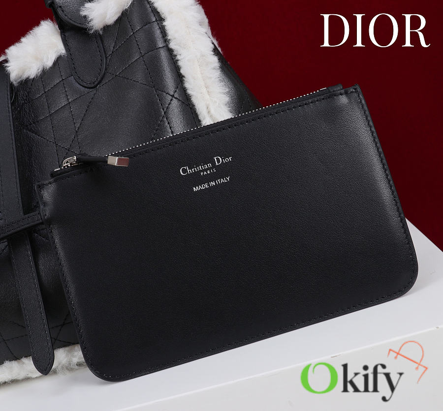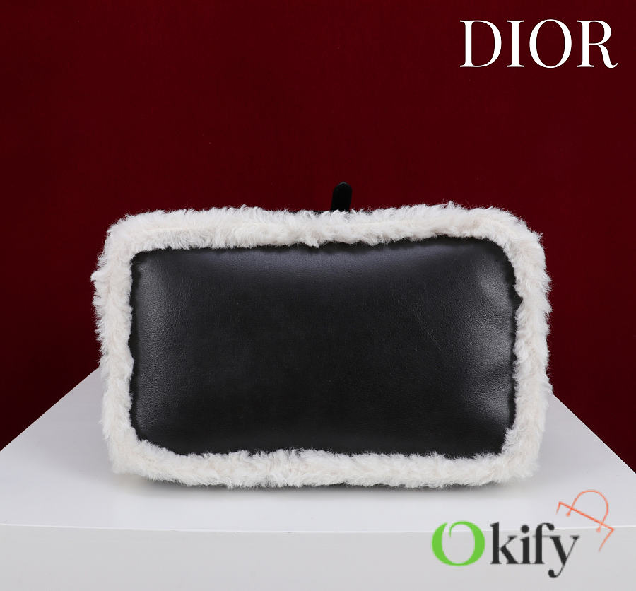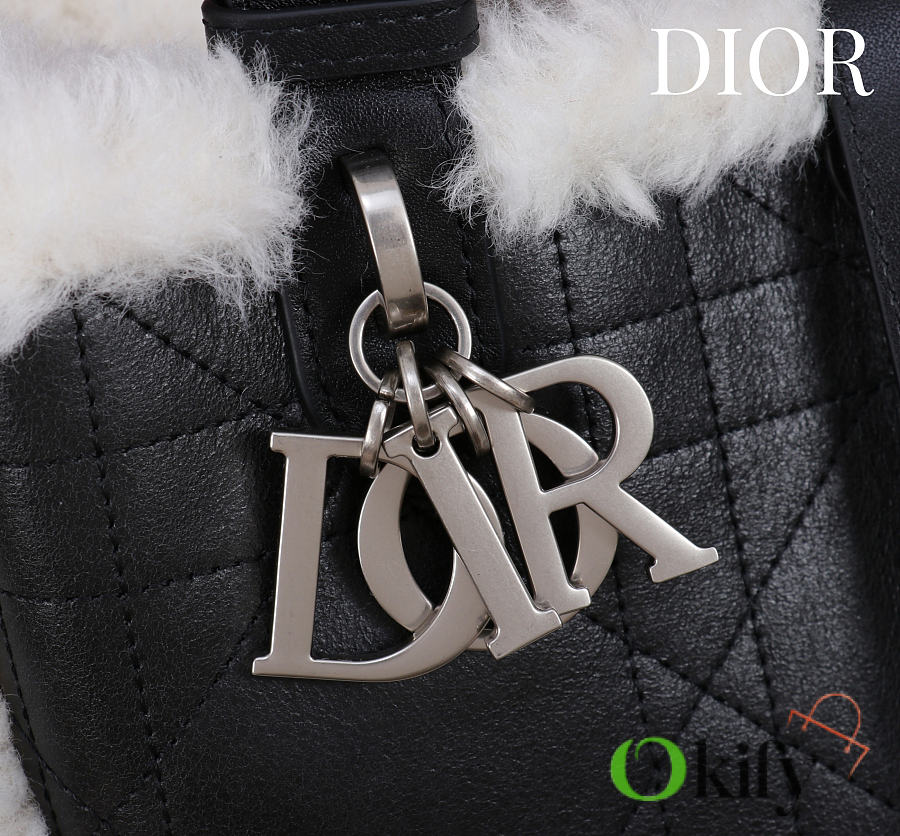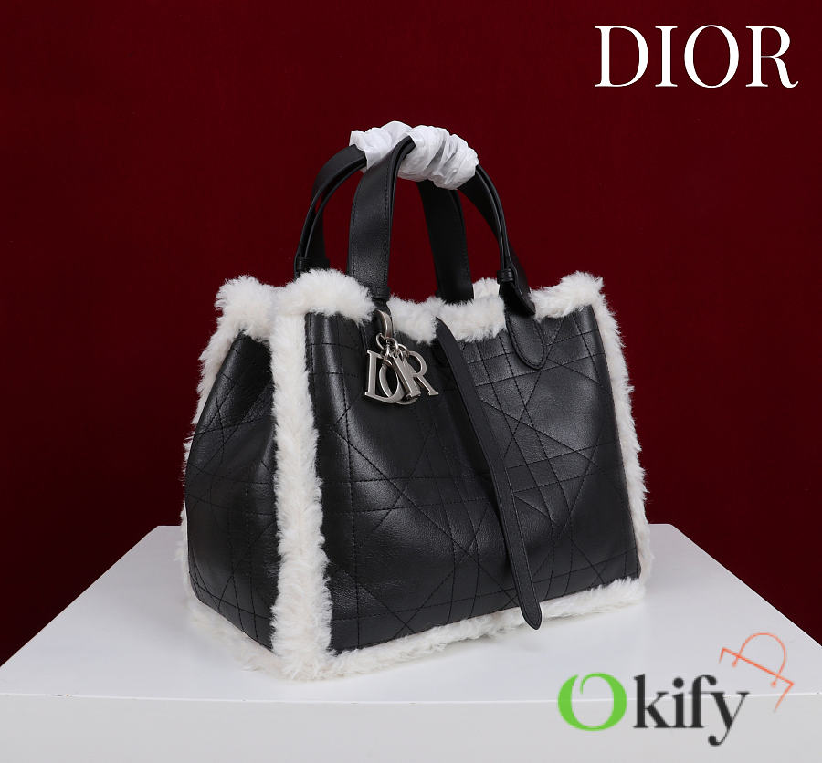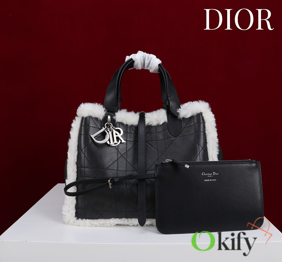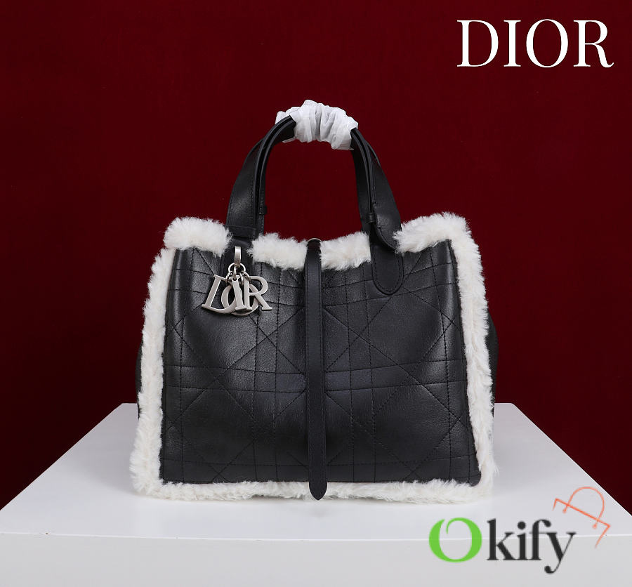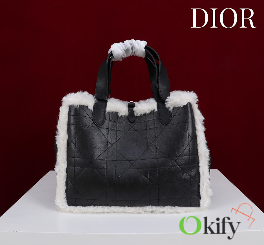 Okify Dior Toujours Medium Flat Macrocannage Bag In Black Calfskin With Fur 28.5x21.5x17cm