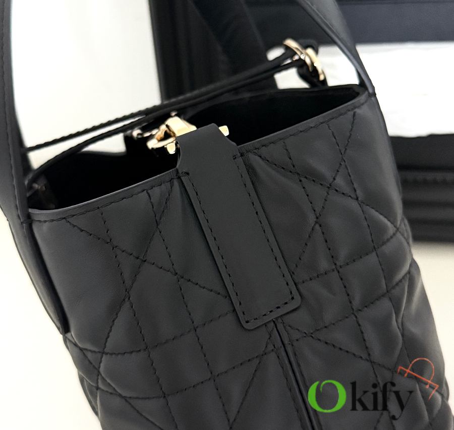 Okify Diorstar Hobo Bag with Chain Black Macrocannage Crinkled Calfskin