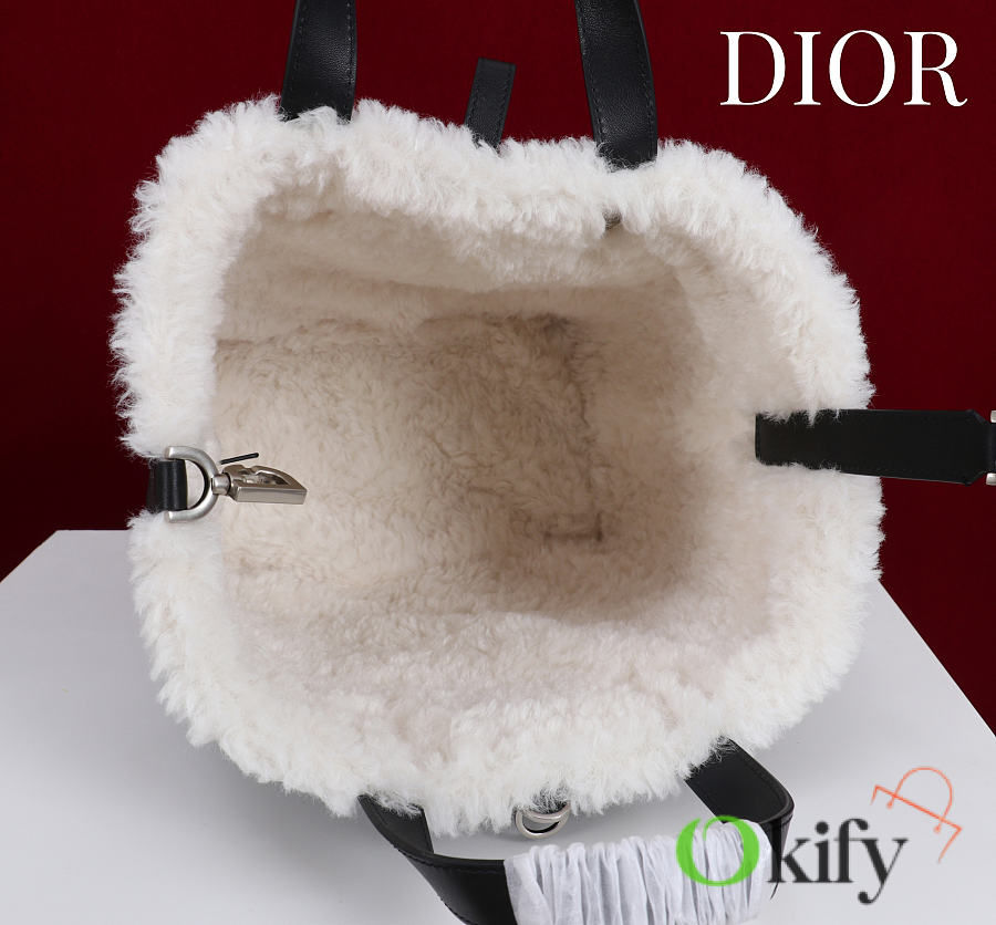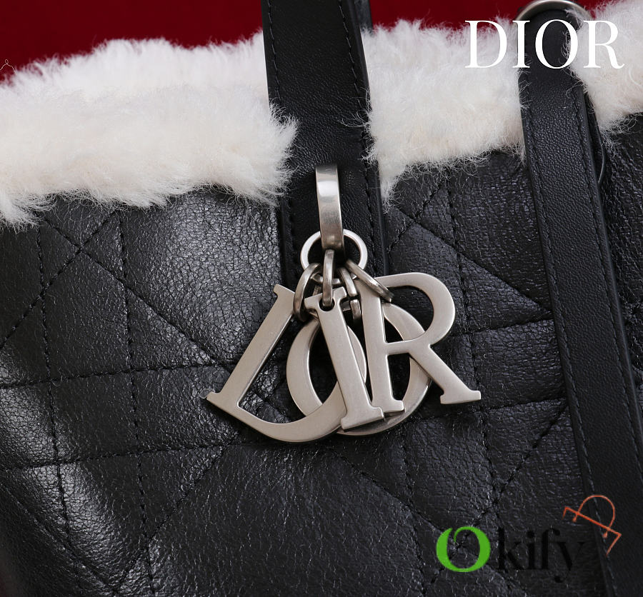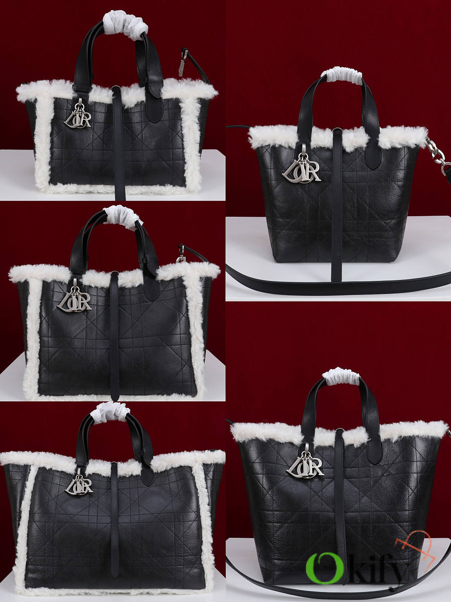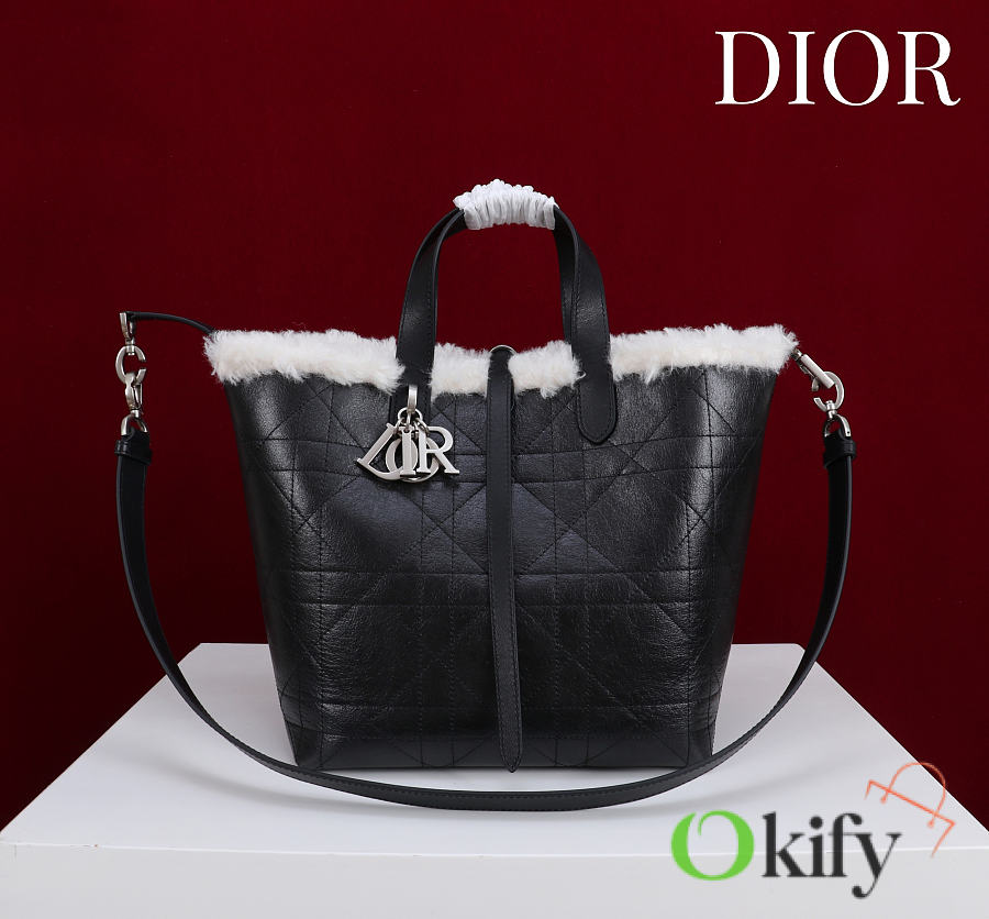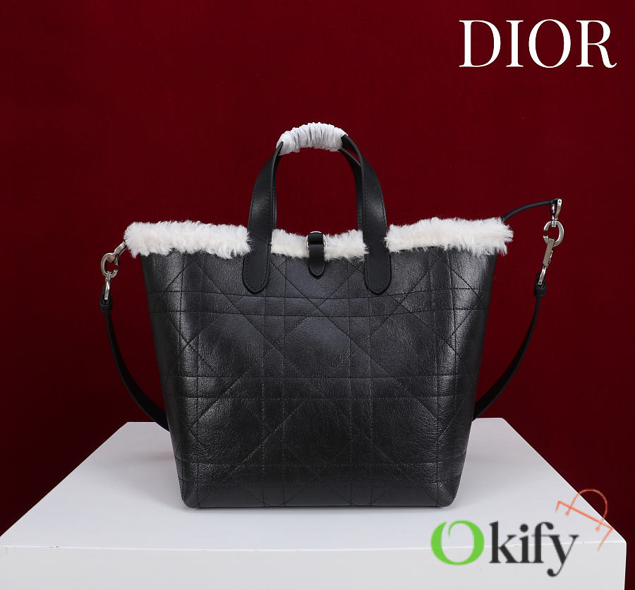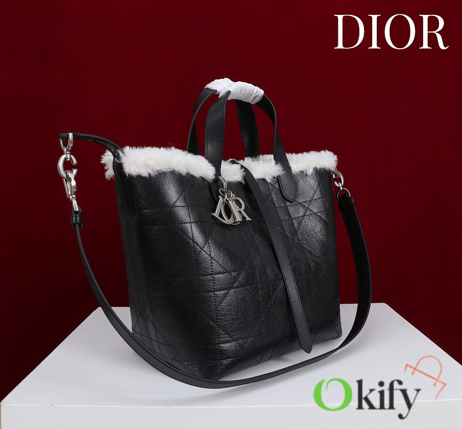 Okify Dior Toujours Vertical Medium Tote Bag In Black Calfskin With Fur 23x25x11cm