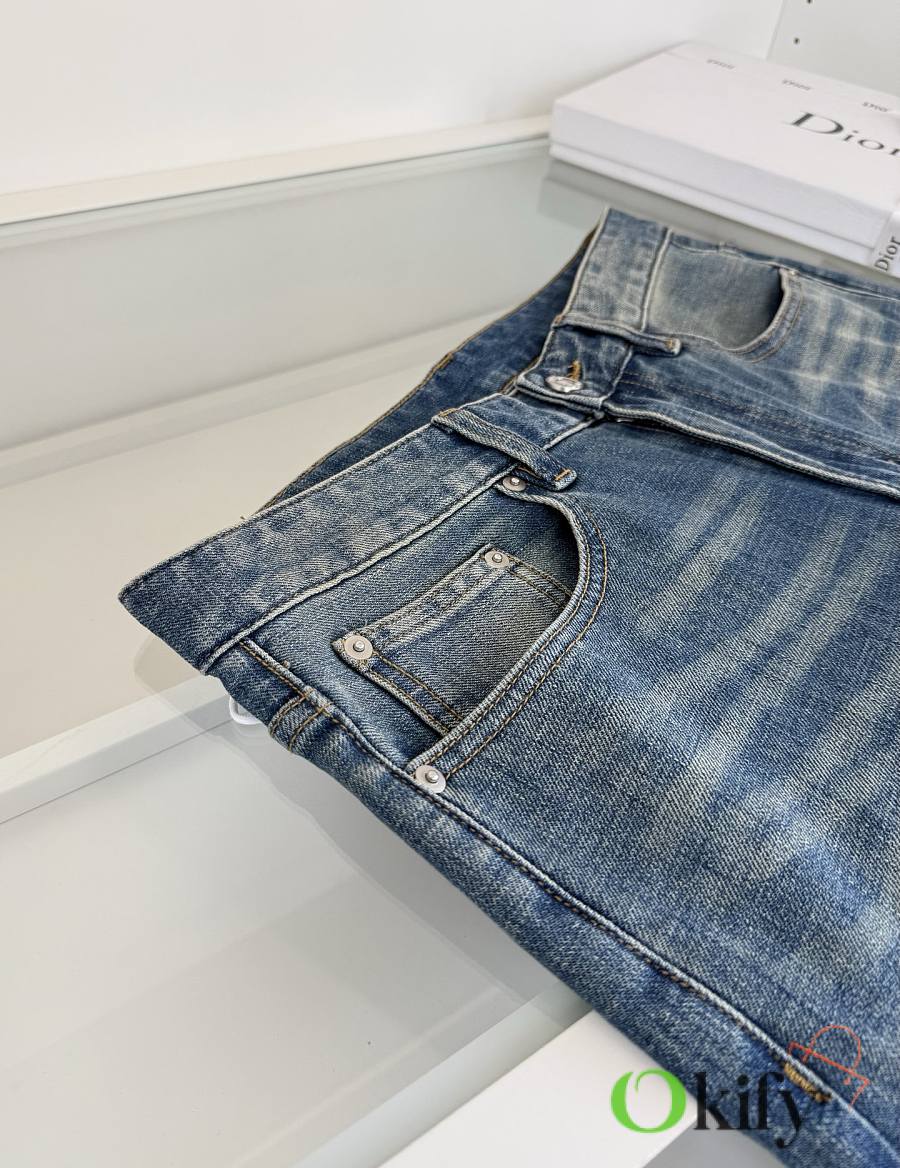 The classic five-pocket design features a leather patch and embroidered details on the back pockets, creating a stylish and sophisticated look. The slim-fit, straight cut and exquisite hardware, along with the perfectly balanced natural and eco-friendly washed blue, give the jeans a sophisticated feel. Made from denim, these jeans are comfortable against the skin, offer some stretch, and provide a comfortable, unrestricted fit while maintaining a good shape.