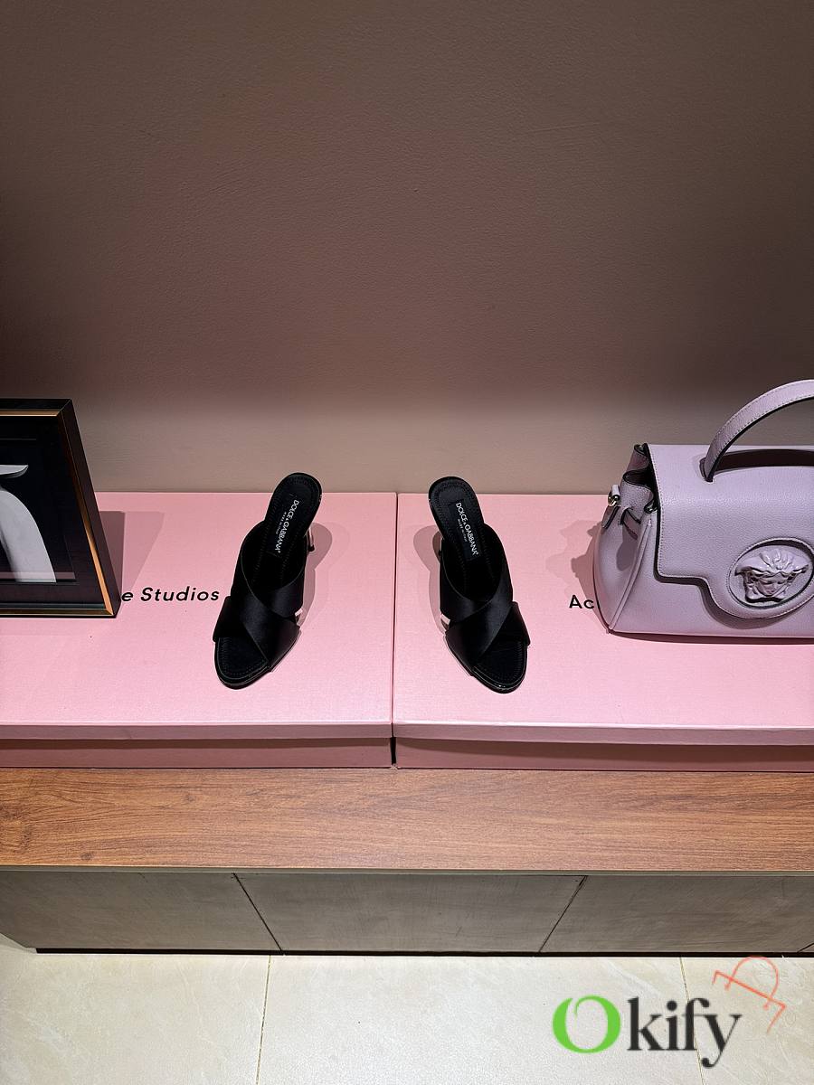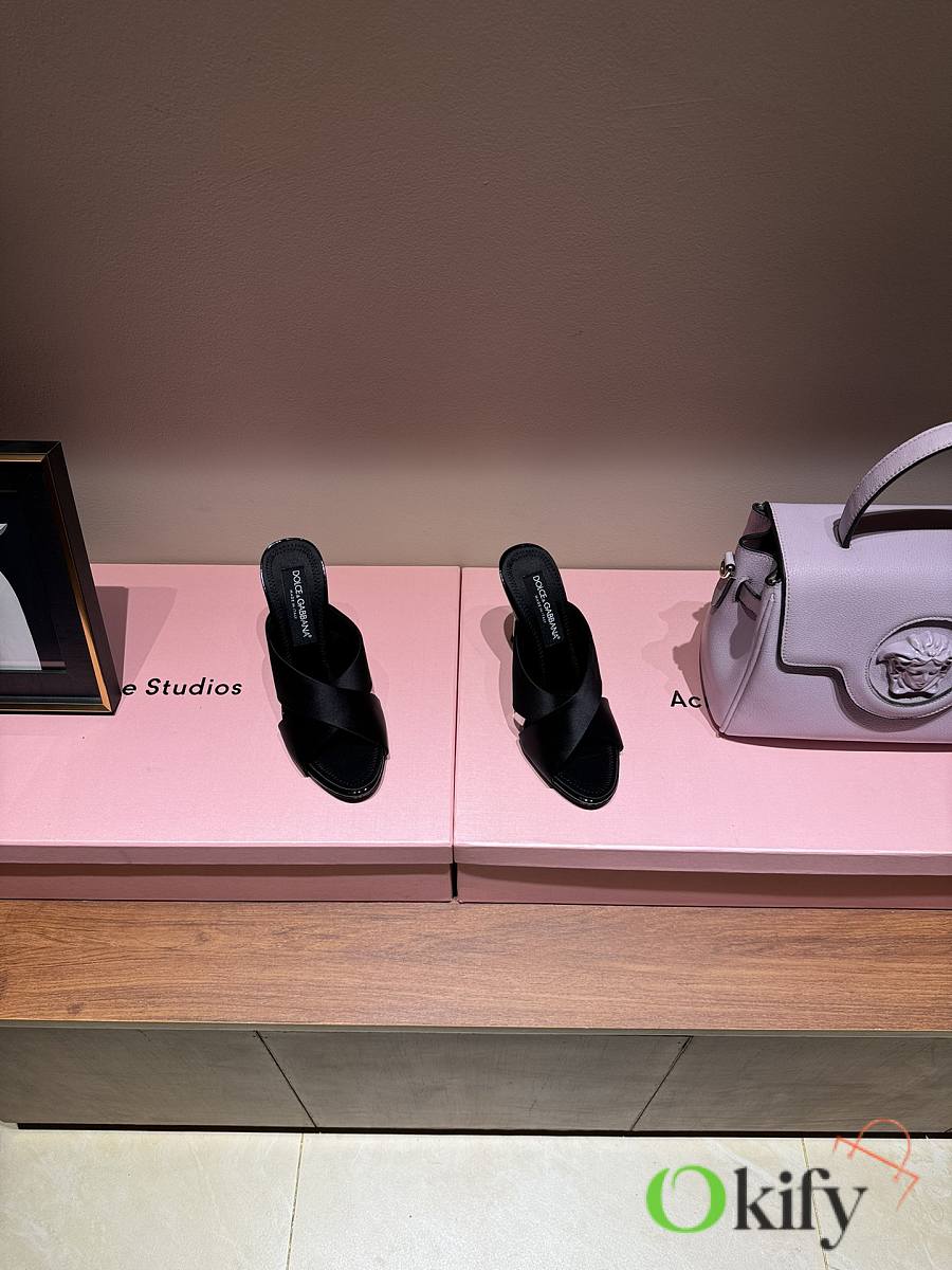 Okify Dolce & Gabbana Black Silk Open-toe Mule Heels 10cm