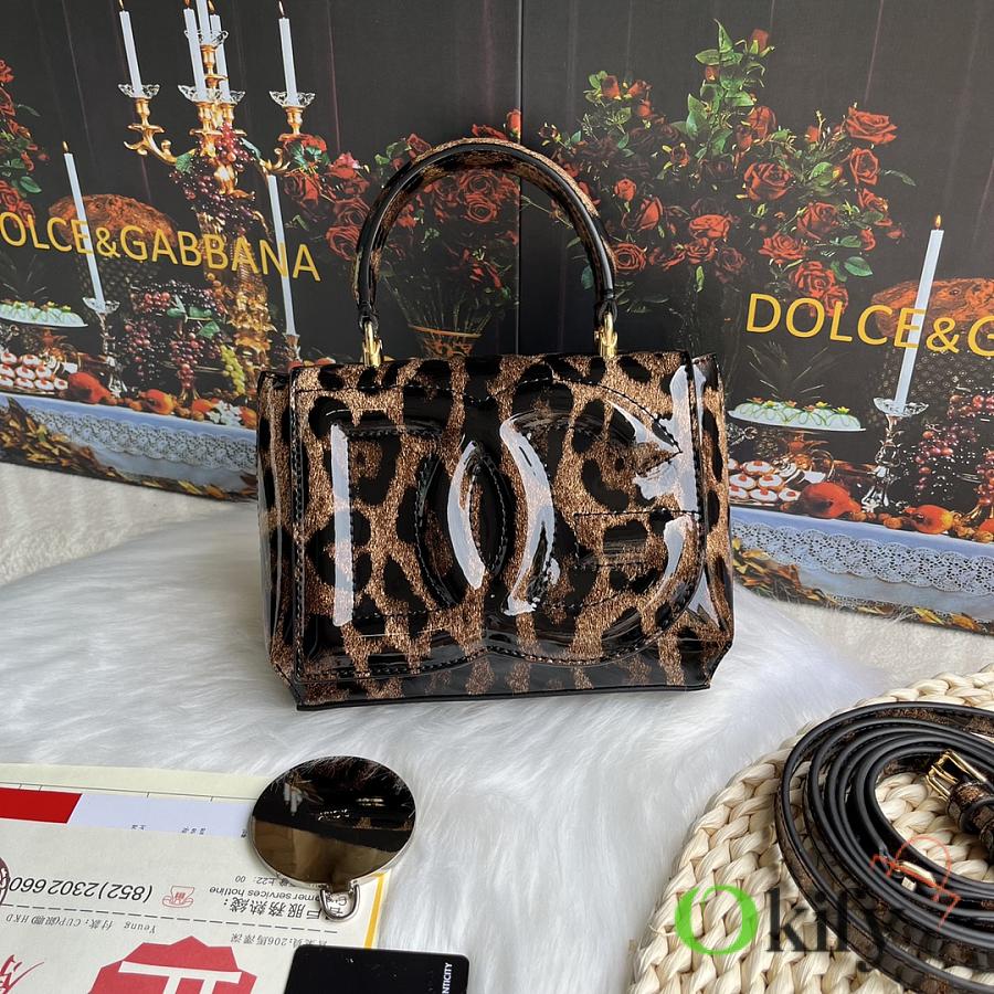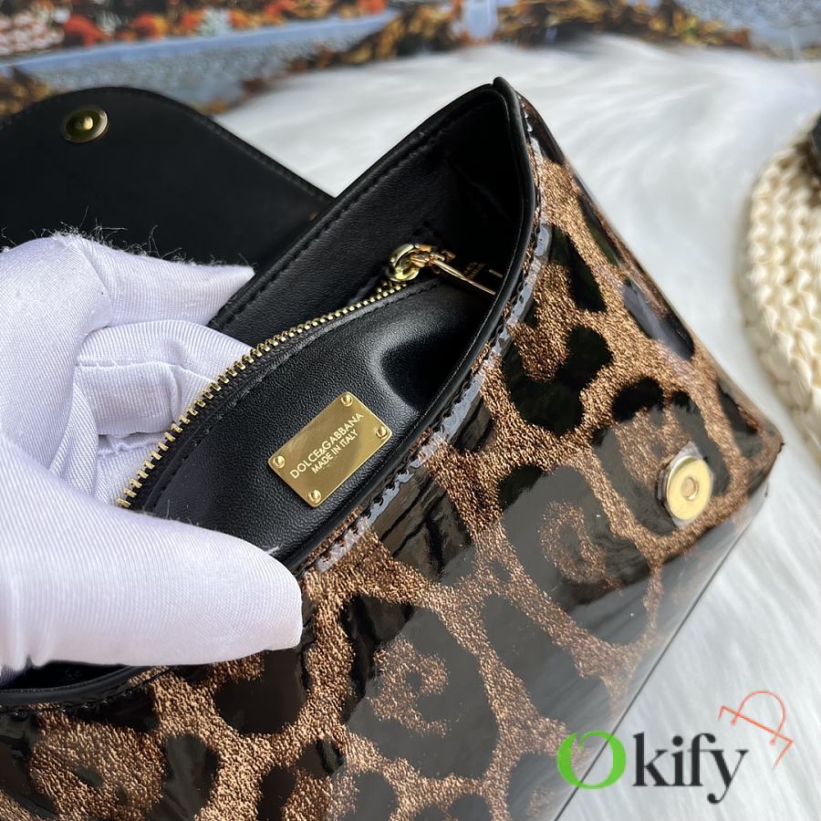 Okify Dolce & Gabbana DG Logo Bag Leopard Patent 17.5x13.5x6.5cm