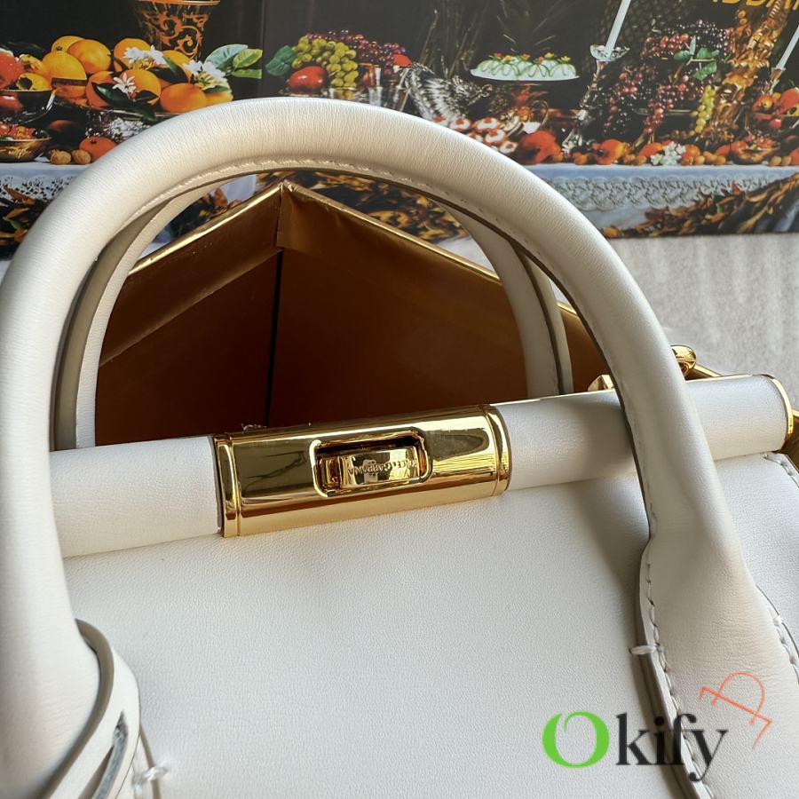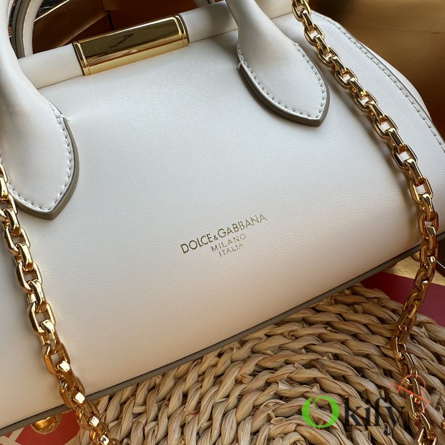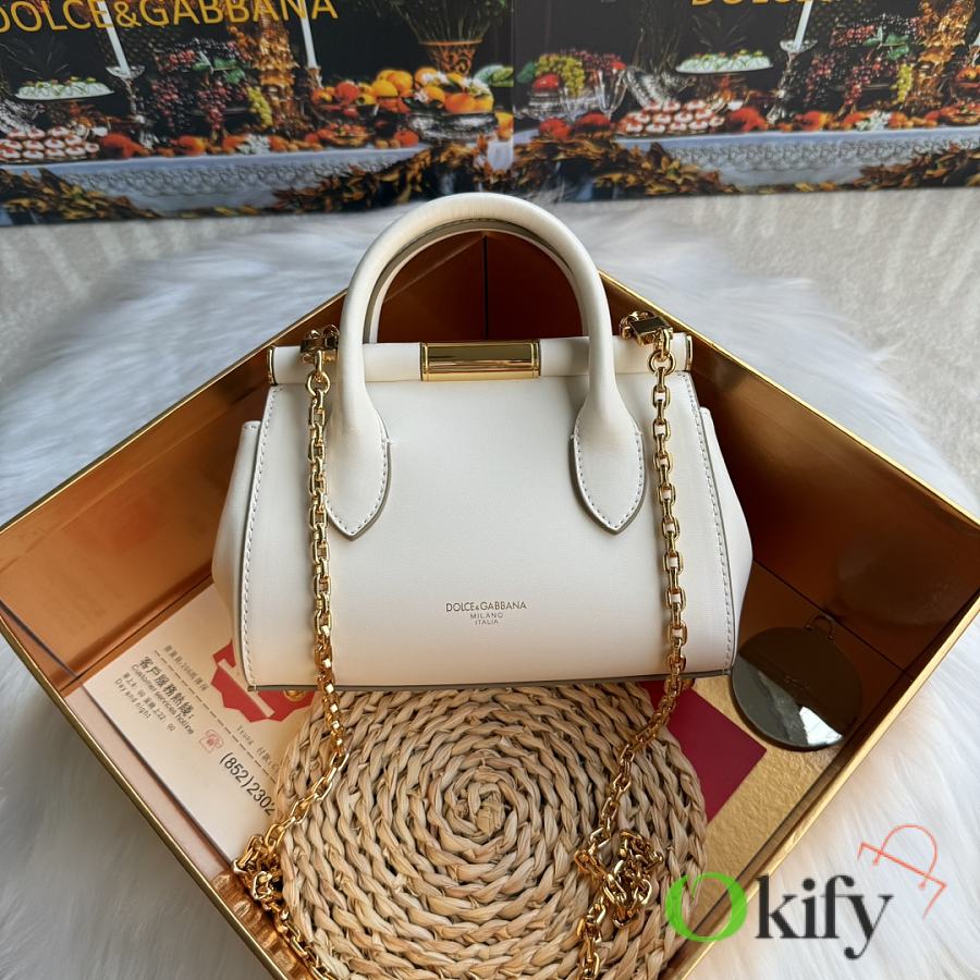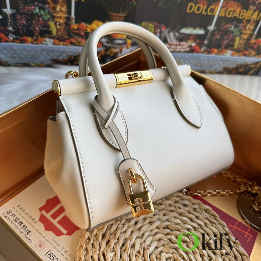 Original design. Can be worn as a handbag, shoulder bag, or crossbody bag. Made of imported calfskin leather, featuring a unique rotating lock and a detachable electroplated ruthenium chain. Stylish and sophisticated. DG always brings endless surprises and luxury