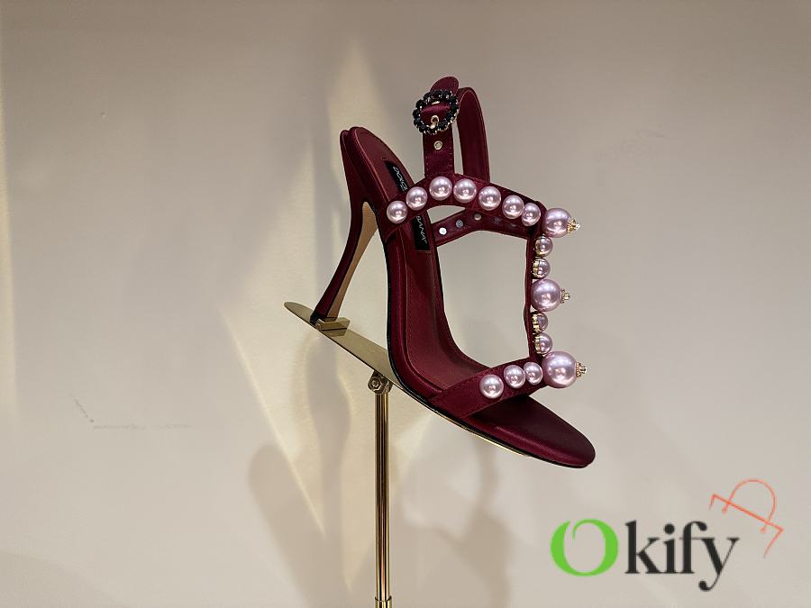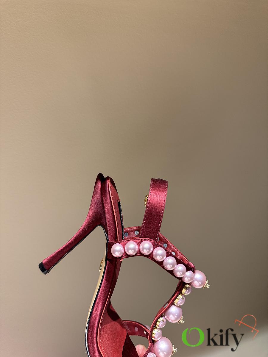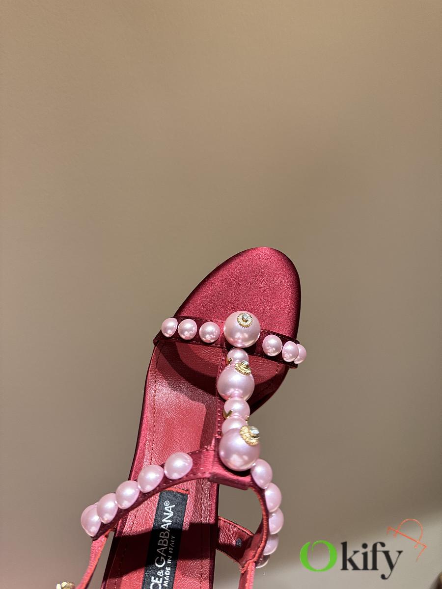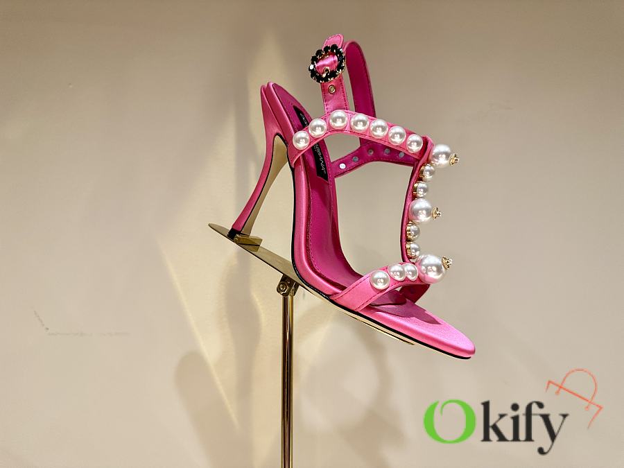 Okify Dolce & Gabbana Pink Bejeweled Satin Sandals With Pearl 10cm