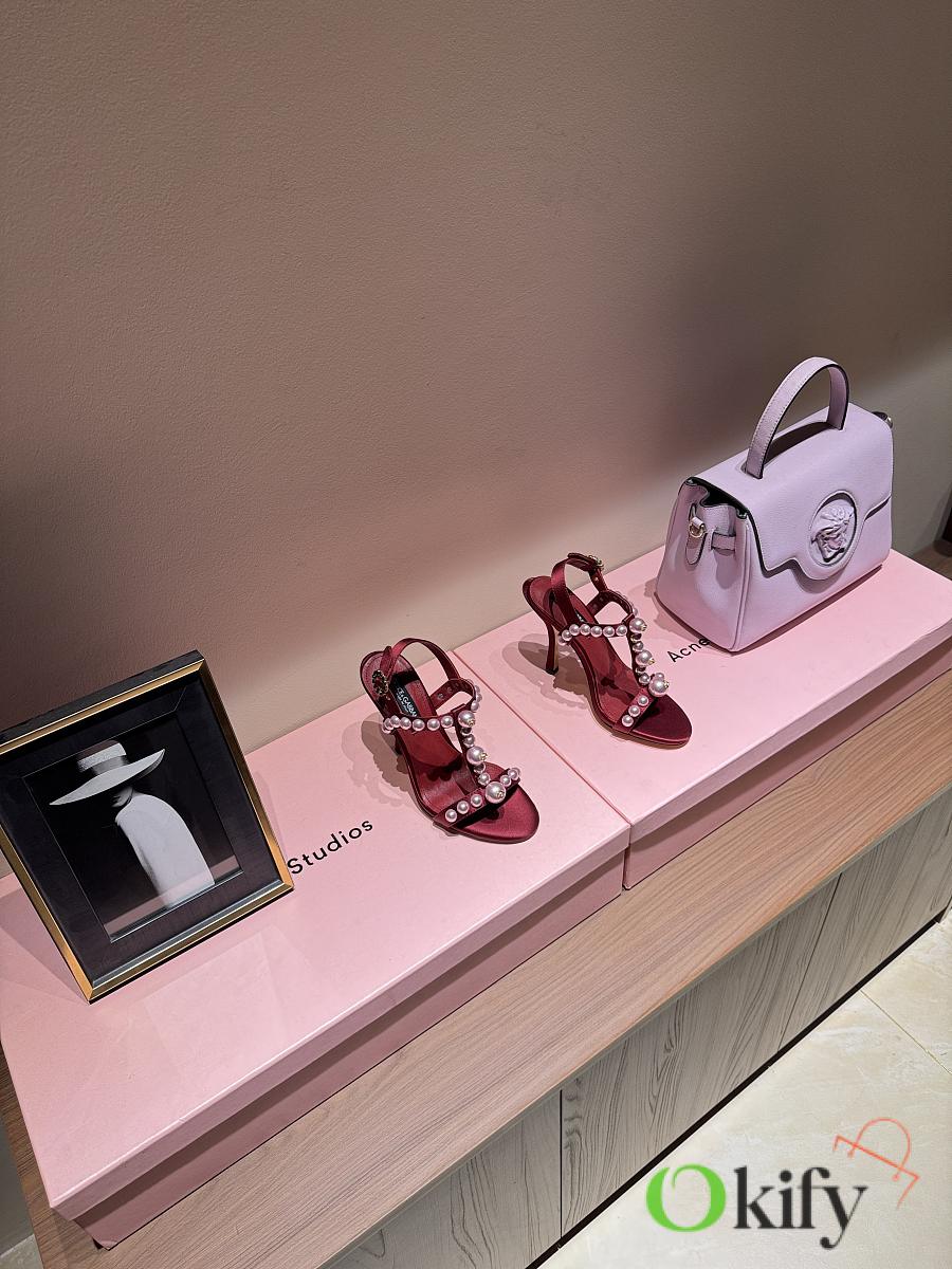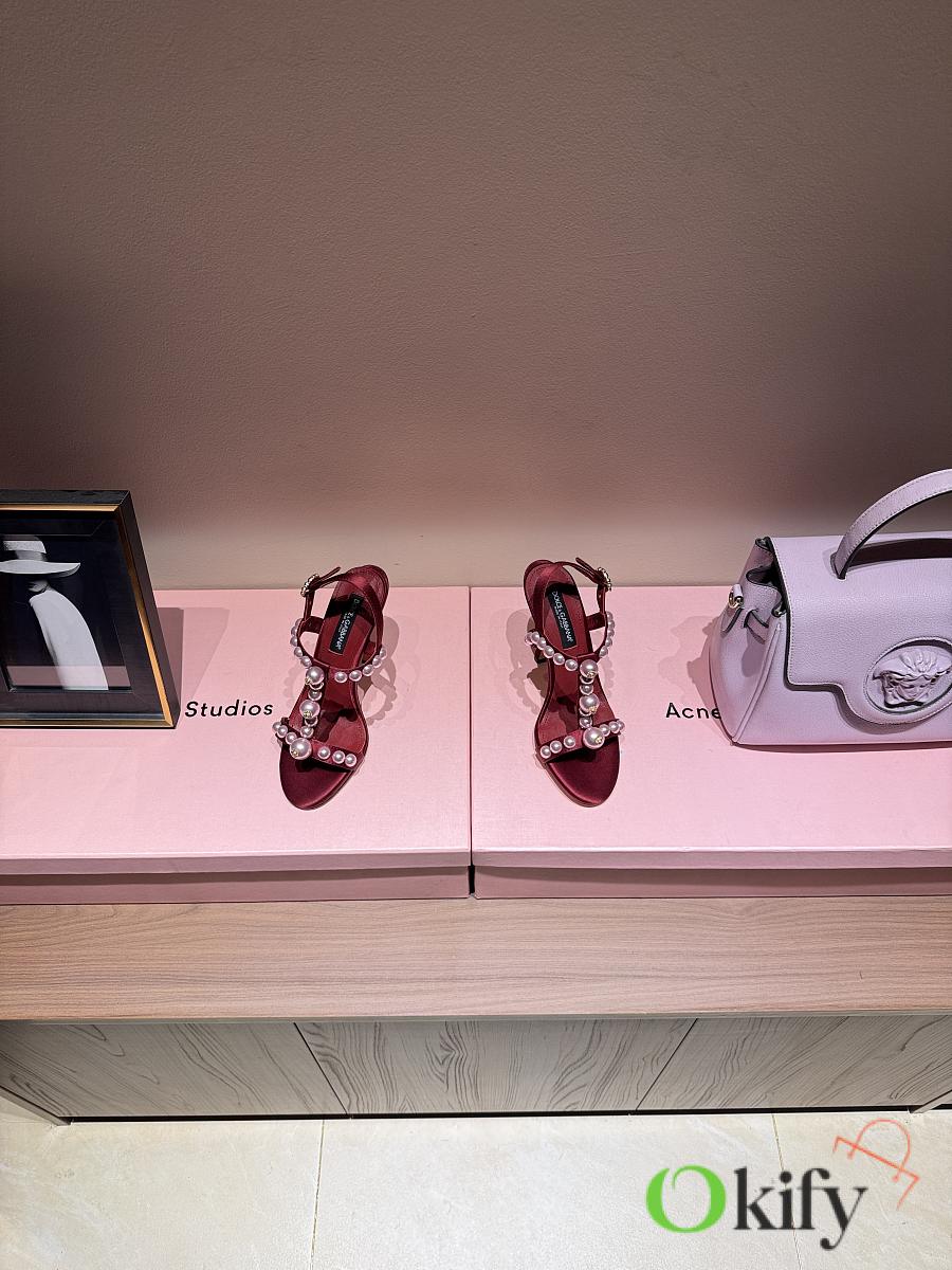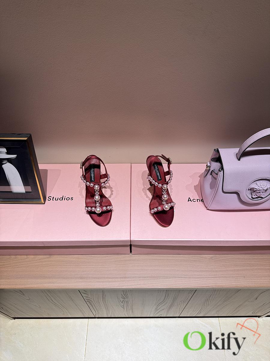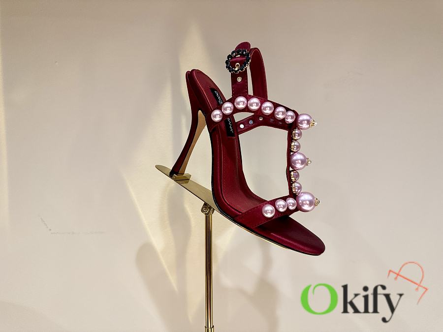 Okify Dolce & Gabbana Pink Bejeweled Satin Sandals With Pearl 10cm