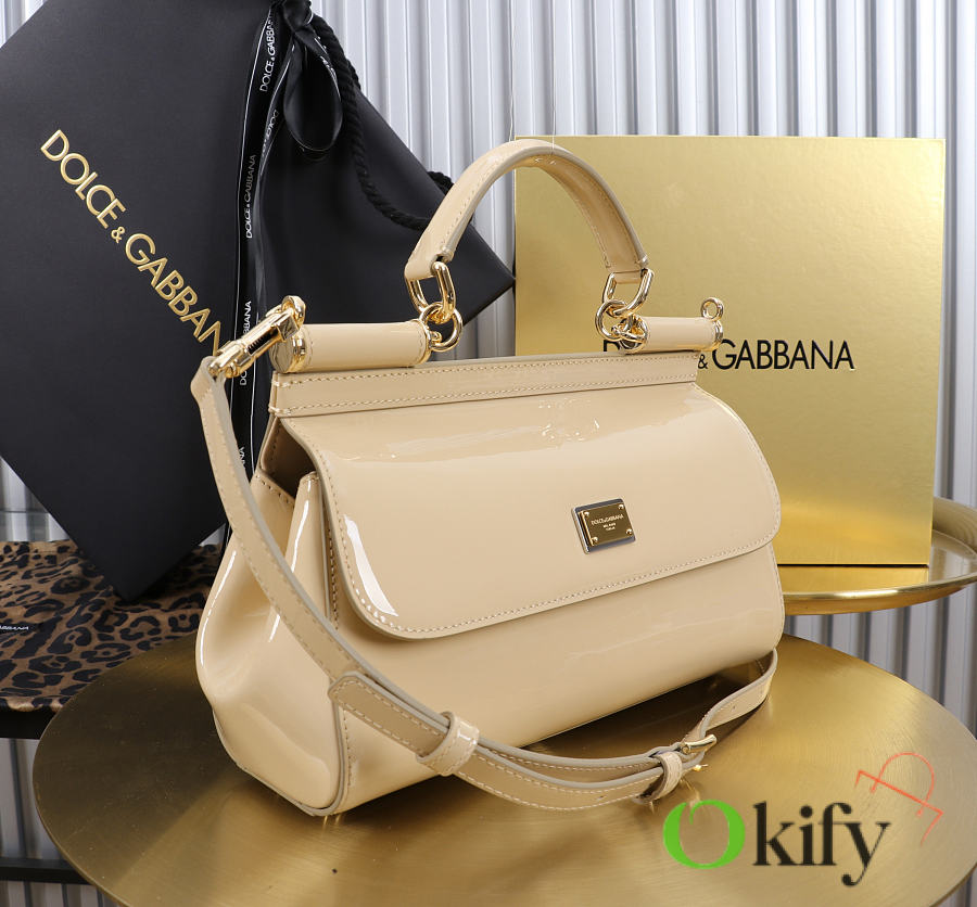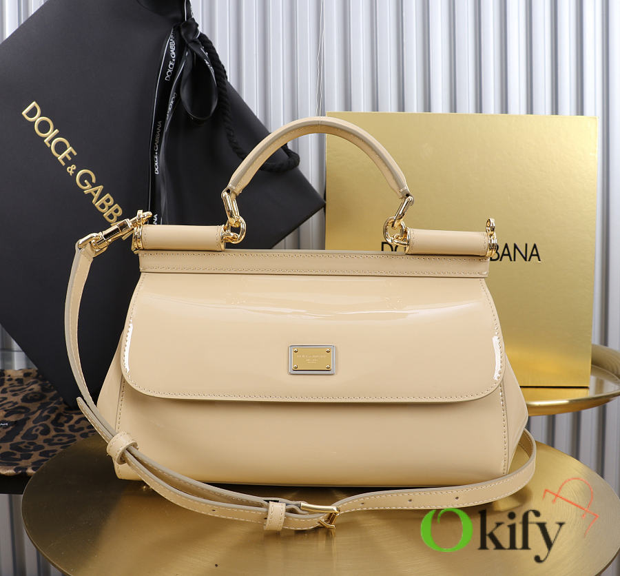 Okify Dolce & Gabbana Sicily Bag Beige Patent 25x17x9cm