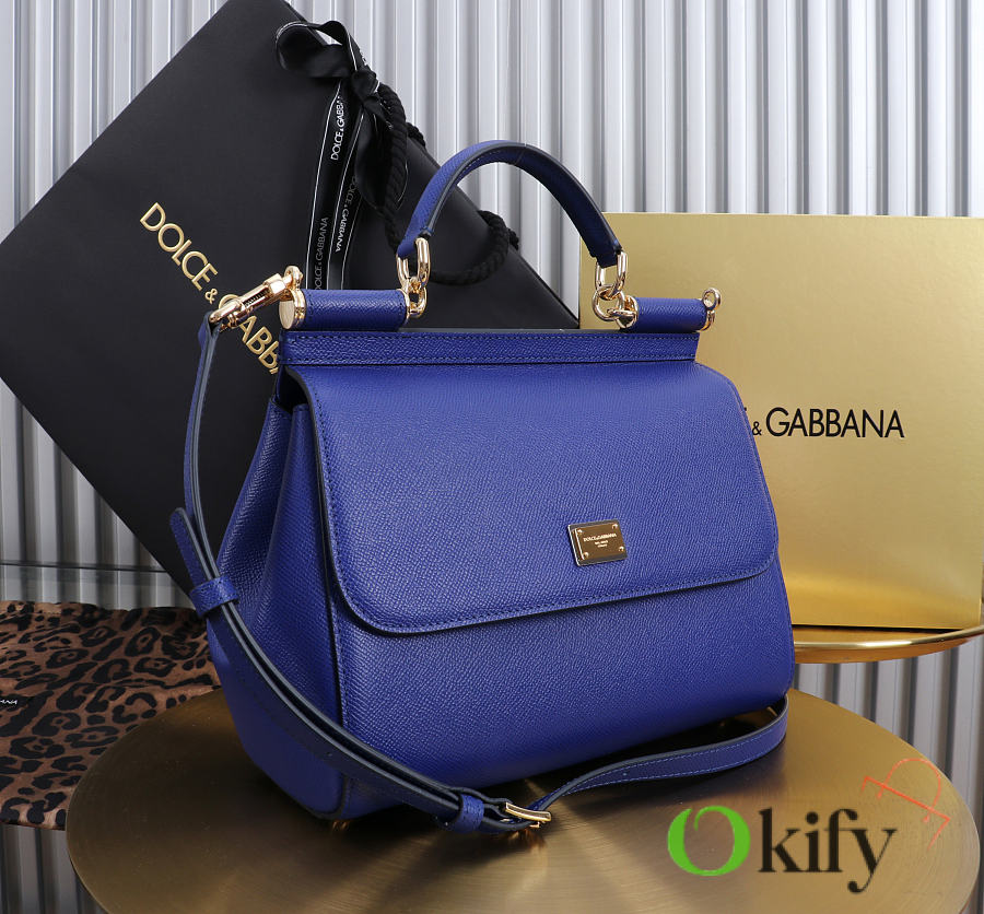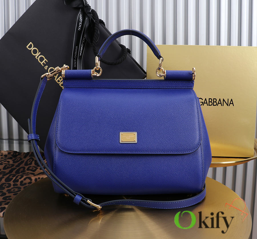 Okify Dolce & Gabbana Sicily Large Bag Dark Blue Calfskin 25x20x12cm