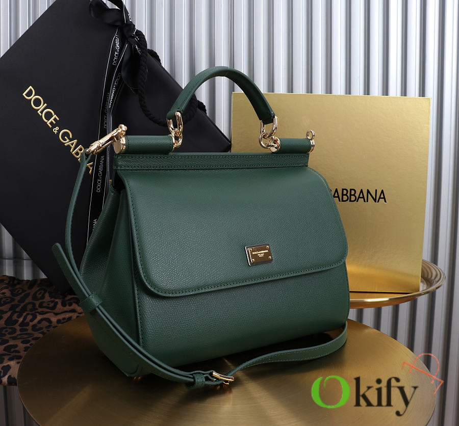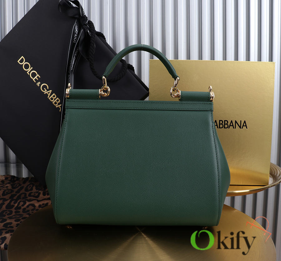 Okify Dolce & Gabbana Sicily Large Bag Dark Green Calfskin 25x20x12cm