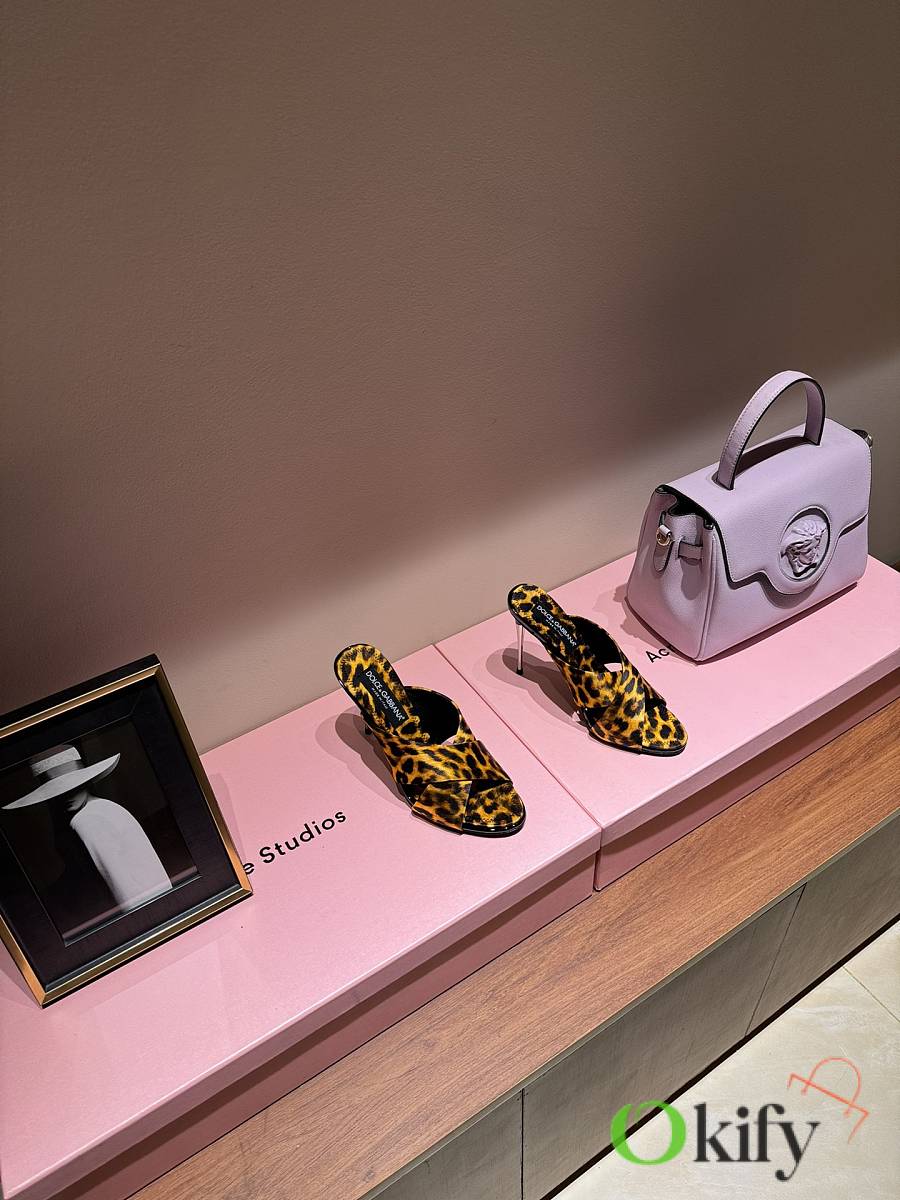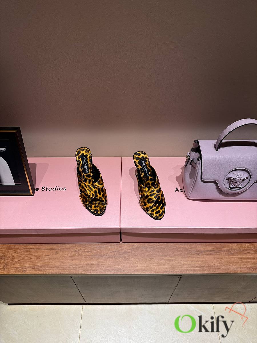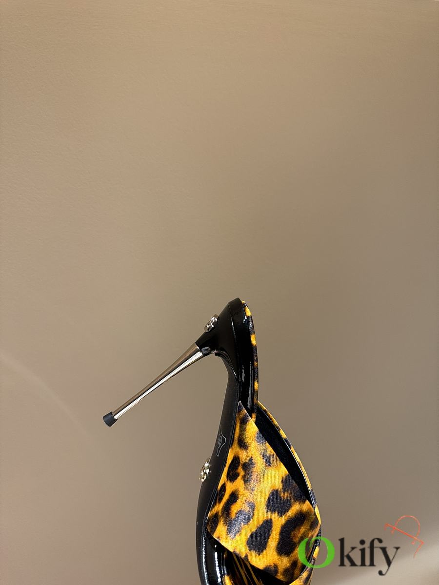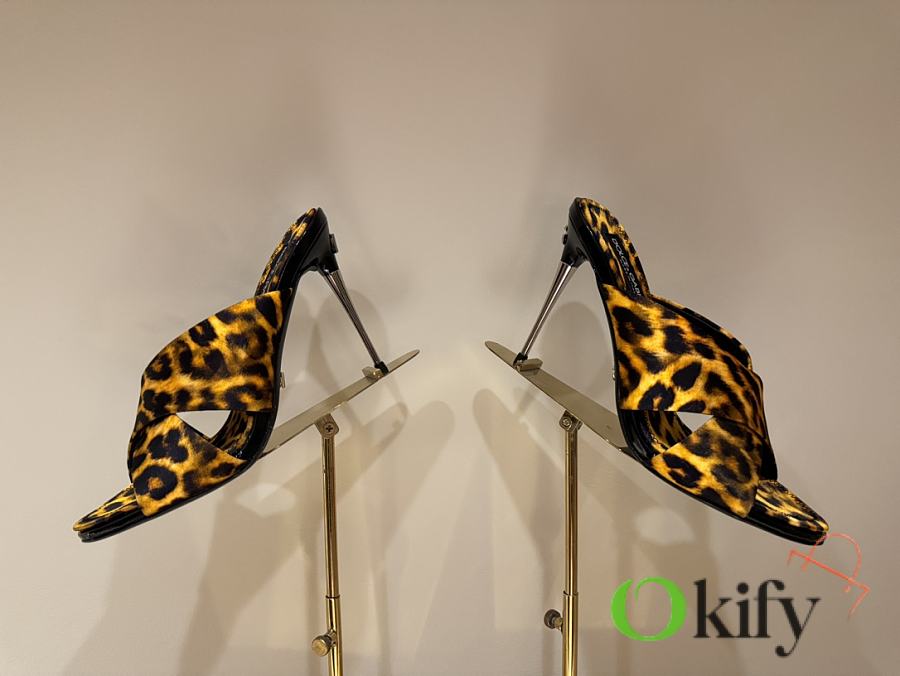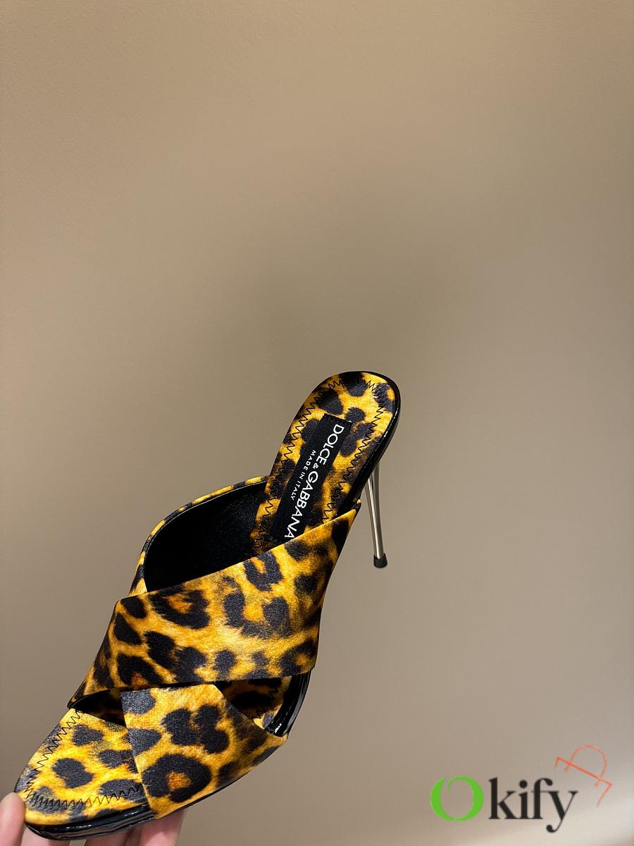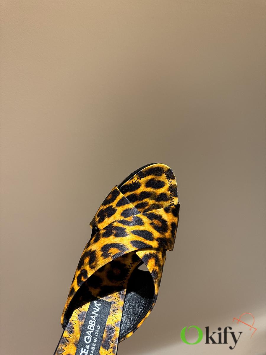 Okify Dolce & Gabbana Yellow Leopard Silk Open-toe Mule Heels 10cm