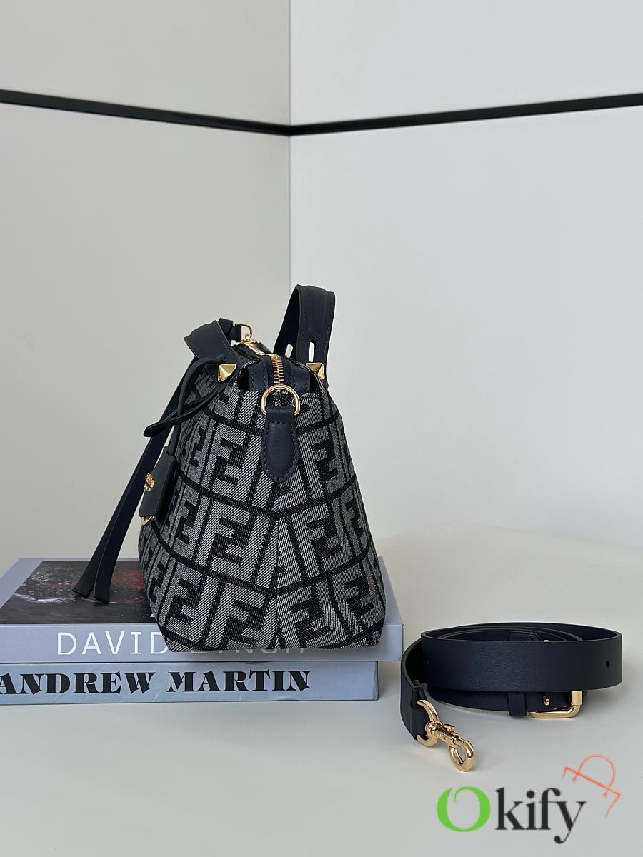 Okify Fendi Boston By The Way Soft Medium Bag Black Jacquard 28x18x12cm