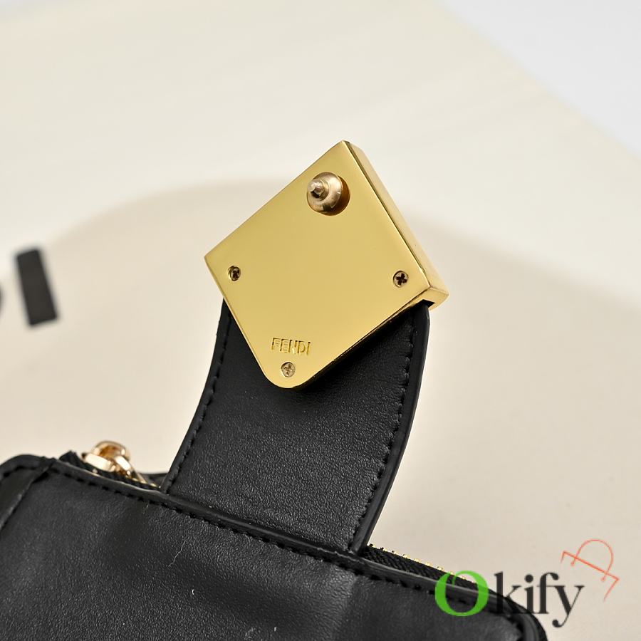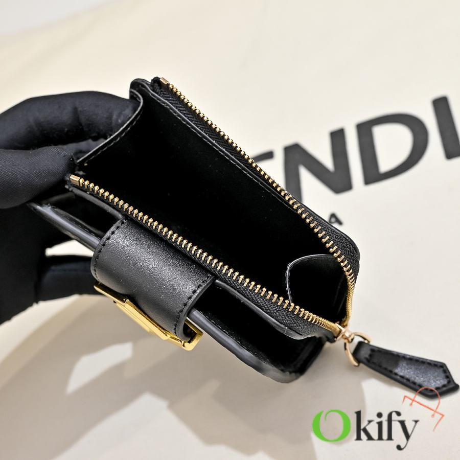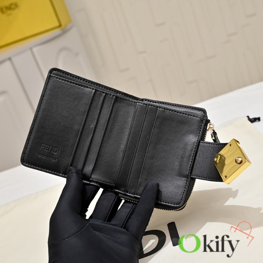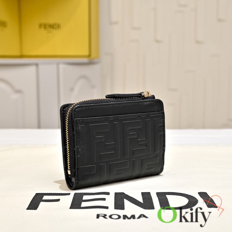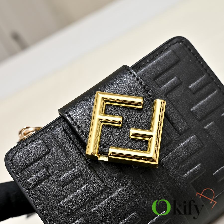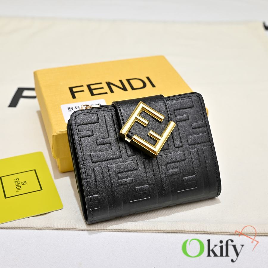 Model 33202 FENDI FF Diamonds Series Tri-fold Gold Finish Calfskin Wallet, Medium Size, Women's, Brown, Black, Grey, Pink, Black with Brown Trim