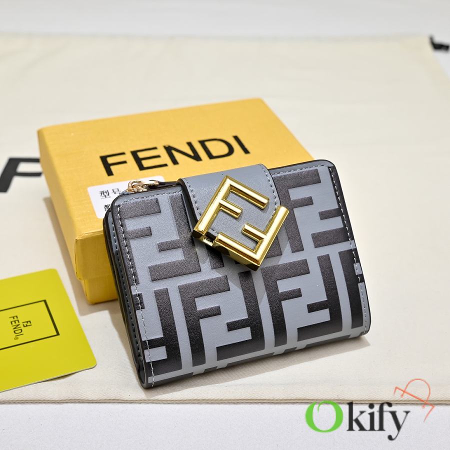 Model 33202 FENDI FF Diamonds Series Tri-fold Gold Finish Calfskin Wallet, Medium Size, Women's, Brown, Black, Grey, Pink, Black with Brown Trim