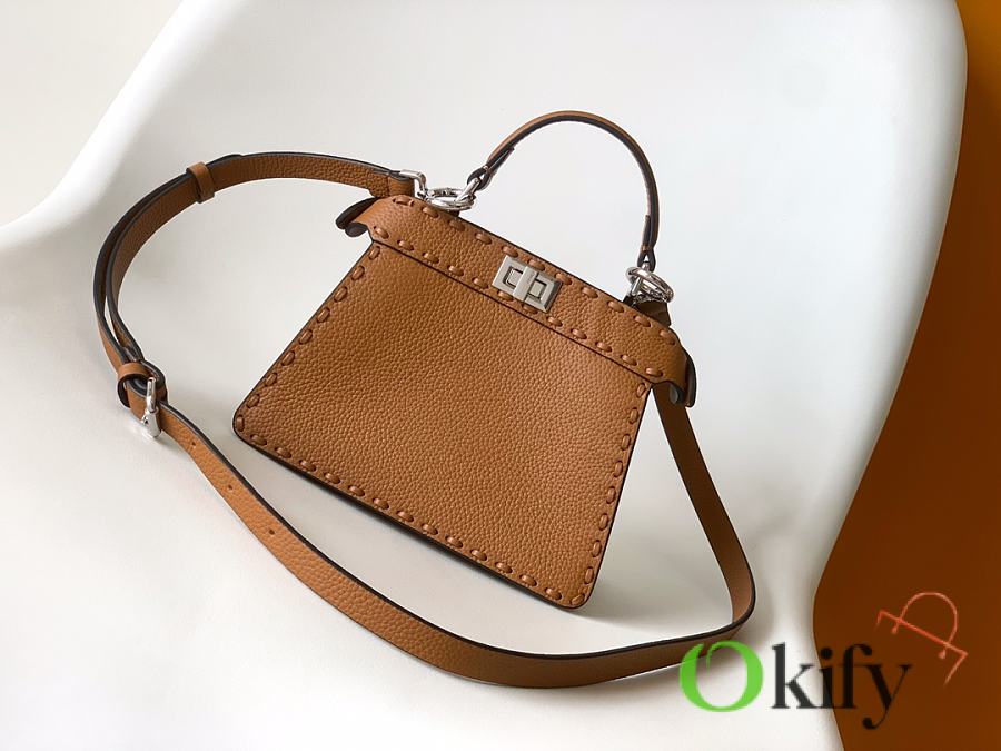 Okify Fendi Peekaboo ISeeU Mini Bag In Brown 20x11x15.5cm
