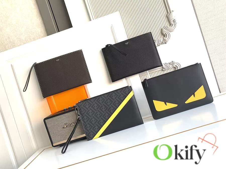 Okify Fendi Selleria Flat Pouch Medium Black 30x20cm
