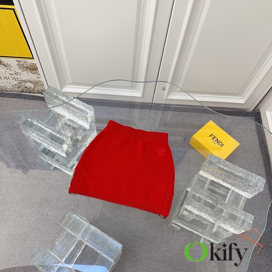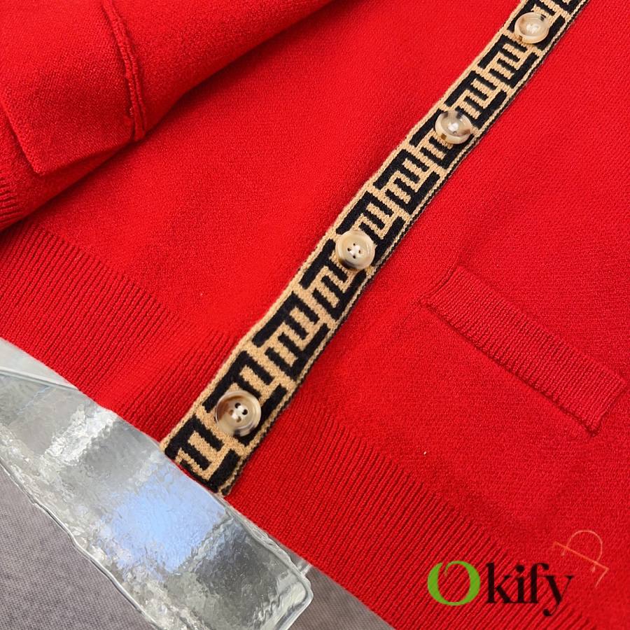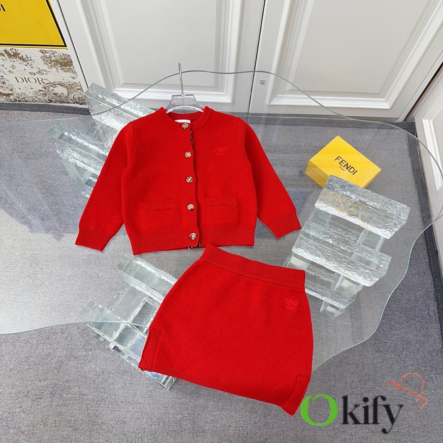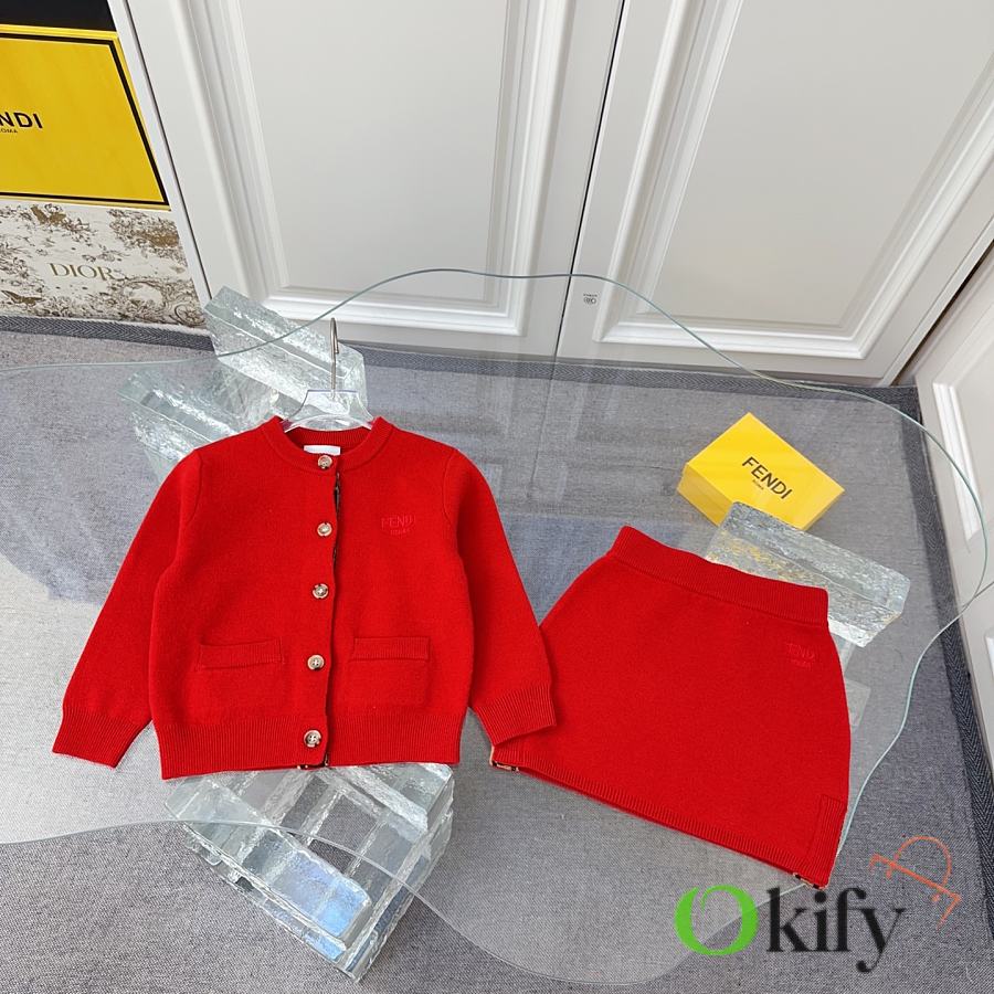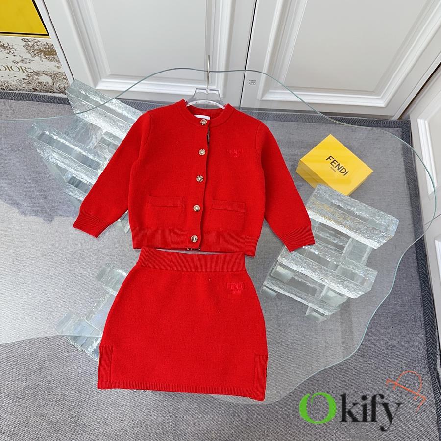 FD children's knitted set in a super vibrant red! The latest children's F-ribbon set with embroidered logo design! Knitted cardigan + pencil skirt. See the detailed pictures for the knitted ribbon craftsmanship!