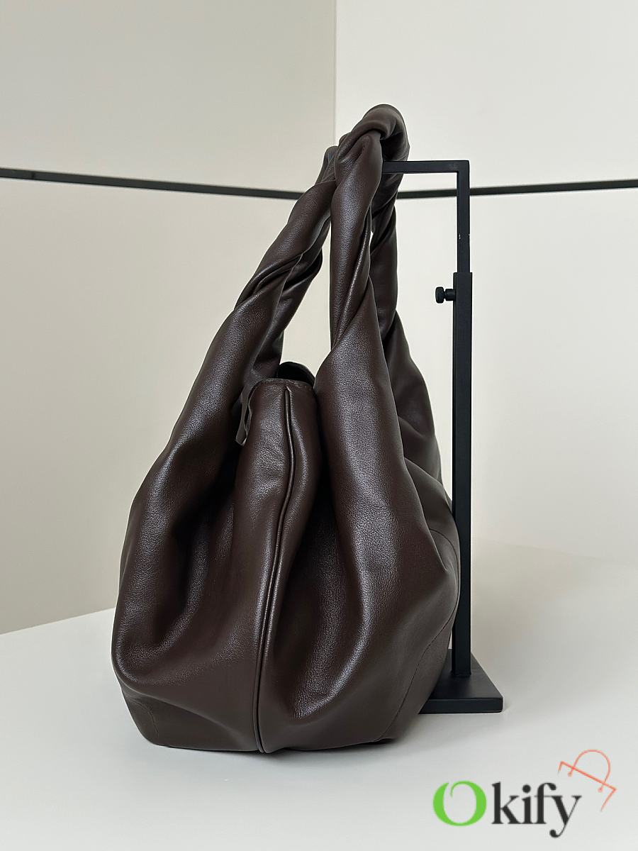 The soft, supple leather and unique knotted handles give the bag a structured and elegant shape. The round flap closure cleverly conceals a coin pocket, while the lining features the classic monogram logo. The bag's soft texture exudes a relaxed, effortless style that's undeniably fashionable