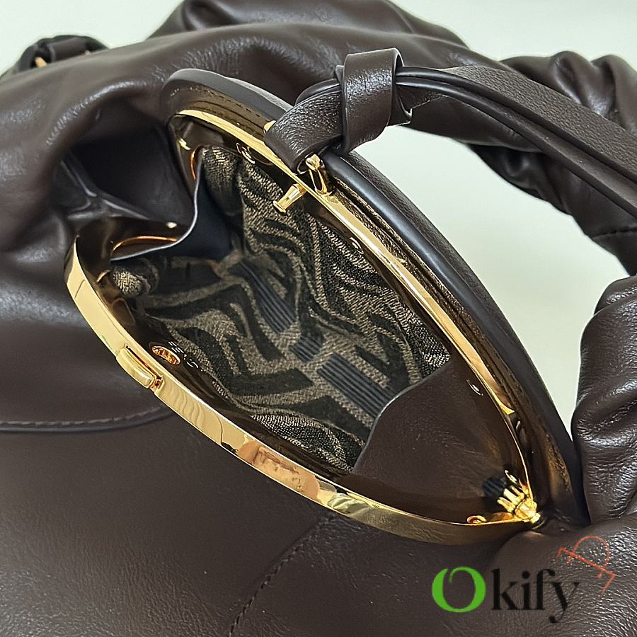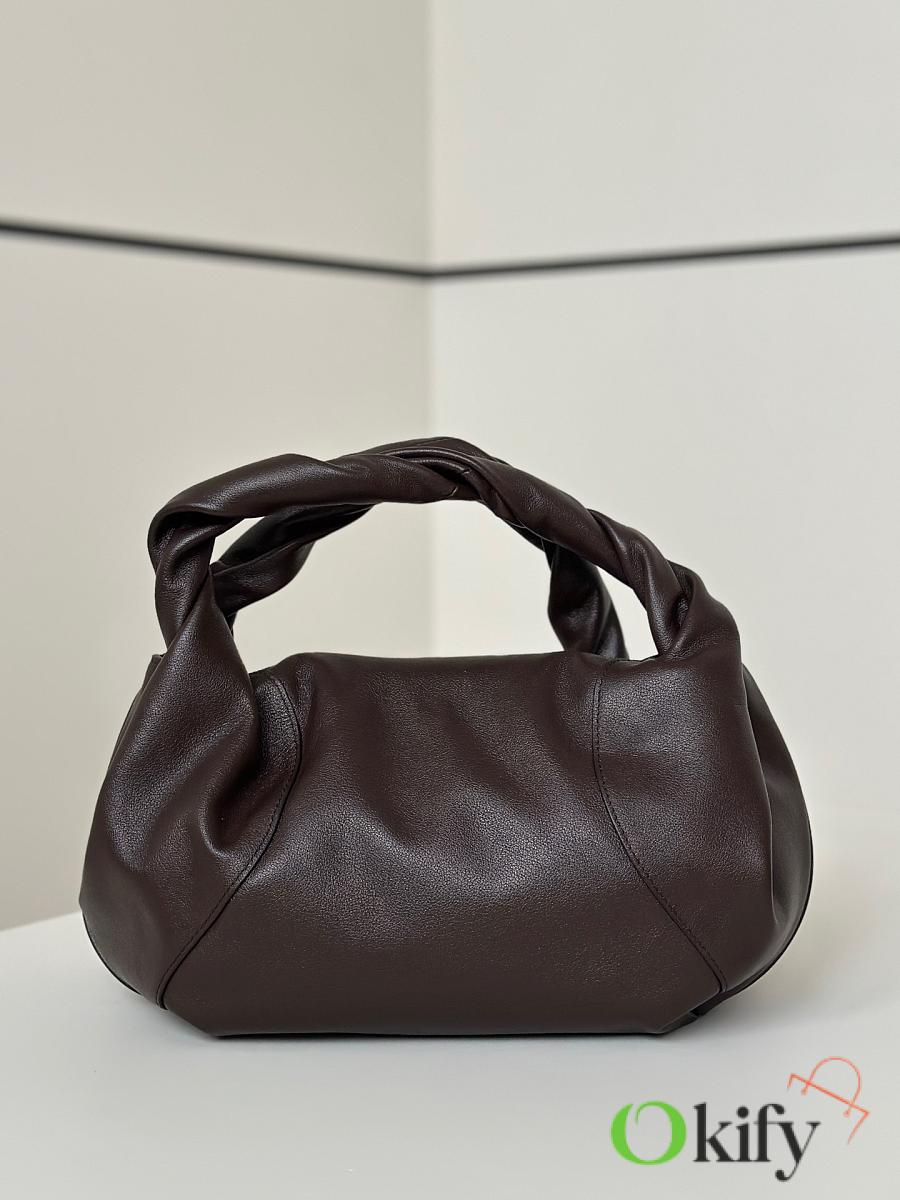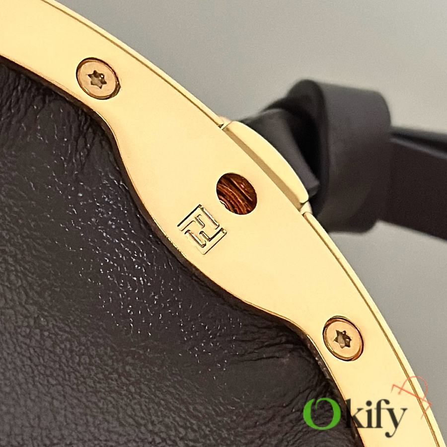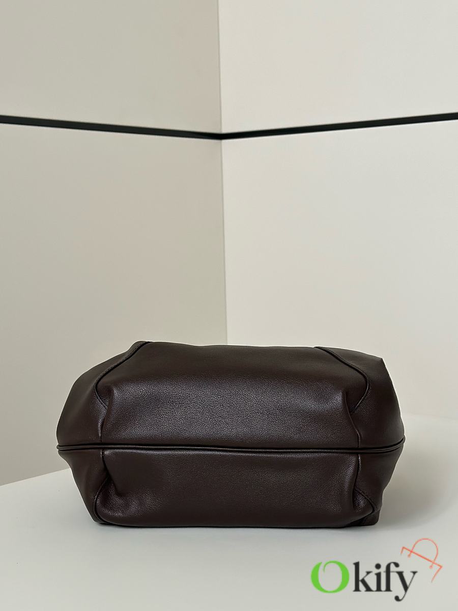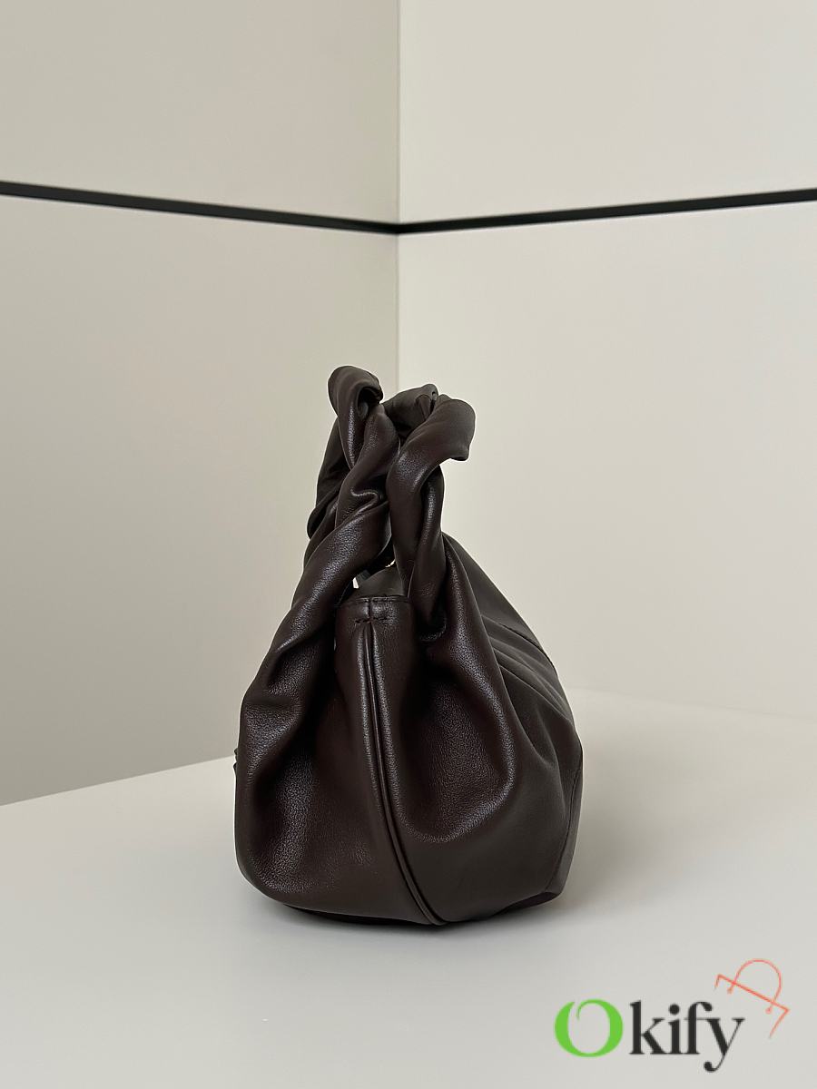 Soft, supple leather with a unique knotted handle, the bag's shape is both soft and structured, giving it a beautiful silhouette. The round flap closure cleverly conceals a coin pocket. The lining features the classic monogram logo, and it comes with a detachable shoulder strap, making it versatile. The soft body exudes a relaxed, effortless style that's undeniably chic.
