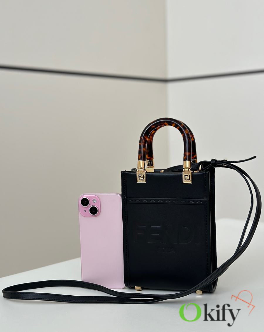 Okify Fendi Sunshine Mini Tote Bag Black 18x13x6cm