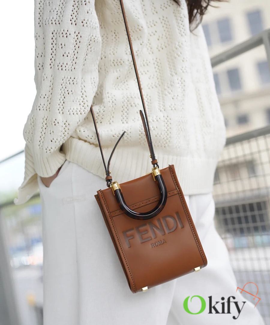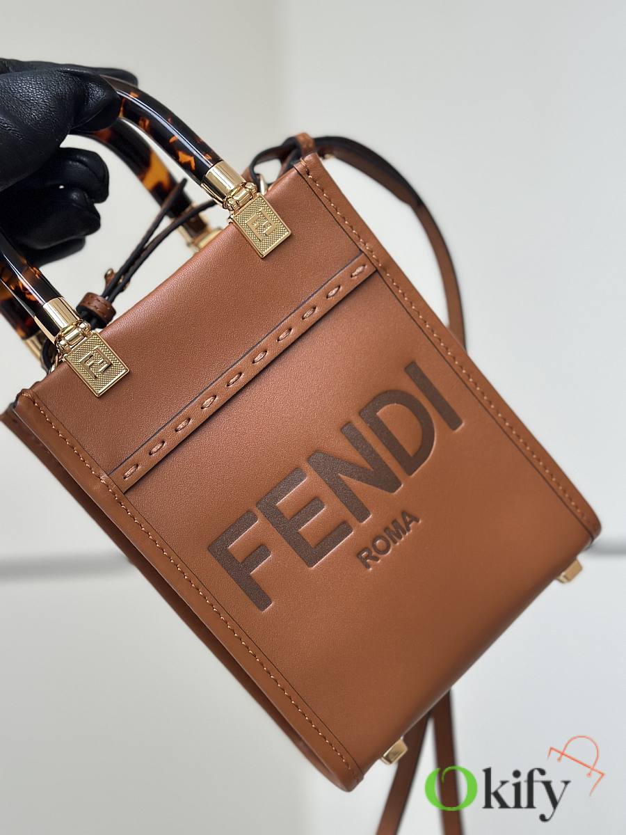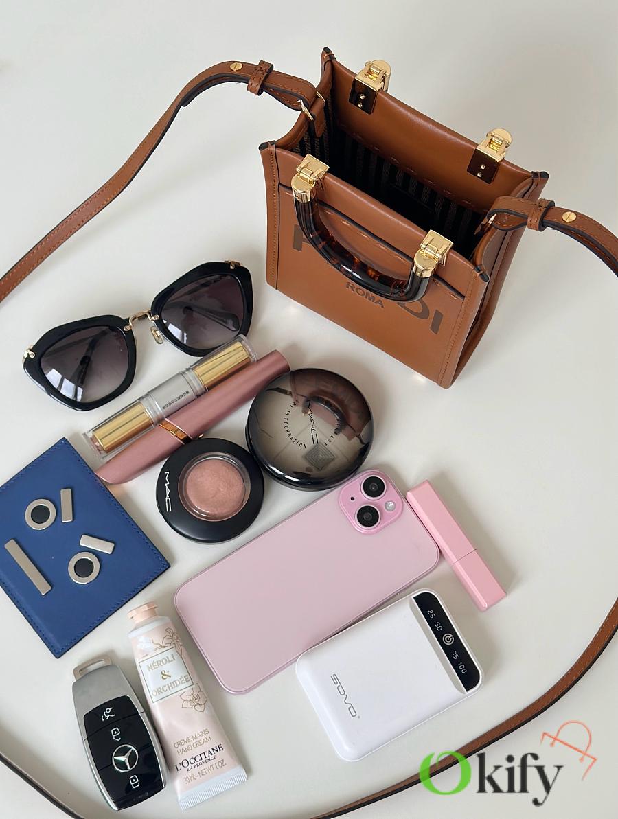 Okify Fendi Sunshine Mini Tote Bag Brown 18x13x6cm